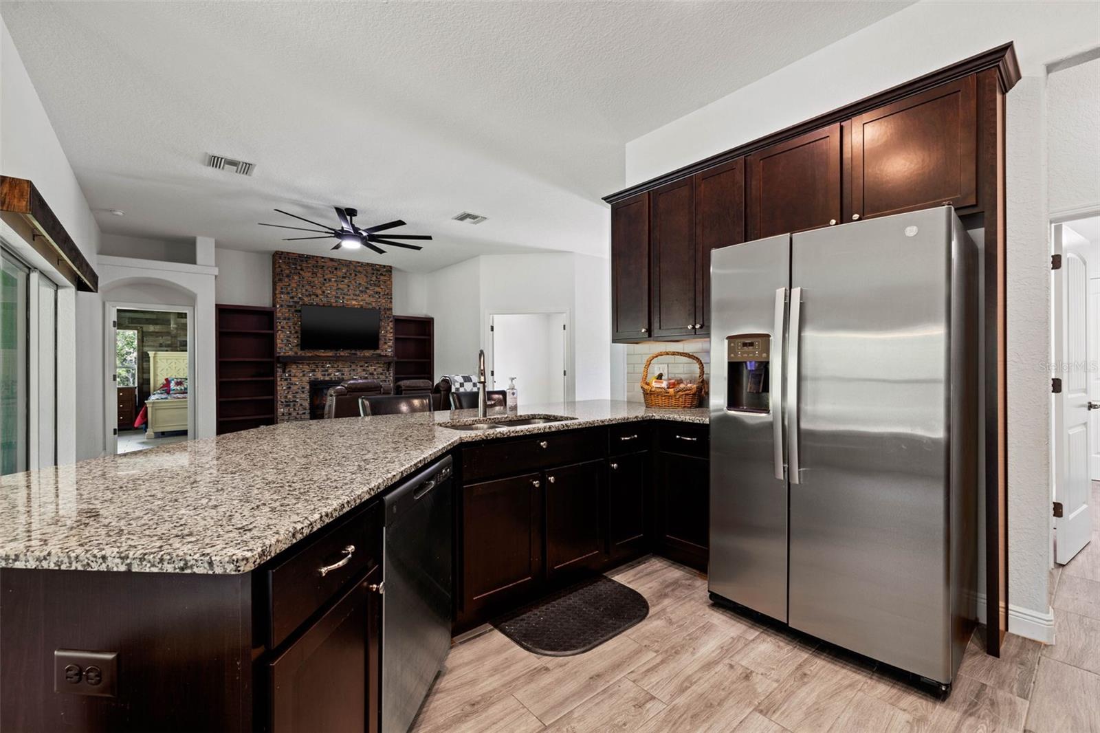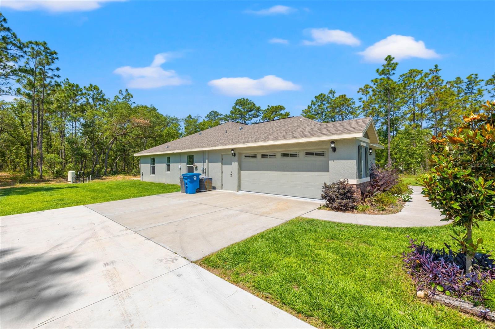 Welcome to your dream Craftsman-style home nestled on 10 acres of land in Brooksville! This meticulously crafted 2022 build offers a harmonious blend of modern amenities and classic charm. With 3 bedrooms w/ Extra Flex Space/Office, 2 baths, and a 2-car garage with a private side entrance, this home is designed for long-term comfort and a relaxed lifestyle. As you step inside, you're greeted by an inviting open floorplan that seamlessly connects the living, dining, and kitchen areas. The open peninsula kitchen is a chef's delight, complete with sleek granite countertops, ample extra-tall cabinet space, and a cozy breakfast nook that brings in natural light for your morning cup of coffee. The split bedroom floorplan ensures privacy, with the large primary bedroom suite located on one side of the home and two guest bedrooms with a full bathroom on the other. The primary bathroom features double vanity sinks, a luxurious soaking tub, a separate walk-in shower, and spacious walk-in closets, offering a private oasis for relaxation. Outside, a separate detached garage with 2 bay doors provides additional storage and workspace for your hobbies or projects. Upon arriving, the electric gate controlled by remote leads to an extra-long paved driveway ensuring security and privacy at the end of the cul-de-sac. Indulge in outdoor Florida living on the back lanai, where a jacuzzi spa awaits after a long day. Enjoy the tranquility of the surrounding landscape in this quiet community, where nature meets modern luxury. Only two years old in a newer community all with similar large lot sizes, this home is a rare find, offering the perfect blend of open space, beautiful design choices, and functionality. Don't miss your chance to make this Brooksville gem your own.Wood Paneling easily removed for a simpler look - Schedule a private showing today!