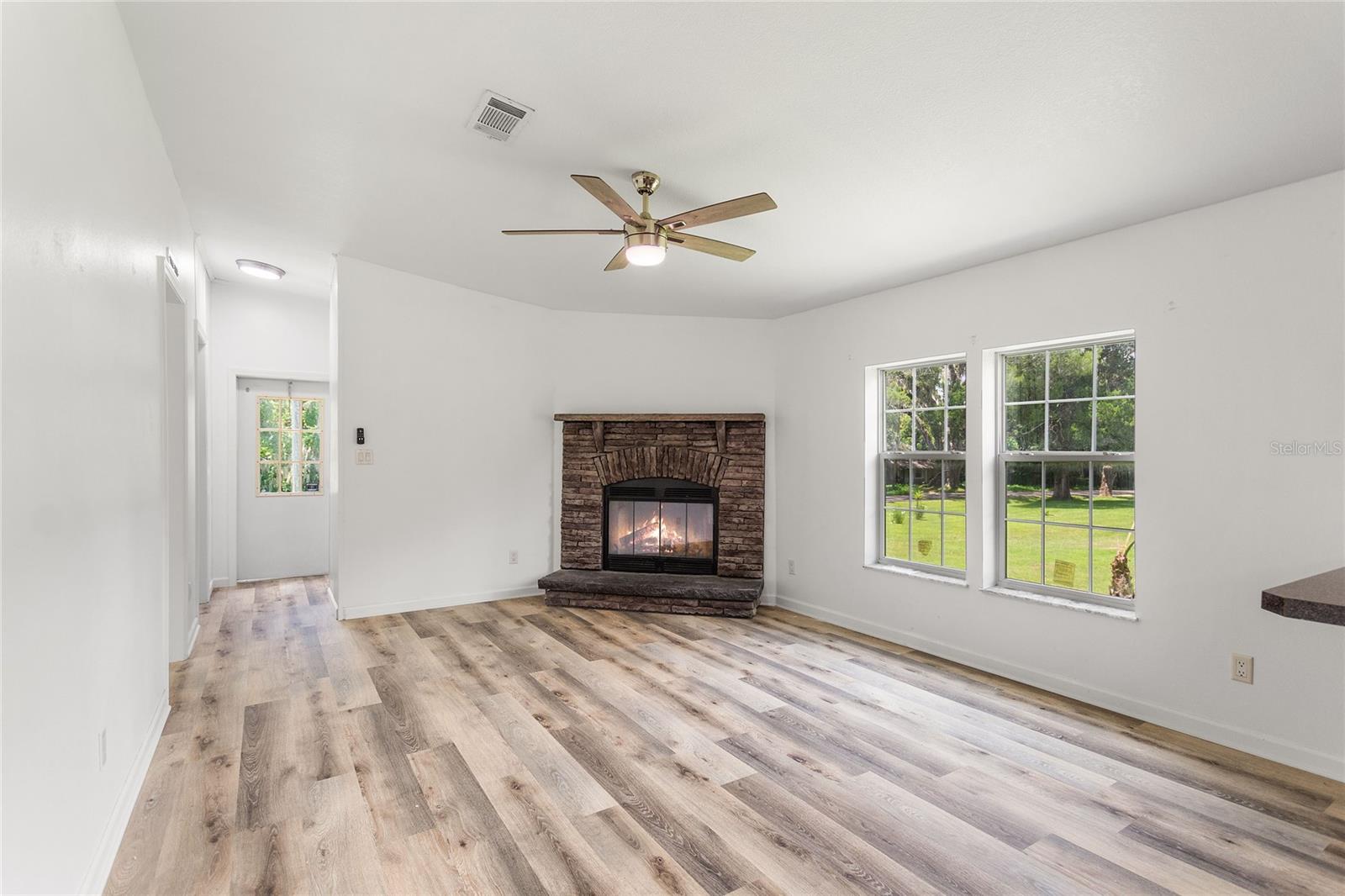 Discover this beautifully updated 3-bedroom, 1-office, 3-bathroom home featuring new vinyl flooring, fresh interior paint, and a cozy fireplace. Spanning 1,890/sqft, this home sits on a generous 0.26-acre lot. Enjoy an open-concept layout, new toilets, a refinished garden tub, and new ceiling fans. The property also includes a large work shed, new locks, and a newly replaced front door.