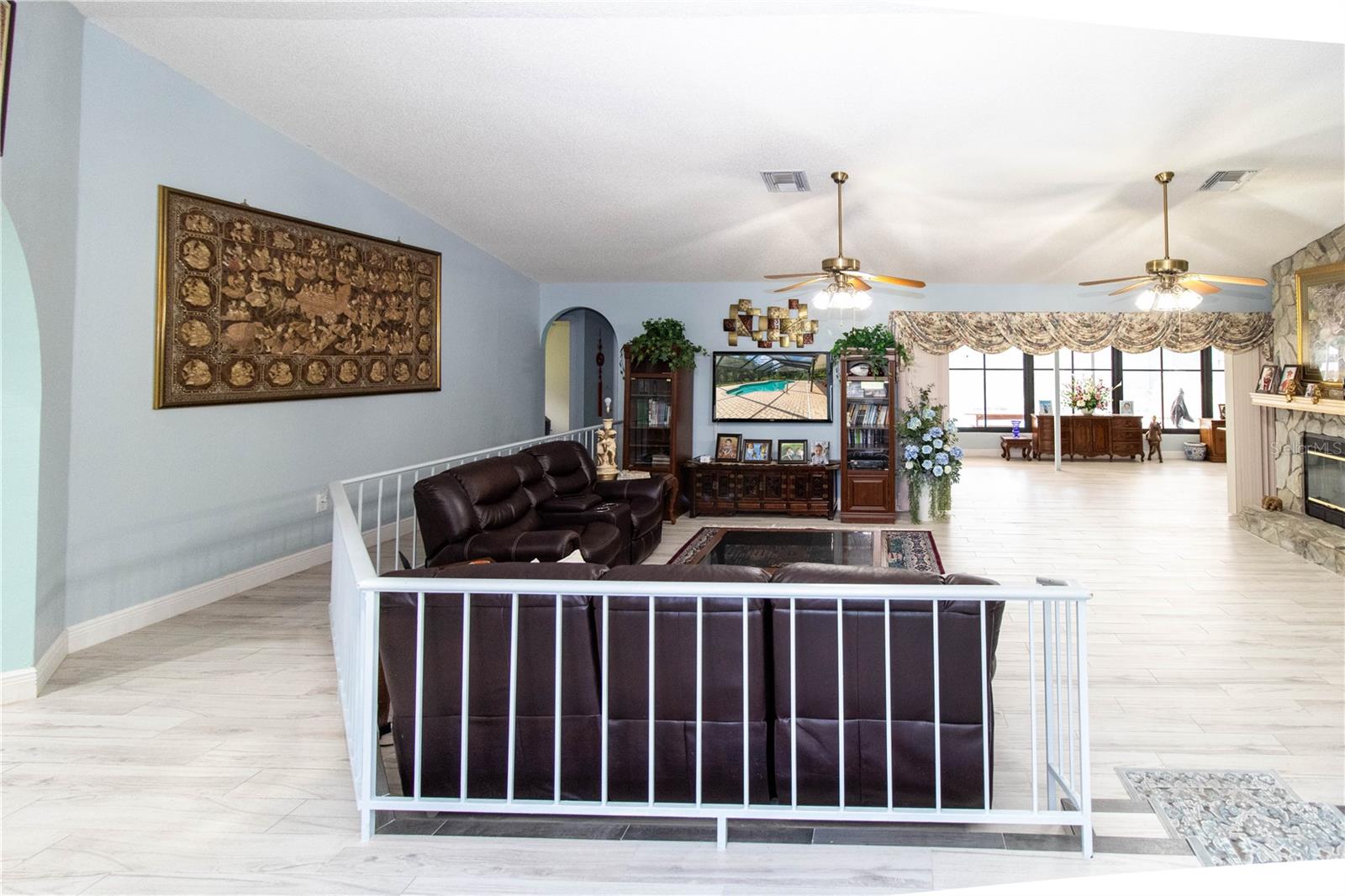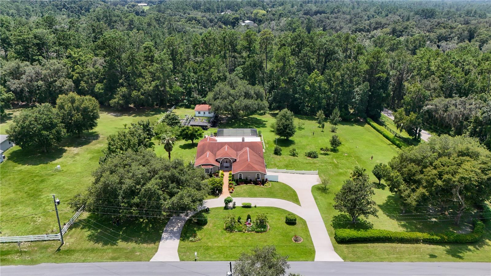 This 4 bedroom, 2 bath home sits on 2.5 acres in the unique Garmisch Hills Community. A circle drive and a beautifully landscaped front entry awaits you. As you enter the home there is a wet bar complete with a mini refrigerator on your right. The spacious Living room with it's grand Fireplace and four sliding doors that lead to the Florida room and Lanai. To your left as you enter is a large kitchen with a sizeable island, 2 side by side refrigerators, gas top stove, convection oven, and 42 inch wood cabinets, topped with a granite countertop. A walk in pantry will hold plenty of dry goods. The formal dining room is large enough to seat 8. The Owners retreat is very roomy and comes with 2 walk in closets. The bathroom has a large walk in shower. There are 2 sinks, and luxury cabinets that provide plenty of storage. A stand alone tub will be added before closing. Two guest rooms share the guest bathroom that also has 2 sinks and a walk in shower. A large extra room can be used as a mother-in-law suite or as a family room. It presently has a sectional couch, queen bed and television. It comes with a wall of closets. The Florida room is very spacious and looks out to the pool and rear patio. The detached garage in the rear of the yard holds all of your yard care equipment. The area by the garage has a 40 feet by 35 feet garden that is protected by a chain link fence with 4 access gates. There are 6 vegetable beds and 2 rows of 10 stack hydroponics that will supply you with plenty of fresh vegetables and fruits. The garden has automated watering. There is a 12 foot by 20 foot covered area with a picnic table to keep you shaded when potting new plants. The yard has various trees that provide mulberries, persimmons, pears, oranges, lemons, and loquats. The rear property goes another 50 feet back into the woods. Real Country living--Close to downtown