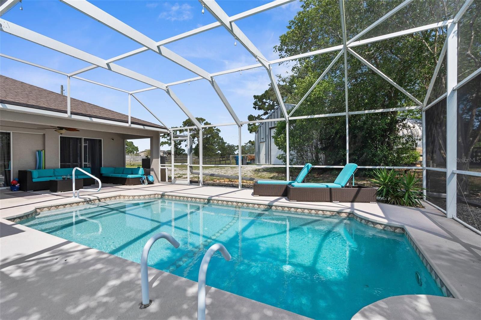 Country Living Meets Versatile Potential on 2 Acres! Welcome to your dream homestead—a move-in-ready 3-bedroom, 2-bathroom pool home with a 2-car garage and a massive steel-structure workshop/barn designed for flexibility, business, and animals alike! Step inside to a bright, open great room with a flex space ideal for dining or entertaining. Bathed in natural light from expansive windows and sliding glass doors, the home offers seamless indoor-outdoor living—perfect for entertaining. Whether you're prepping in the kitchen or relaxing inside, the open sightlines to the pool all around the home lets you stay effortlessly connected to the fun outside. Enjoy granite countertops, black stainless steel appliances, and a vibe that blends comfort with functionality. Step out back and you’ll find your own personal paradise: a screen-enclosed in-ground pool with a 2025 brand-new pump, a lanai, and covered patio space, and fire pit—perfect for relaxing or hosting guests. Beyond the home the property continues to impress — The 30x60 steel building is a game-changer built on a concrete slab with electric, water, internet, and phone hookups. The front area is fully insulated with it's own A/C unit, floor-to-ceiling storage, and a large exhaust fan—perfect for a business, workshop, or creative space. Divided by a non-structural steel wall, the back half boasts 2 large horse stalls with rubber-matted flooring throughout, with room to expand into more stalls or animal pens. Zoned Agricultural, this High-and-Dry 2-acre parcel features multiple pastures, a ready-to-go chicken coop, and farm fencing—ideal for hobby farming, side hustles, or full-on homesteading. Whether you’re starting a small business, raising animals, or simply craving space and serenity, this home has everything you need to live, work, and thrive all in one place. With so much country charm, modern upgrades, and unlimited opportunity all wrapped into one incredible property — Don't miss your chance to step into the lifestyle you’ve been waiting for—schedule your showing today.