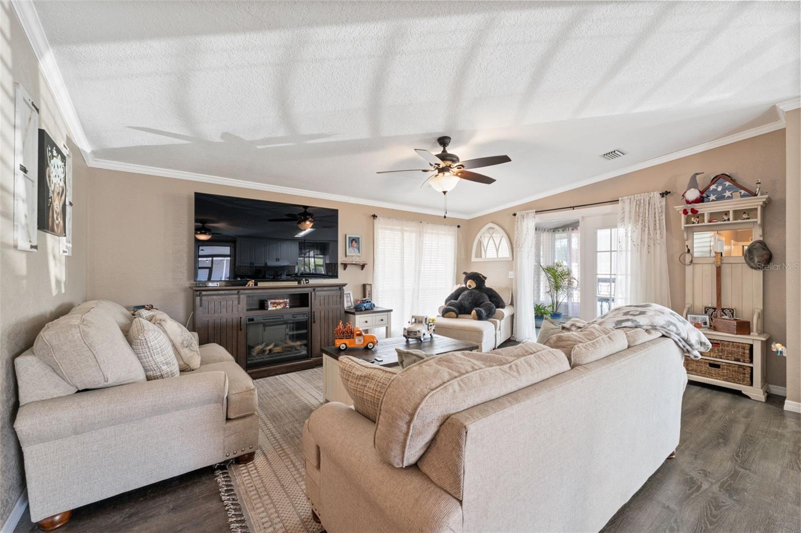 Home available with assumable mortgage at 4.75% interest!! Welcome to this meticulously maintained and move-in ready 2-bedroom, 2-bath manufactured home located in the gated 55+ community of Brookridge. Built in 1990, this well-kept home offers 1,316 heated square feet and 2,721 total square feet under roof. Inside, the open and airy living room flows into an updated kitchen featuring ample cabinetry and a built-in coffee bar that adds extra storage and serving space. A bright enclosed sunroom at the front of the home offers a comfortable additional living area—perfect for morning coffee, reading, or entertaining guests. The primary bedroom is generous in size, while the secondary bedroom is also large and versatile. The indoor laundry room includes a utility sink and additional cabinetry for storage and organization. Situated on a corner lot, this home includes two separate driveways, a rare 2-car garage, and a covered carport. There’s also a separate garage ideal for a golf cart or lawn equipment, plus a screened porch for outdoor relaxation. The vinyl fence (2022) provides privacy, and the roof was replaced in 2018 for peace of mind. Located in Brookridge, a gated 55+ golf course community offering a clubhouse, heated pool, shuffleboard, and an active social calendar, this home blends comfort, functionality, and community living—all in one move-in ready package.