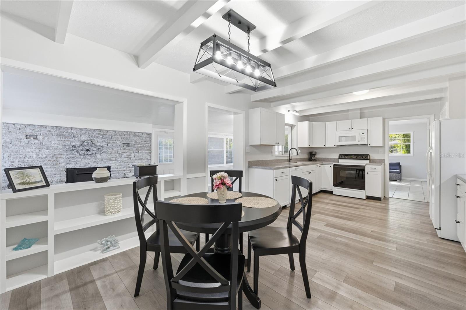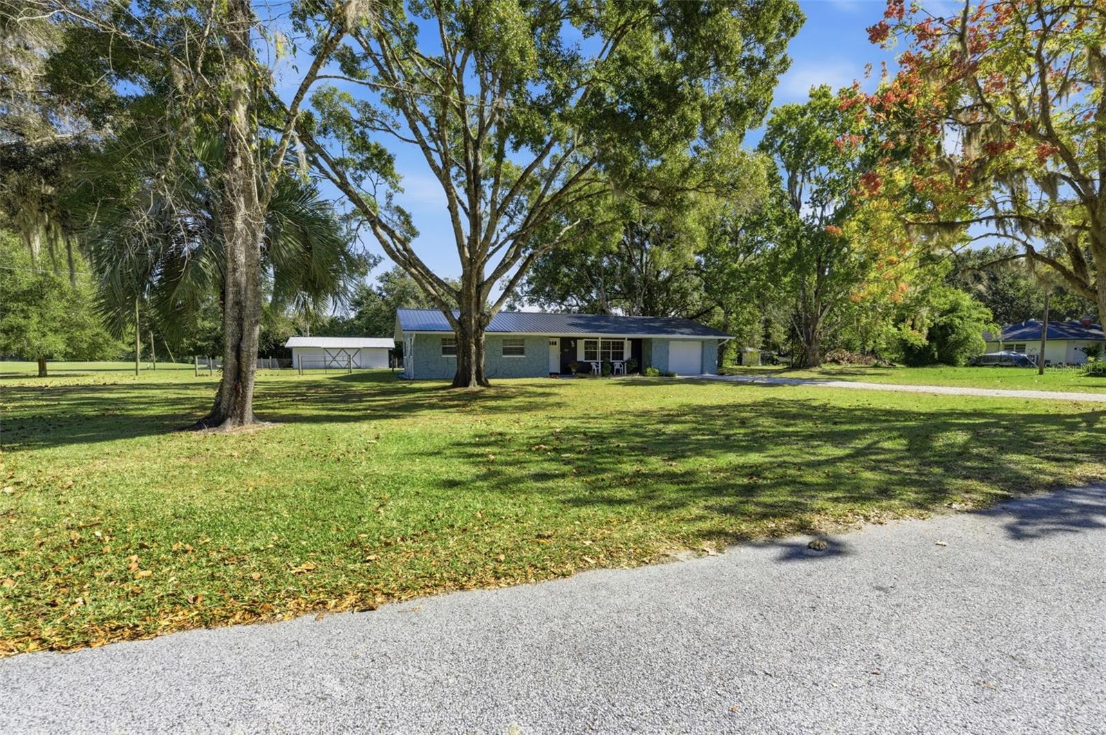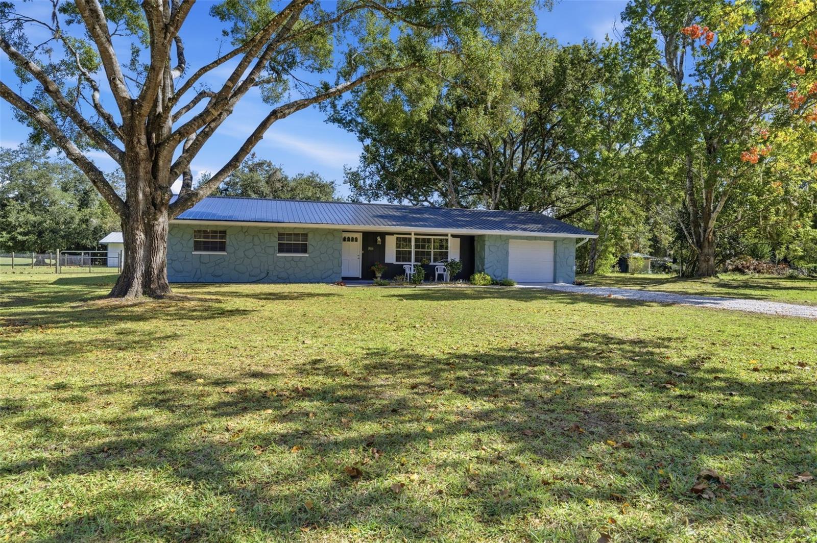 Don't let the age fool you—this home is practically brand new inside! This beautifully renovated 3-bedroom, 2-bath residence sits on a sprawling, nearly 1-acre parcel, blending rustic charm with modern convenience. Step inside a furnished, move-in-ready haven featuring brand new vinyl plank flooring and fresh paint inside and out. The heart of the home is a stunning new kitchen, complete with ample cabinetry, a large pantry, new dishwasher and microwave, and elegant finishes. Laundry room is located in garage includes Washer & Dryer. KEY FEATURES: Move-In Ready: Fully furnished and meticulously updated. Worry-Free Living: New Quality Metal Roof (2025), new seamless gutters, and a recently coated barn roof. Spacious Living: Two distinct living areas (living room & family room) perfect for entertaining, plus ample closet space in all bedrooms. Flex Space: A den offers the flexibility for a 4th bedroom or a convenient inside laundry room conversion. Outdoor Paradise: Enjoy scattered oaks for shade, a fully fenced backyard for pets, and an impressive 32 x 24 barn on a concrete slab—ideal for storage or hobbies! This is the perfect blend of indoor comfort and outdoor utility. Schedule your showing today! This is the acreage home you've been waiting for. Must see!
