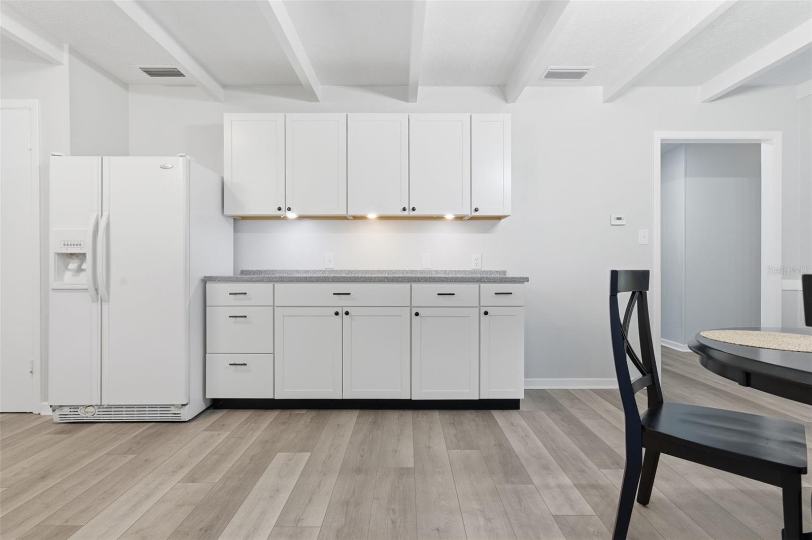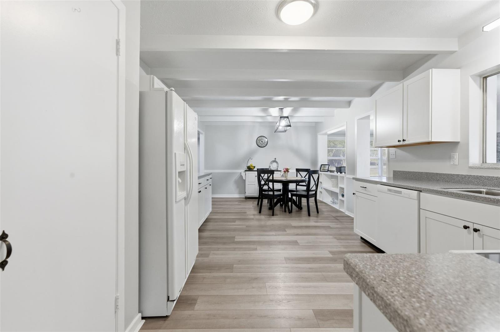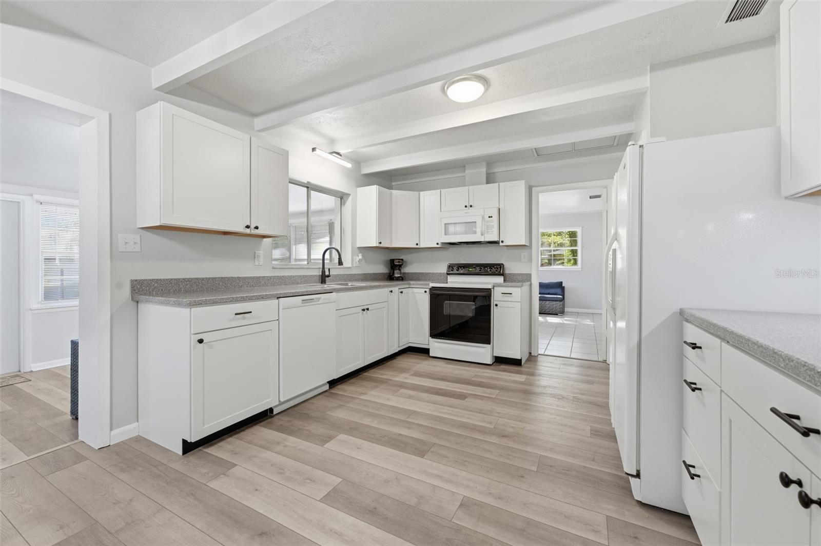 Don't let the age fool you—this home is practically brand new inside! This beautifully renovated 3-bedroom, 2-bath residence sits on a sprawling, nearly 1-acre parcel, blending rustic charm with modern convenience. Step inside a furnished, move-in-ready haven featuring brand new vinyl plank flooring and fresh paint inside and out. The heart of the home is a stunning new kitchen, complete with ample cabinetry, a large pantry, new dishwasher and microwave, and elegant finishes. Laundry room is located in garage includes Washer & Dryer. KEY FEATURES: Move-In Ready: Fully furnished and meticulously updated. Worry-Free Living: New Quality Metal Roof (2025), new seamless gutters, and a recently coated barn roof. Spacious Living: Two distinct living areas (living room & family room) perfect for entertaining, plus ample closet space in all bedrooms. Flex Space: A den offers the flexibility for a 4th bedroom or a convenient inside laundry room conversion. Outdoor Paradise: Enjoy scattered oaks for shade, a fully fenced backyard for pets, and an impressive 32 x 24 barn on a concrete slab—ideal for storage or hobbies! This is the perfect blend of indoor comfort and outdoor utility. Schedule your showing today! This is the acreage home you've been waiting for. Must see!
