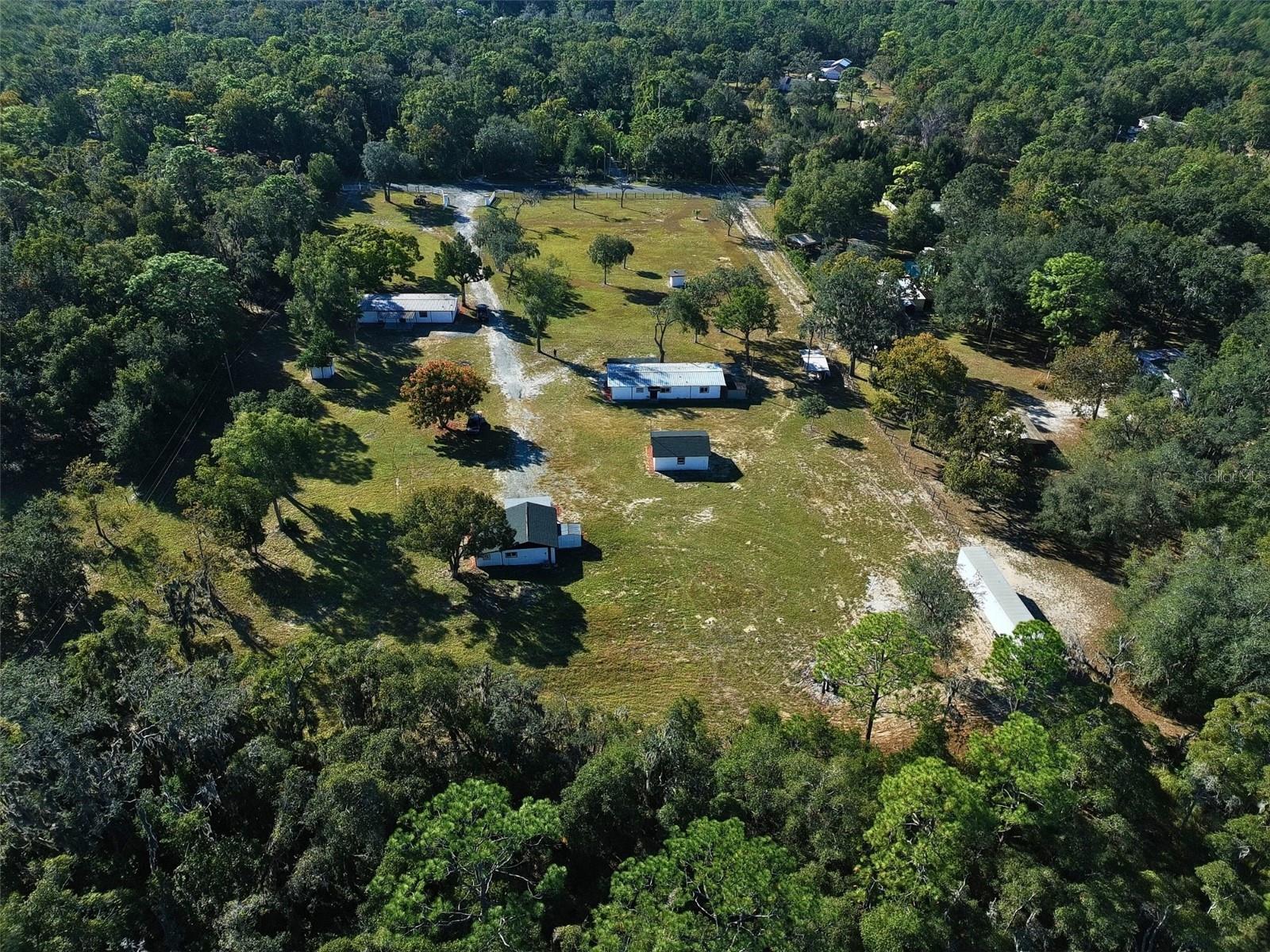 One or more photo(s) has been virtually staged. Rare Income-Producing Opportunity: Fully renovated 5-acre multi-family compound in Brooksville, Hernando County, featuring three separate residences plus detached garage/workshop on agriculturally zoned, fully fenced land with NO HOA and NO CDD fees. This turnkey investment property offers immediate rental income potential, multi-generational living flexibility, or agricultural business operations with multiple revenue streams. Zoning: Agricultural (AG)—buyer to verify —allows residential use, livestock, farming, nursery operations, equestrian activities, RV/equipment storage, and home-based businesses, subject to county permits. Property includes 4 structures with individual utilities: (1) Block-constructed 1-bedroom/1-bathroom home (approx. 580sqft) with bonus flex room, completely rewired electrical system(2025), updated kitchen and bathroom, new roof October 2025, central AC, individual electric meter, separate septic system, own postal address, and exterior water/electrical hookups; (2) Renovated 3-bedroom/2-bathroom double-wide mobile home (1973) with complete interior updates, modern kitchen and bathrooms, luxury vinyl flooring, central AC, individual electric meter, separate septic, own postal address, aluminum roof (1999), washer and dryer, and exterior utilities; (3) Second renovated 3-bedroom/2-bathroom double-wide mobile home (1972) with complete electrical system replacement (2025), full interior updates, kitchen, bathrooms, contemporary ceramic tile flooring, central AC, individual electric meter, separate septic system, own postal address, Aluminum Roof (1999), washer and dryer and exterior water/electrical access; (4) Block-constructed detached garage with finished interior, utility sink, electricity, water hookup, new roof October 2025, suitable for studio, workshop, or additional storage/rental income. Each residence has its own postal address, enabling separate rental agreements. The completely fenced 5-acre parcel includes substantial cleared usable land ideal for small livestock, gardens, workshops, equipment parking, RV/boat storage, or future agricultural expansion. Infrastructure highlights: Private well system serving all structures, separate septic tanks, individual electric meters for each living unit allowing tenant-paid utilities, exterior hose bibs and 110V electrical outlets on all structures, central AC systems in all three homes, and ample parking throughout. The fully fenced acreage offers cleared land perfect for vegetable gardens, farming, chicken coops, goat/sheep enclosures, horse paddocks, greenhouse operations, or nursery business—all subject to Hernando County zoning regulations and permits. Income potential: Three rentable residences with separate addresses and utilities create immediate cash flow, while garage/workshop adds rental or business value. Prime Brooksville location with convenient access to US-19, Cortez Boulevard (SR-50), Weeki Wachee Springs State Park, Brooksville downtown, shopping (Walmart, Publix), dining, Oak Hill Hospital, and essential services—perfect balance of rural privacy with urban convenience. This turnkey agricultural compound with NO HOA/NO CDD provides unlimited flexibility for investors, multi-generational families, agricultural entrepreneurs, or income property seekers in Florida's Nature Coast. Showings strongly recommended to appreciate the extensive renovations, income-producing layout, and versatility this rare 5-acre property offers.