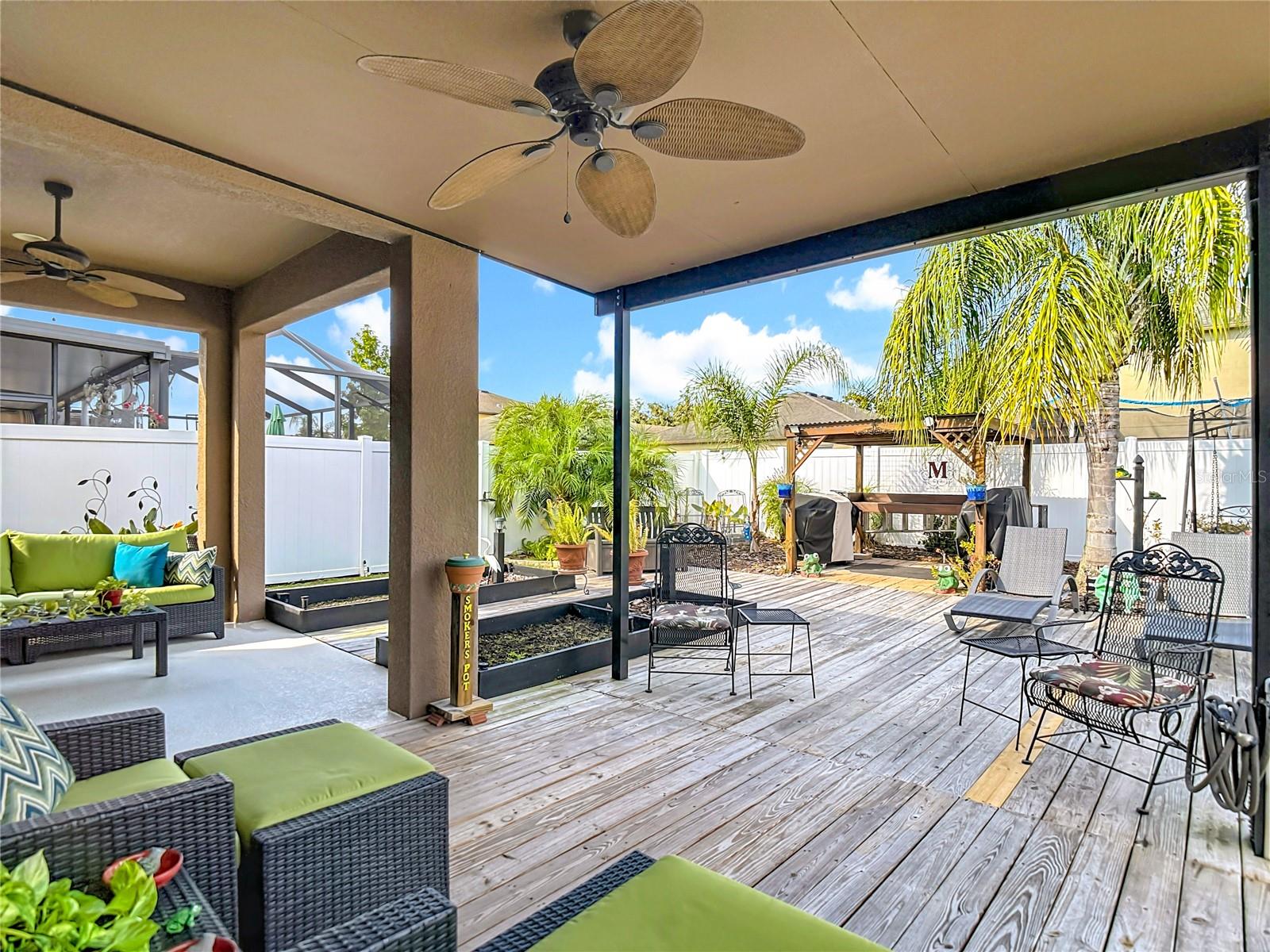 Stunning upgraded 3-bedroom, 2 bath home with a tropical paradise backyard is in the desirable Trillium community. Upon arrival, you'll immediately notice the upgraded Provista lawn, beautifully designed landscaping, and elegant stone accent walls that frame a cozy front porch — the perfect spot to relax and enjoy your surroundings. Step inside and prepare to be wowed by a tremendous array of upgrades and thoughtful details that set this home apart. The kitchen is a true showstopper, featuring upgraded cabinets, sparkling granite counters, and a center island topped with granite and illuminated by stylish pendant lighting. A tile backsplash complements the overall design, with stainless steel appliances — including a new refrigerator and microwave. Storage abounds with two pantries, and recessed lighting brightens the space for all your cooking needs. The living room welcomes you with tray ceilings and crown molding, adding a touch of sophistication. A free-standing fireplace creates a cozy atmosphere, and a convenient floor outlet adds practical functionality for your devices and décor. Retreat to the master suite, where tray ceilings and a walk-in closet offer comfort and luxury. The master bath boasts granite counters, dual sinks, and an upgraded tile shower, providing both style and convenience. The second and third bedrooms share the updated second bath, giving guests or family members their own comfortable space. Step out back into your own tropical paradise, featuring breathtaking views and multiple outdoor living spaces. Enjoy a 10x11 lanai, plus an additional 12x14 covered lanai with an extended wooden deck. The outdoor area is thoughtfully designed with multiple flower beds, electric outlets, a separate grilling station with pavers with electric and water spigots. An 8x10 shed equipped with electricity adds even more functionality. In addition to the beautiful garden, you'll find orange, blueberry, and kumquat trees, providing fresh fruit and vibrant color. Additional side storage and beautiful vinyl fencing with two gates ensure security and convenience. Additional features include new interior paint, sprinkler systems in the front and back yards, paid (26k) solar panels for the whole house, upgraded doors and baseboards, crown molding in most rooms, and additional electrical outlets, water spigots and termite protection plan in place. Trillium Village offers a delightful community with a clubhouse, playground, and a refreshing pool for your enjoyment. Nature Coast enthusiasts enjoy all our area has to offer. Veterans Memorial Park, and Anderson Snow Park, popular for their sports complex and play area are less than 5 miles away. Crews Lake Park, known for its beautiful camping sites and picturesque scenery, is just 20 minutes south of us. For golf enthusiasts, a short drive will take you to the Hernando Oaks Golf Club. Also, a short drive to the famous Weeki Wachee live mermaids, our local beaches, Pine Island Park and Roger’s Park for fun on the water are within 30 minutes. Close to the Suncoast parkway for quick access to the airport, Tampa, Clearwater and St. Pete Beaches (Ranked in the top 5 Beaches in the US), also close to the famous Tarpon Springs Sponge Docks. Lots of shopping and local favorite dining options.