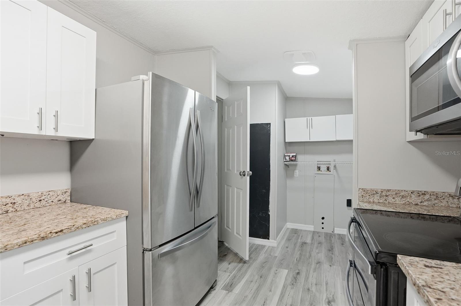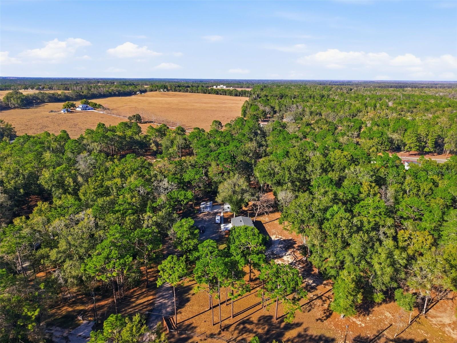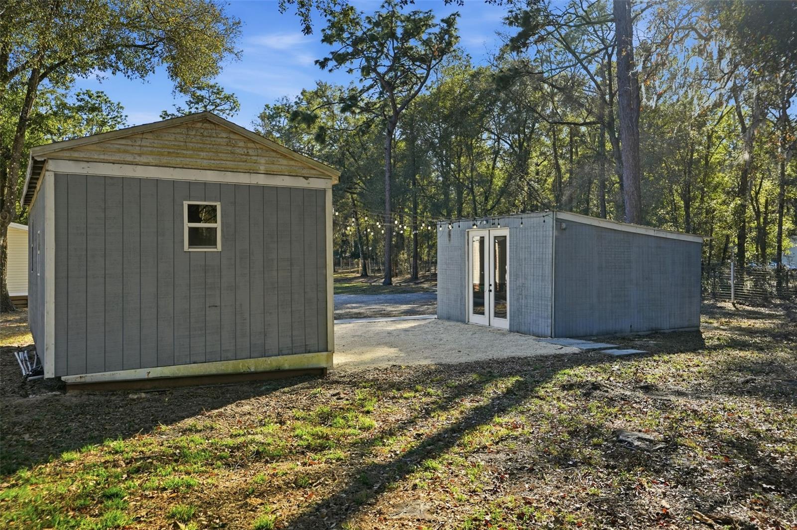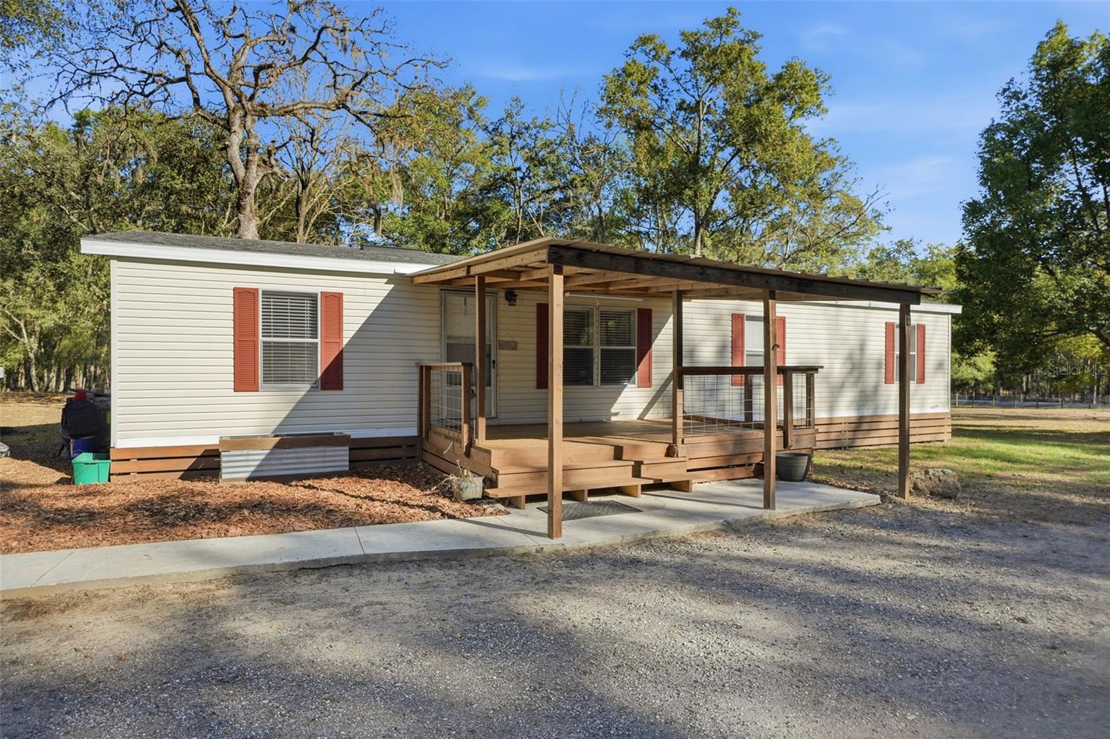 Stylishly Upgraded Mobile Home with Impressive Acreage, Chef’s Kitchen, and Large Primary Suite! Idyllically located in a quiet country setting, this 3BR/2BA residence affords a tranquil atmosphere for easy living. Boasting a fenced-in 5.1-acre lot, the property welcomes with a front gate, multiple mature trees, and a spacious covered front porch. Explore the freshly painted interior to discover gorgeous faux-wood vinyl flooring, modern color scheme, and a large living room with a ceiling fan. Perfect for whipping up delicious meals, the open concept chef’s kitchen delights with granite countertops, stainless-steel appliances, white shaker cabinets, electric double oven, French door refrigerator, built-in microwave, undermount stainless-steel sink, pantry, and dining area. Entertainment-value is further enhanced with the adjacent family room, which is ideal for gatherings, hanging out with loved ones, or streaming your favorite tv series. Let relaxation reach new heights in the sizeable primary bedroom, and enjoy the possibilities of the high-end en suite. Bask in the granite-topped dual sink vanity, sleek light fixture, and a stepin shower. Two extra bedrooms are wonderfully sized for comfortable accommodations, while the full guest bathroom has a shower/tub combo, granite-topped storage vanity, and attractive hardware. Venture into the backyard to find a gravel patio, storage shed, covered BBQ gazebo, and a chicken coop. The showstopper is the unfinished versatile outbuilding with double glass doors, a window, and durable concrete flooring. Whether you need flex space or a party-perfect entertaining area, the unfinished outbuilding may be customized to suit your personal desires. Additional considerations include a long gravel driveway, interior laundry area with built-in cabinets, newer roof 2023, AC 2025, water heater 2025, vapor barrier/underbelly 2024 and only 5-11+ miles from restaurants, shopping, parks, schools, and I-75, and much more! Come see today, and start living the good life in Brooksville’s beautiful countryside!