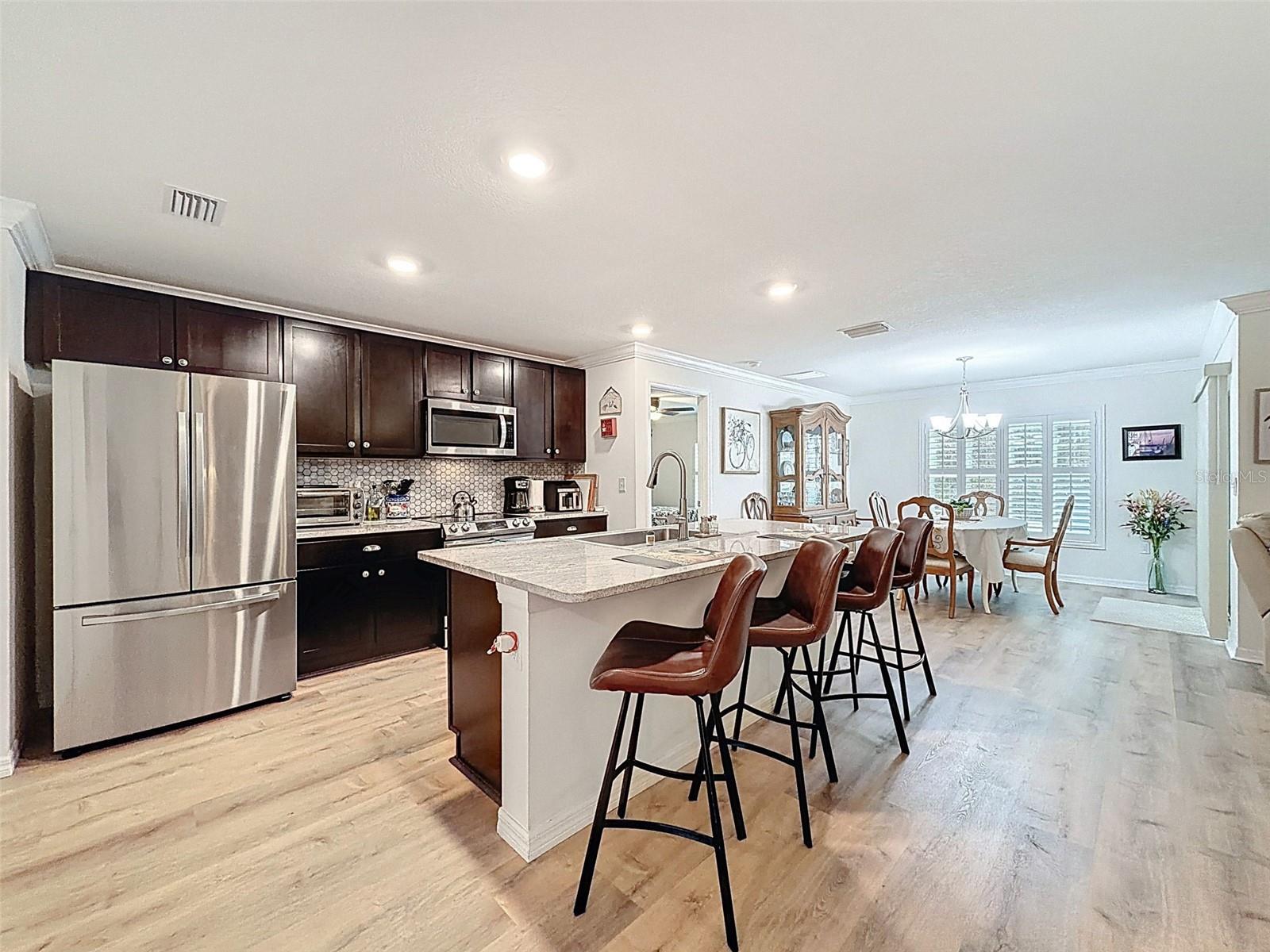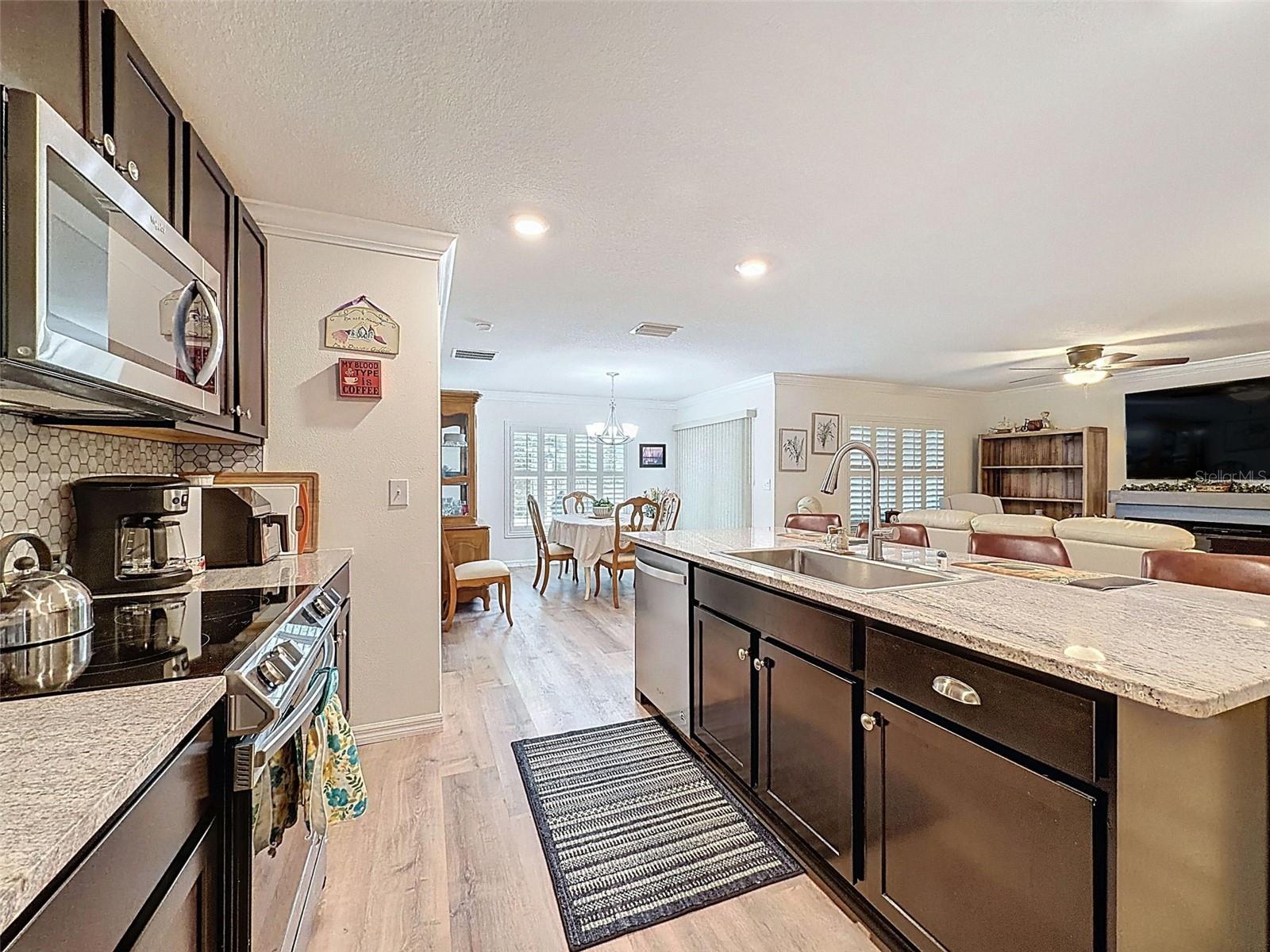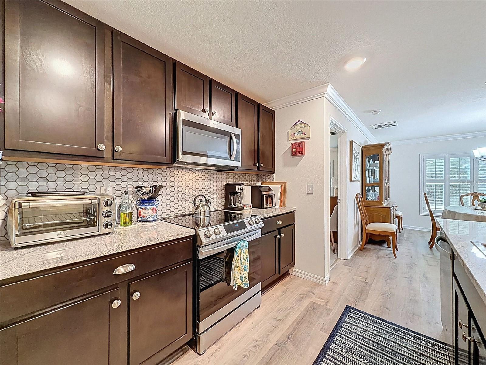 Tired of those harsh northern winters? Ready to live the Florida lifestyle and enjoy the Florida sunshine? Love to Golf? Well, this home is just waiting for you! This LOVELY, well maintained, 3/2/2 home was built in 2021 and is two homes from the dead end/Cul de Sac with a conservation area located directly behind it. Located in Flood zone X, so Flood Insurance is not required. MANY upgrades to include Shaker style cabinets with custom pulls & knobs, Granite kitchen countertops, Samsung low profile range/Convection oven WITH AirFry, large Samsung 3 door refrigerator, Whirlpool microwave & dishwasher and a large Farmstyle kitchen sink with custom faucet. There's also recessed lighting in the foyer, kitchen and bathrooms, custom cabinets in the laundry room AND double pane/double hung thermal windows with beautiful Plantation shutters! As you enter the home, observe the finishing details which include custom landscape curbing, a gorgeous decorative lead & glass entry door, Crown molding, an electric Fireplace that can generate heat, custom tile backsplash in the kitchen, ''Step-in'' shower in main bathroom, and 18''x18'' tile and wood engineered flooring in the wet areas. Relax on your screen enclosed back porch sipping your favorite beverage and enjoy all that Mother Nature has to display. Located in the desirable gated community of Hernando Oaks with easy access to major cities via US 41 or US 19. Approximately 40 minutes to Tampa, 55 minutes to Orlando, an hour to some of the most beautiful beaches Florida is famous for and within 20 minutes to shopping and schools. Seller is motivated, so bring your best price! Some furnishings may be negotiable. NO SELLER FINANCING, NO SIGHT UNSEEN OFFERS, NO ''SUBJECT TO'' OFFERS.