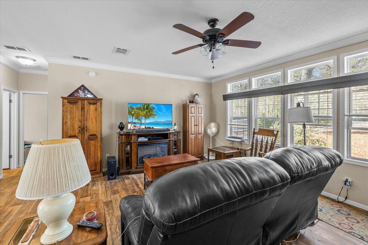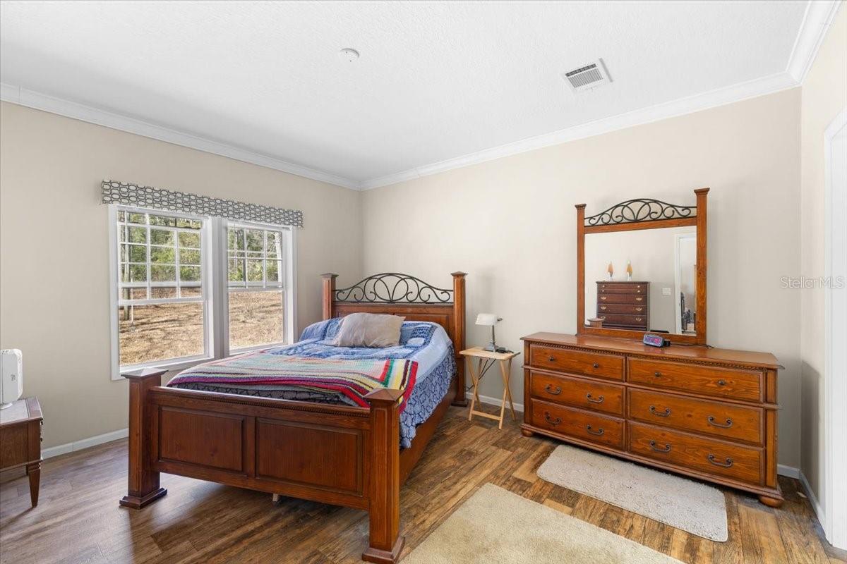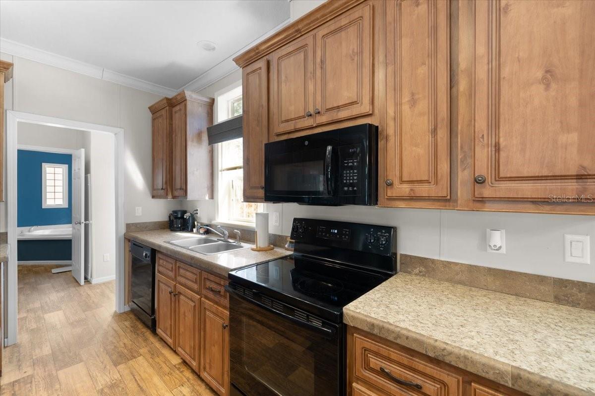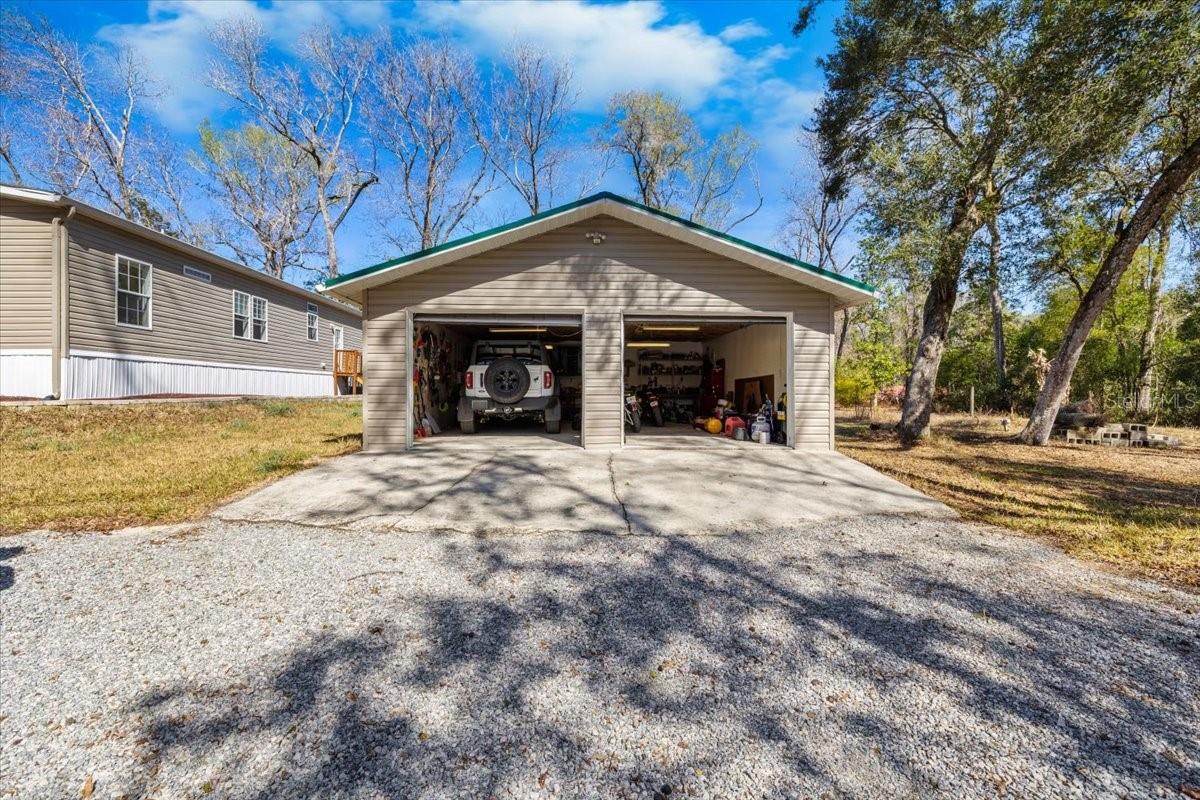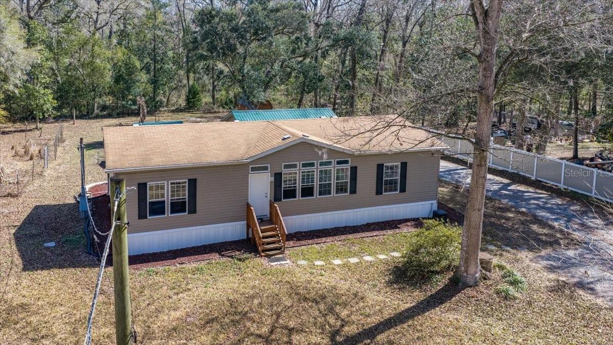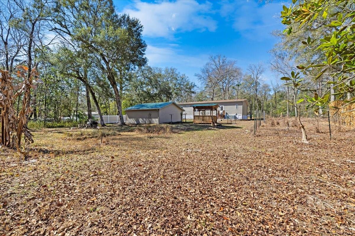 Country Living with City Convenience on 2.5 Acres - Built 2018! Enjoy the perfect blend of peaceful country living and convenient access to town in this beautifully maintained 2018 manufactured home situated on a spacious 2.5-acre lot. This light and bright 3-bedroom, 2-bath home features an open great-room floor plan ideal for entertaining, with high ceilings and abundant windows that fill the space with natural light. The kitchen is a true centerpiece, offering a large island, ample cabinetry, and a hidden pantry cleverly concealed behind cabinet doors for added storage and functionality. Vinyl flooring flows throughout the home for easy maintenance and modern appeal. The spacious primary suite provides a relaxing retreat with double sinks, generous cabinet storage, a separate garden tub, and a walk-in shower. A desirable split-bedroom layout offers privacy for family or guests. Outside, you'll find a detached insulated 2-car garage with a metal roof, a charming gazebo also featuring a metal roof, and a storage shed for all your tools and toys. The property is partially fenced with custom PVC fencing, offering both function and a clean, modern look, while the rear portion remains naturally wooded for added privacy and a serene setting. With plenty of space to spread out, bring your animals, toys, and outdoor dreams -- all while still being close to shopping, dining, and major routes. A rare opportunity for acreage living with modern comfort -- schedule your private showing today!