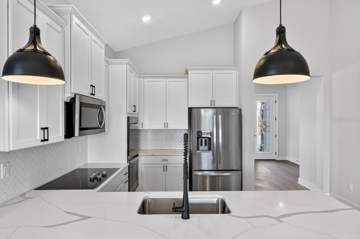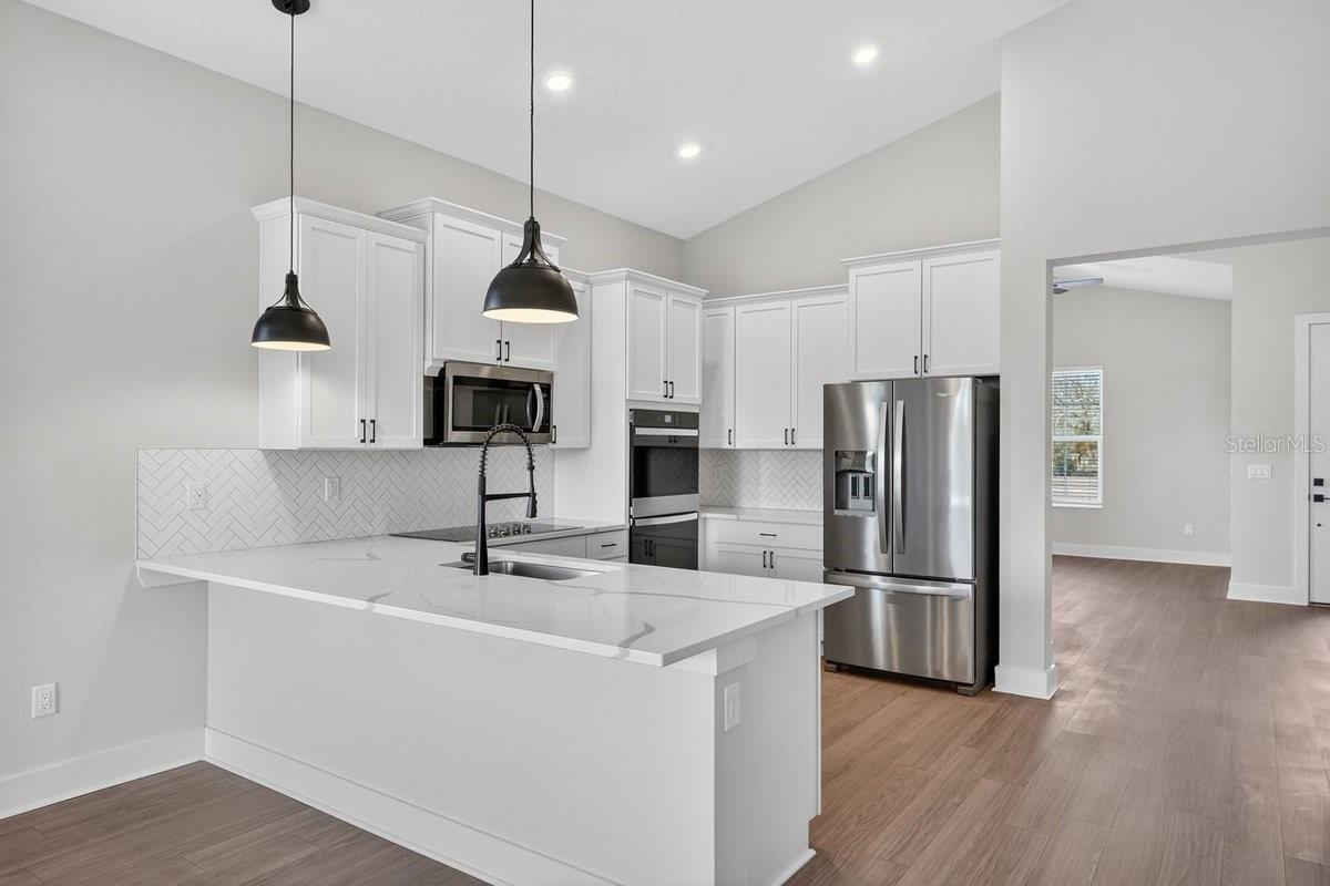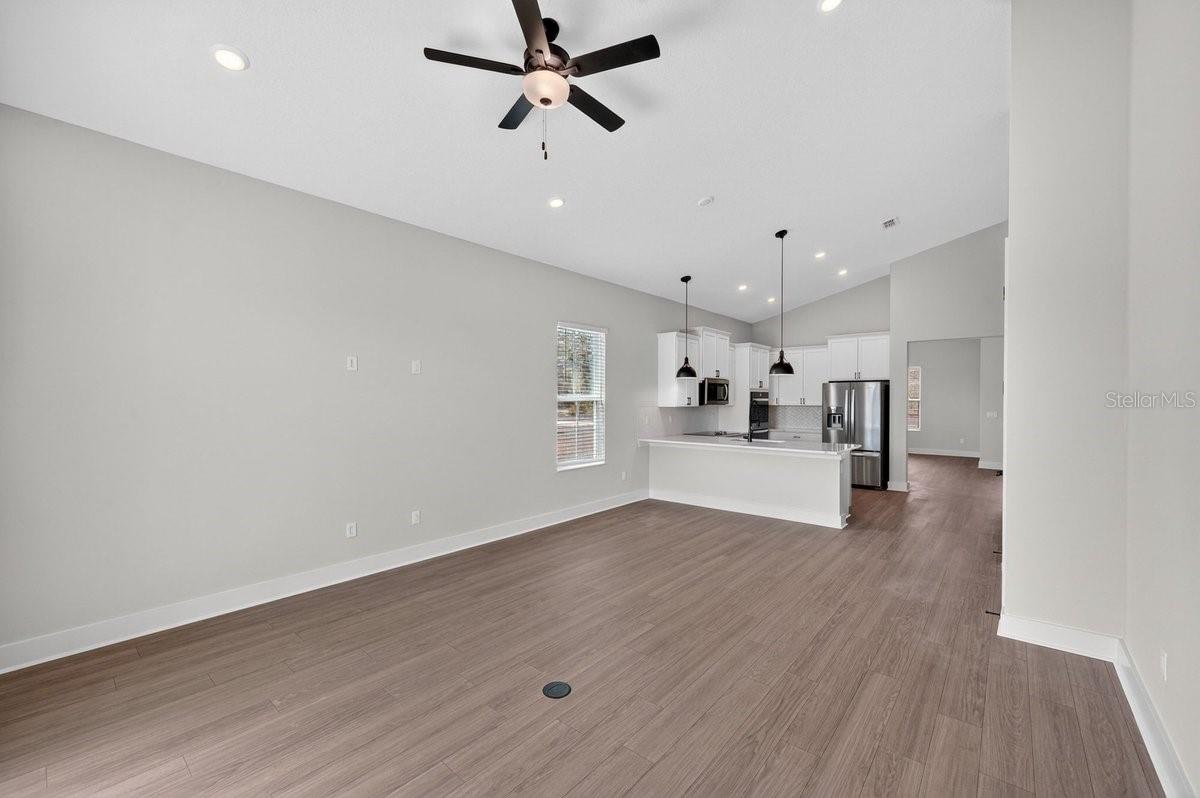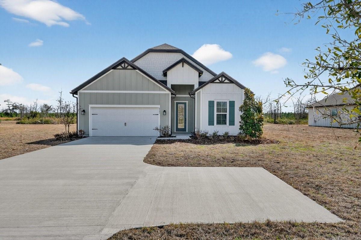 Welcome to 8495 Ford Rd, located on a sprawling acreage homesite in the sought-after Stables at Cary Forest. This beautifully designed home features the popular Henry floorplan with 4 bedrooms, 2 bathrooms, and a layout that blends everyday functionality with upscale finishes. From the moment you arrive, the property stands out with over 100 feet of driveway space and a 45-degree side driveway, offering exceptional ease for parking and maneuvering--allowing you to back in and pull straight out toward. Inside, the home offers a thoughtful, open feel with a vaulted front porch entry, a flex space upon entry ideal for a home office, playroom, or second sitting area, and a large dining room area perfect for hosting and everyday living. The kitchen is a standout, featuring double pantry doors, soft-close cabinetry, and a high-end kitchen setup with built-in double ovens. Blinds are already included, making this home even more move-in ready. Step outside to a covered rear porch with electric and cable outlets already installed, creating the perfect setup for outdoor entertaining, game days, or relaxing evenings. Garage comes already updated with epoxy flooring. Additional exterior and maintenance features include gutters already installed, a termite bond, sprinklers in flower beds, and Bahia grass. One of the most valuable features of this property is the land itself: NO WETLANDS -- all buildable land (buyer to verify), giving you more flexibility and usable space on your acreage homesite. If you've been looking for a newer home with space, upgrades, and a highly usable homesite, 8495 Ford Rd delivers a rare opportunity in Stables at Cary Forest.