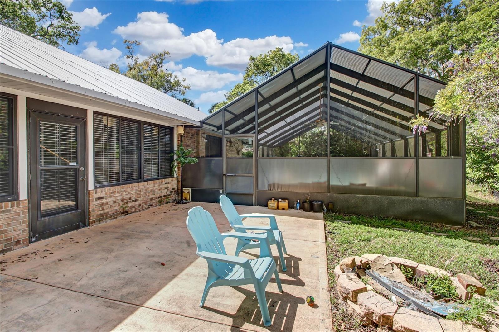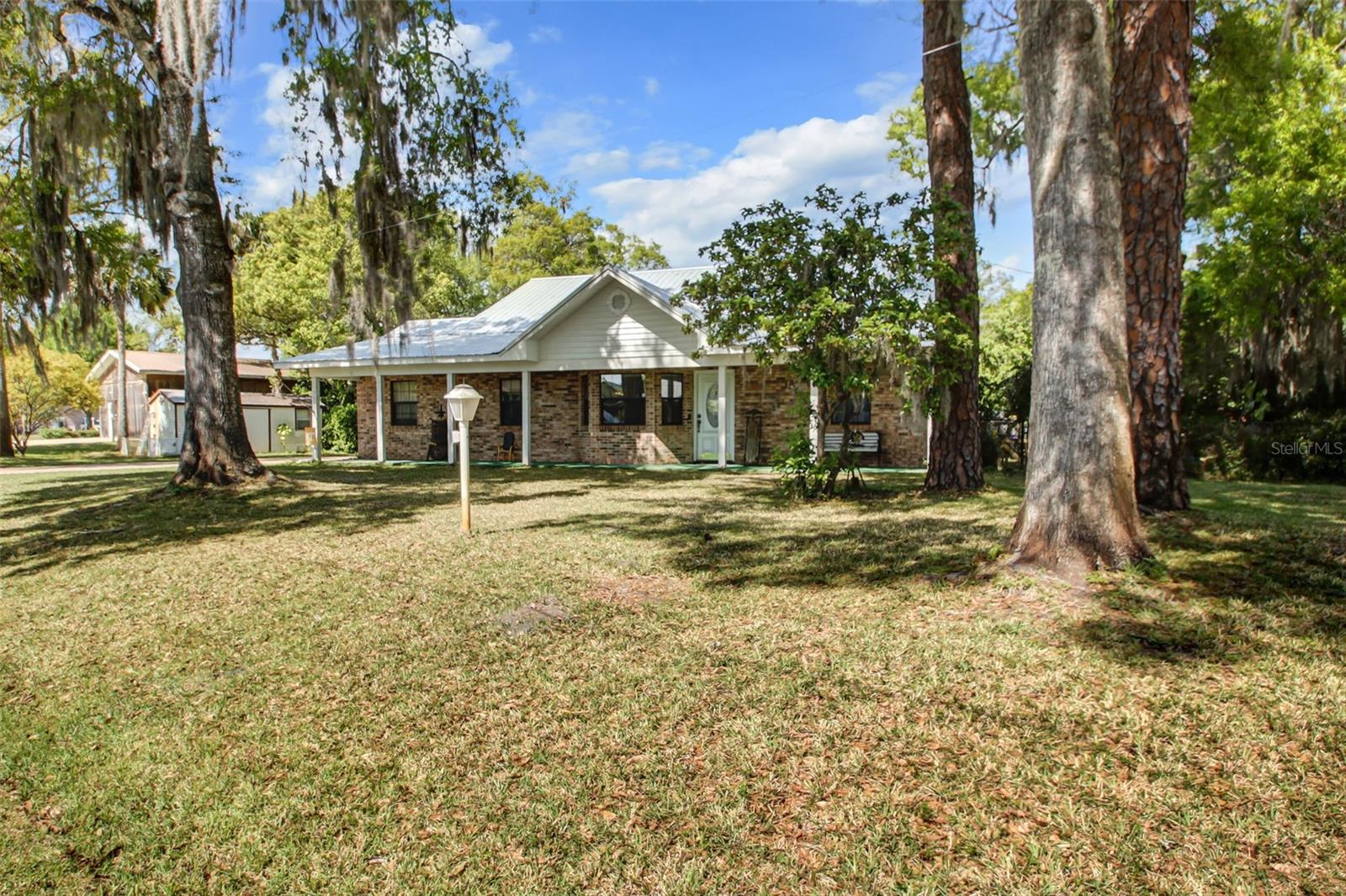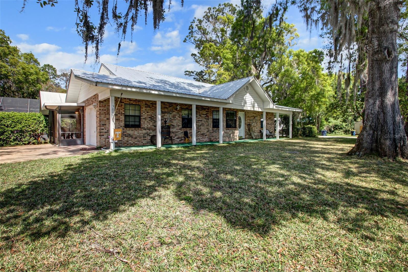 Welcome to your dream oasis! This exquisite 3-bedroom pool home boasts a picturesque park-like setting and is nestled on a corner property spanning three lots, totaling .36 acres of lush tranquility. 2023 Metal Roof,New vinyl plank flooring, Fully fenced for ultimate privacy, this haven offers the perfect blend of luxury and comfort. Step inside to discover new floors throughout, featuring elegant hardwood flooring in the living room and dining area, complemented by luxury vinyl plank flooring in the Florida room and bedrooms. A brand-new roof and tankless water heater ensure efficiency and peace of mind for years to come. Designed for optimal convenience and relaxation, the split floor plan ensures privacy, while the living room showcases a charming bay window with a cozy bench, perfect for basking in the warm sunlight. Your culinary adventures await in the open kitchen, complete with a large center island and new fixtures and lighting. Unwind in the inviting Florida room under air, featuring built-in shelves and a gas fireplace, ideal for cozy gatherings or quiet evenings at home. Outside, an oversized screened-in lanai beckons, boasting two large covered areas for entertaining or simply enjoying the serene surroundings. With amenities galore, this home offers a 1-car garage, motion detectors, window and door sound security, and a well on the property. Additionally, a 10 x 10 storage shed with electric and water provides ample space for all your storage needs. The new pool pump ensures crystal-clear waters in your private oasis. Embrace the freedom to bring your RV or toys, with ample space for parking. Plus, enjoy the convenience of a nearby park just down the street. Please note, the refrigerator in the kitchen does not convey. Don't miss this rare opportunity to own a slice of paradise where luxury meets tranquility. Schedule your showing today and experience the epitome of Florida living!