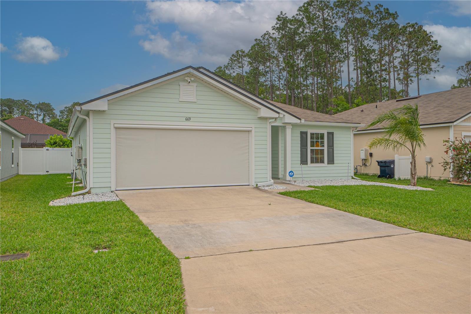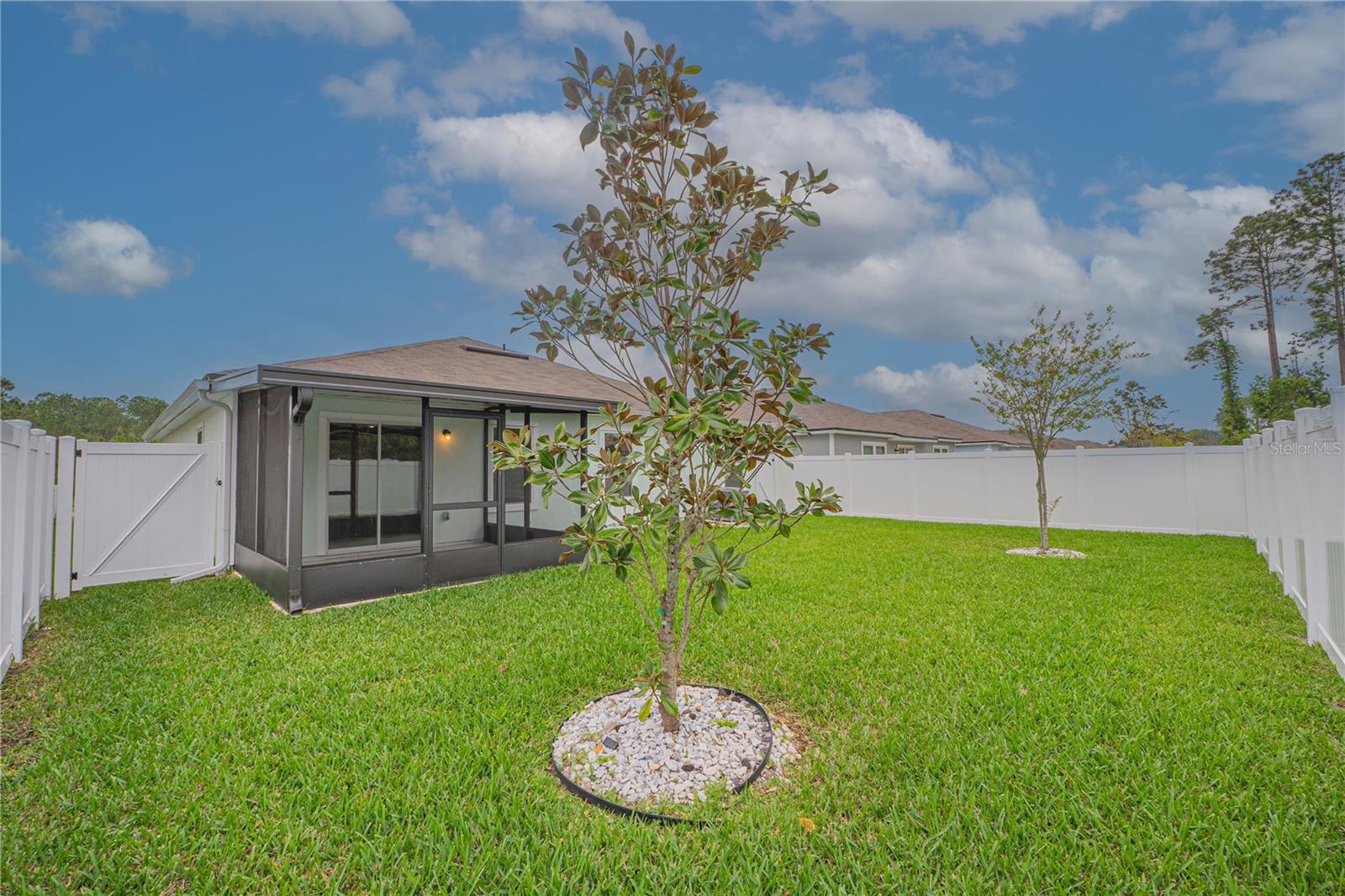 Why wait for new construction when you can own this beautiful home built in 2021? Located in the stunning Flagler County, Grand Reserve is a master-planned community with thoughtfully designed homes. This 3-bedroom, 2-bath home includes extras that may not come with a new build, such as a garage opener, tinted windows, a screened-in back patio, a fenced-in backyard, a roll-down privacy screen on the garage, and a whole-house water filtration system. Centrally located and close to schools, shopping, and the hospital, this home also features upgraded landscaping with stone instead of mulch, making it truly stand out. Don't forget the amazing amenity center, where you can cool off in the huge pool, work out in the exercise room, or entertain using the summer kitchen and relax in one of the sitting areas. The home has been pre-inspected, with the inspection transferable to the buyer, and includes warranties. Plus, the beautiful golf course is an added bonus!