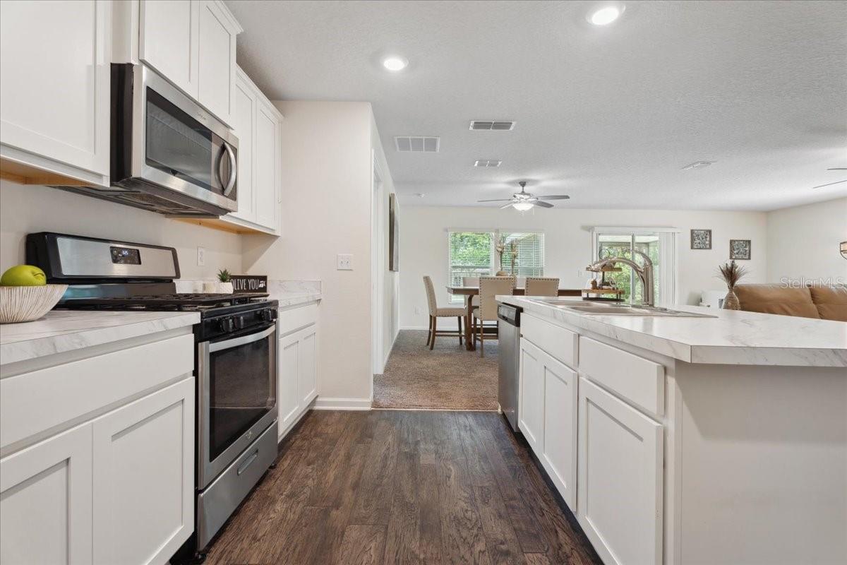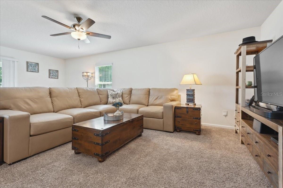 Welcome home to this move in ready one-story home, designed for comfort and open concept living! Boasting 3 bedrooms and 2 bathrooms, this home offers an inviting open floor plan filled with natural light. The kitchen sits at the heart of the home, featuring stainless steel appliances and a large center island.The spacious master suite provides a private space with its own full bathroom and walk-in closet. Additional highlight the attached two-car garage, shed in the backyard, large screened lanai and situated a premium lot next to a pond. Walk to the beautiful amenities including pickle ball, pool, fitness and so much more. Don't miss out on this beautifully designed home.