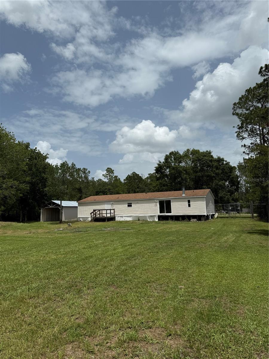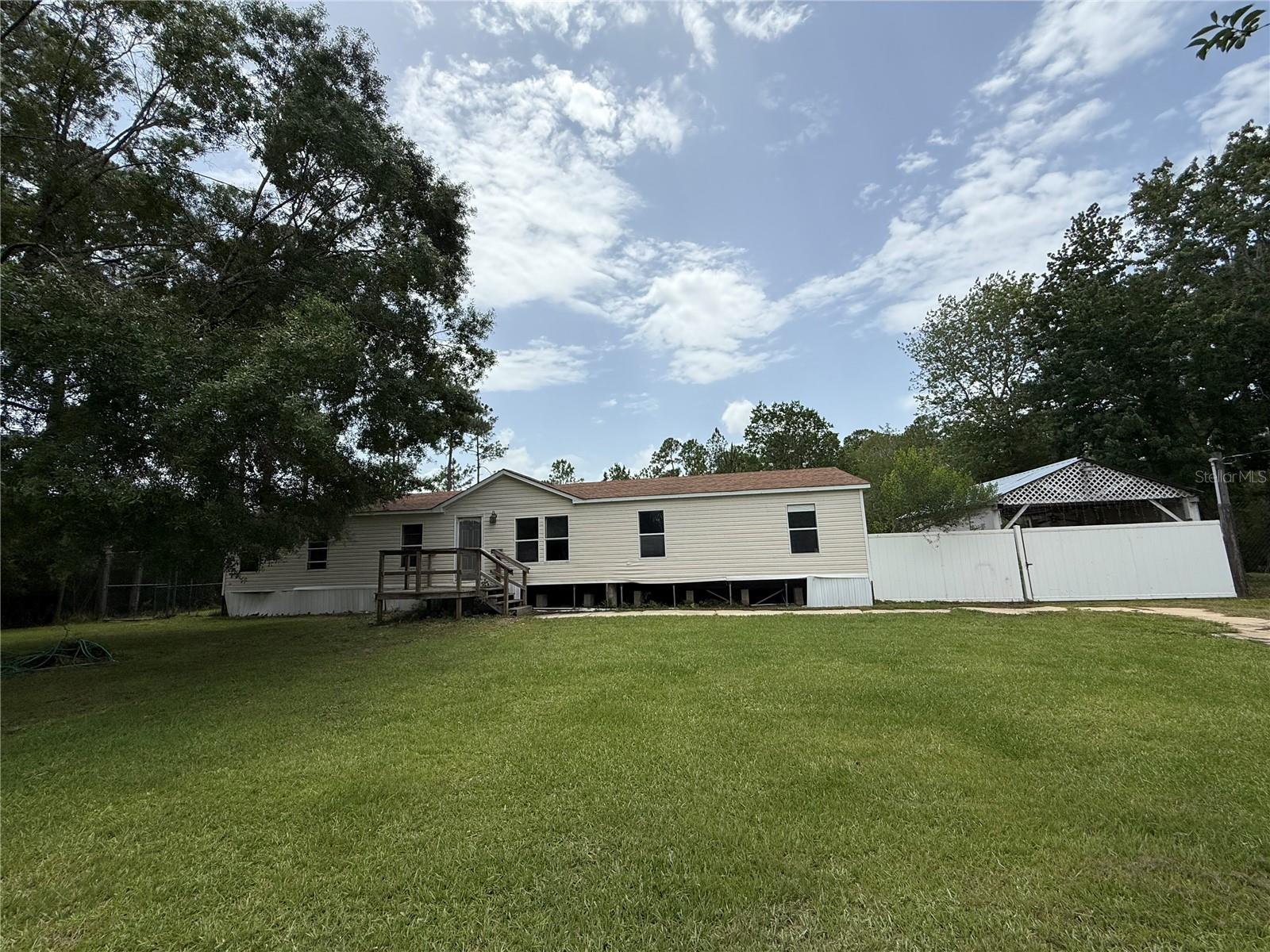 Opportunity knocks! This spacious 4-bedroom, 2-bath manufactured home sits on a generous 1.14-acre lot and is ready for a full renovation. Whether you're an investor or a homeowner looking to create your dream space, this fixer upper offers tons of potential—and owner financing is available! The home features a new hot water heater, a roof that’s only 5 years old, and a carport for covered parking. A metal storage building provides extra space for tools or equipment. The fully fenced backyard with 8 ft chain link fencing offers privacy and security, plus a small pond adds charm and outdoor enjoyment.