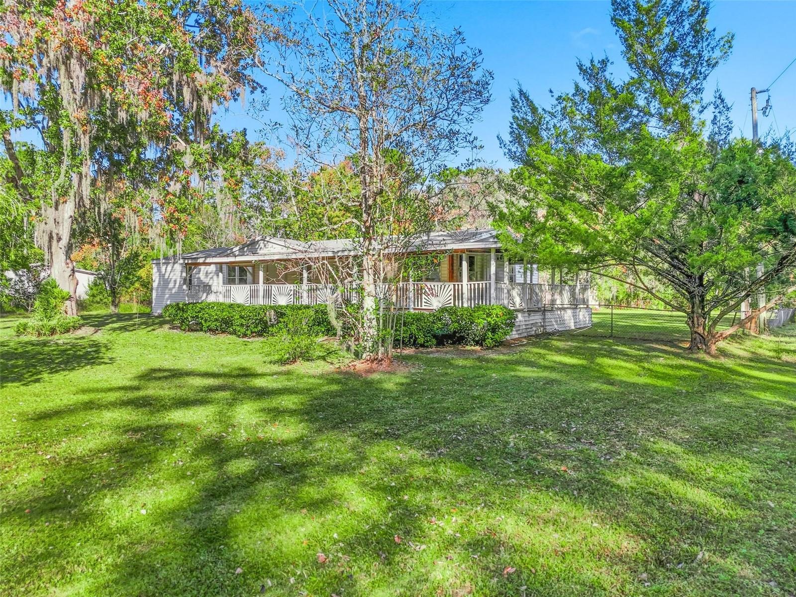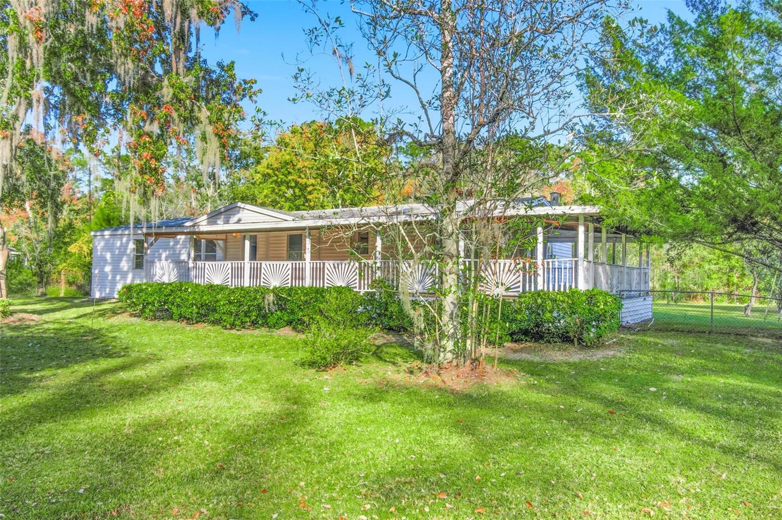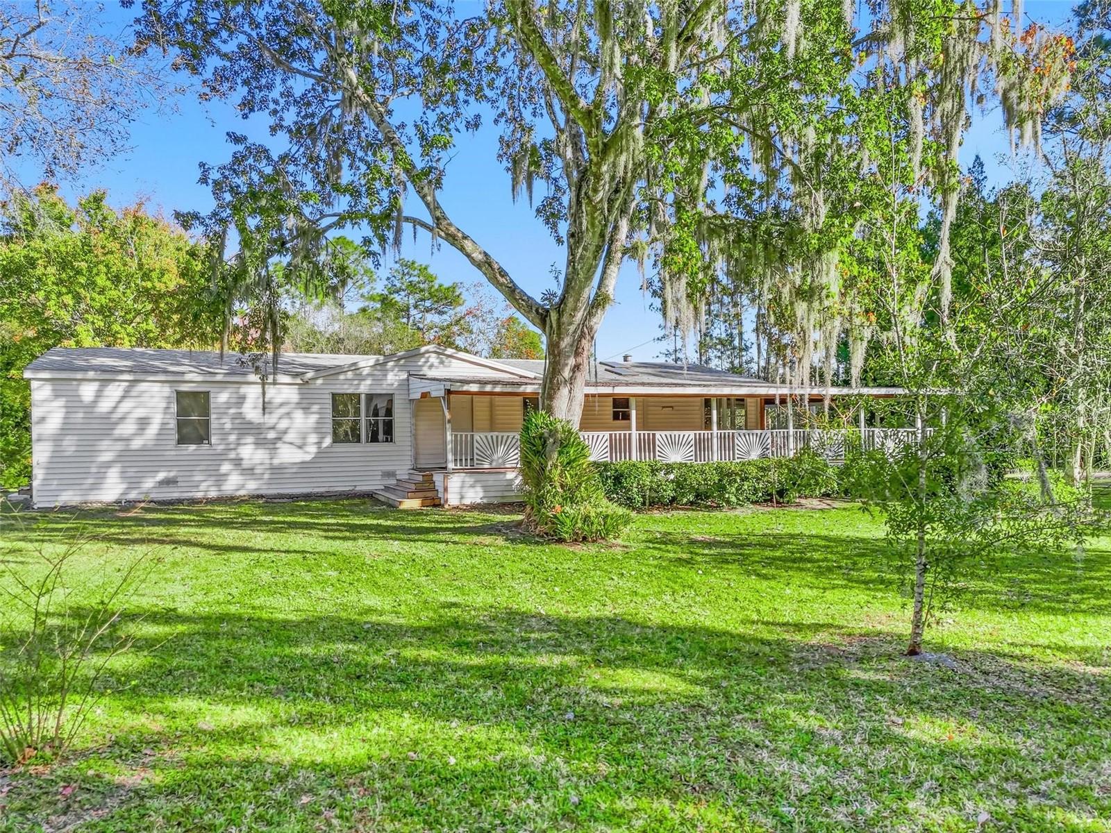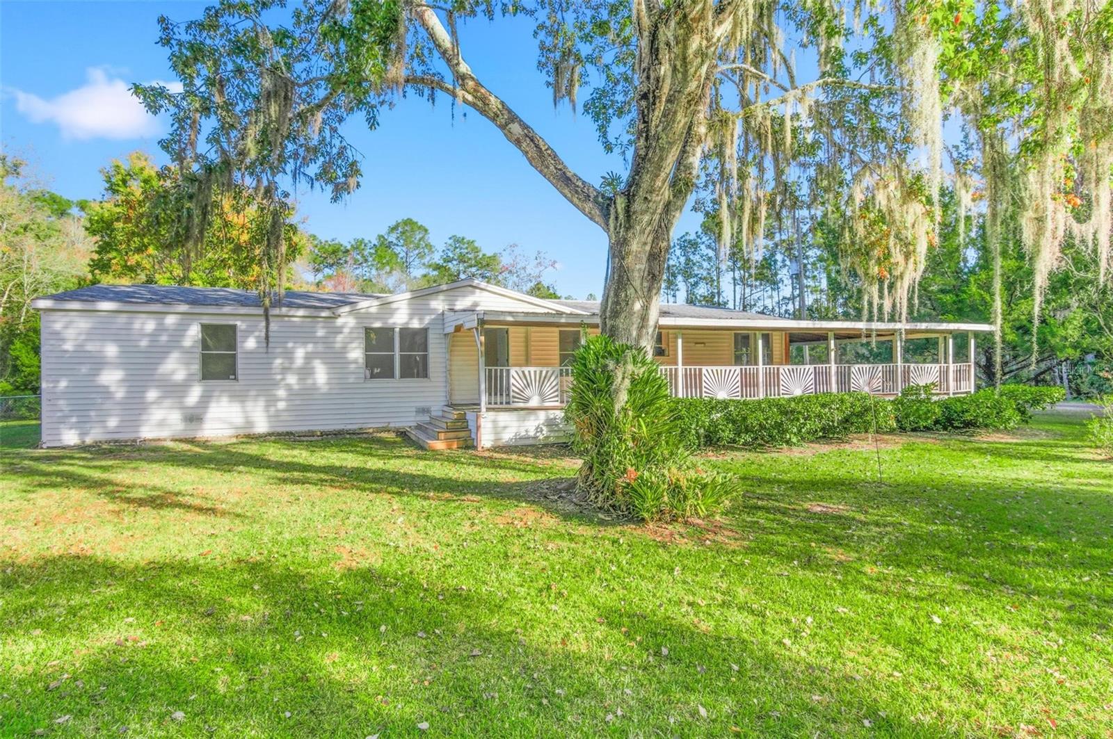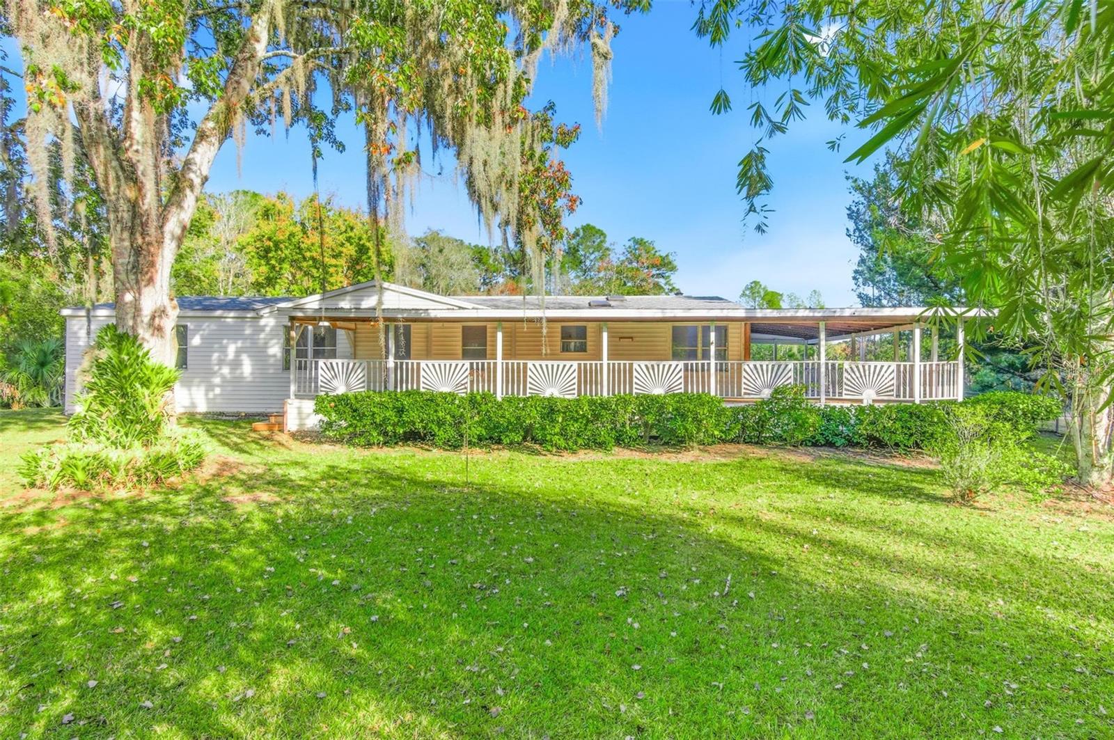 Escape to peace and privacy in this beautifully renovated Bunnell home, set on nearly 1 acre of lush natural landscape. Mature trees and native plants create a park-like setting that feels worlds away. Enjoy the outdoors year-round on the stunning wrap-around porch, perfect for morning coffee or evening relaxation. Step inside to a fully remodeled interior featuring new drywall, LED lighting, and vinyl plank flooring—an ideal backdrop for your personal style. The split floor plan offers a bright, spacious layout with abundant windows. The updated kitchen impresses with new stainless steel appliances, solid wood cabinets, a stylish tile backsplash, and a convenient center island. Just off the kitchen is a cozy living room with a wood-burning fireplace. Double doors lead to the generous primary suite, complete with a renovated bathroom featuring a soaking tub and walk-in shower. The guest bedroom includes its own private entrance, perfect for visitors or multi-use flexibility. Additional highlights include two backyard sheds, a new water heater, and a 2025 HVAC fan motor replacement. The home also passed a recent 4-point inspection, with the roof estimated to have 8–10 years of life remaining. Homes like this are rare—come make an offer before it's gone!