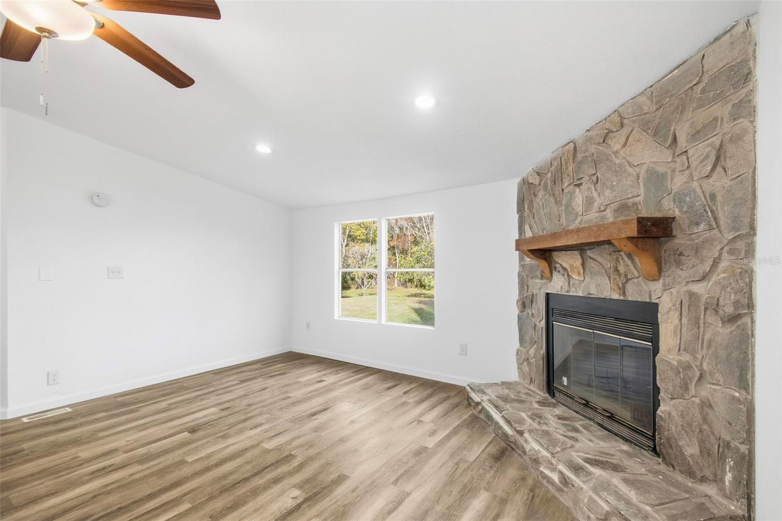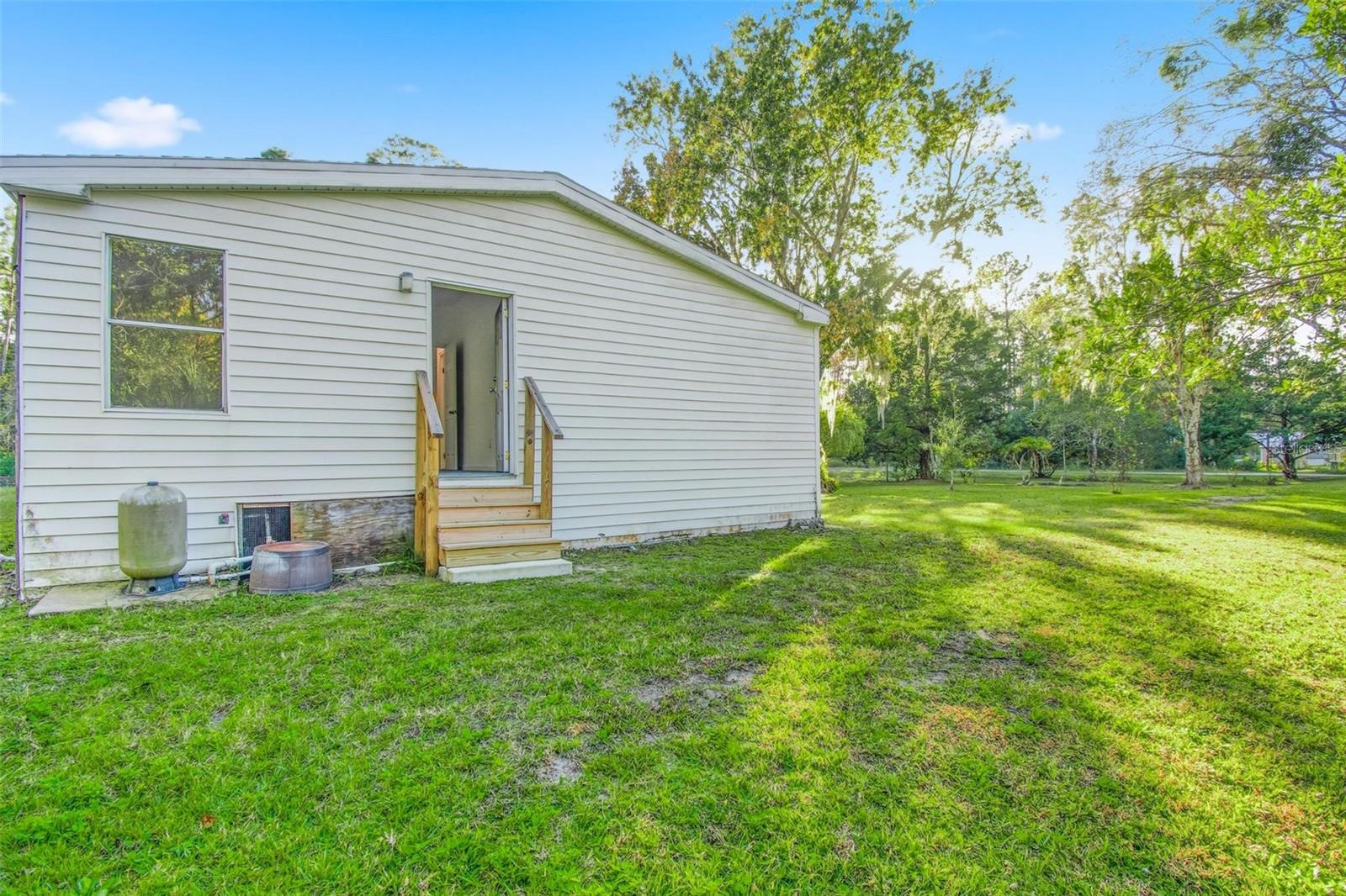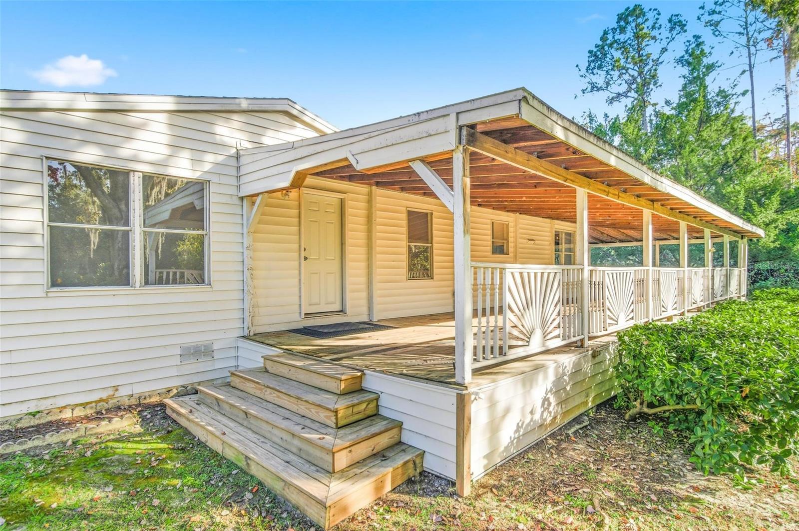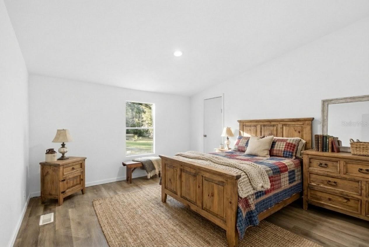 Escape to peace and privacy in this beautifully renovated Bunnell home, set on nearly 1 acre of lush natural landscape. Mature trees and native plants create a park-like setting that feels worlds away. Enjoy the outdoors year-round on the stunning wrap-around porch, perfect for morning coffee or evening relaxation. Step inside to a fully remodeled interior featuring new drywall, LED lighting, and vinyl plank flooring—an ideal backdrop for your personal style. The split floor plan offers a bright, spacious layout with abundant windows. The updated kitchen impresses with new stainless steel appliances, solid wood cabinets, a stylish tile backsplash, and a convenient center island. Just off the kitchen is a cozy living room with a wood-burning fireplace. Double doors lead to the generous primary suite, complete with a renovated bathroom featuring a soaking tub and walk-in shower. The guest bedroom includes its own private entrance, perfect for visitors or multi-use flexibility. Additional highlights include two backyard sheds, a new water heater, and a 2025 HVAC fan motor replacement. The home also passed a recent 4-point inspection, with the roof estimated to have 8–10 years of life remaining. Homes like this are rare—come make an offer before it's gone!