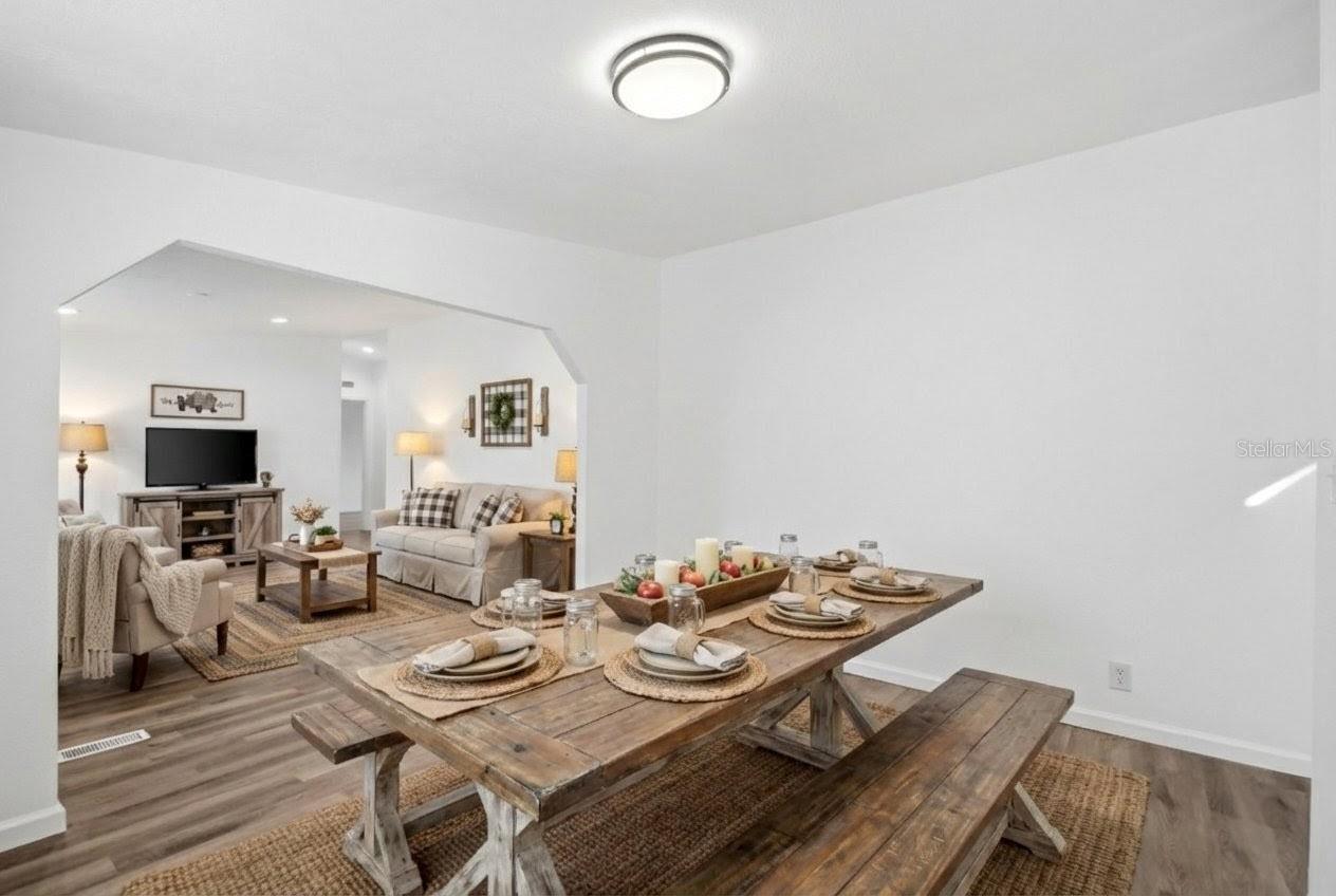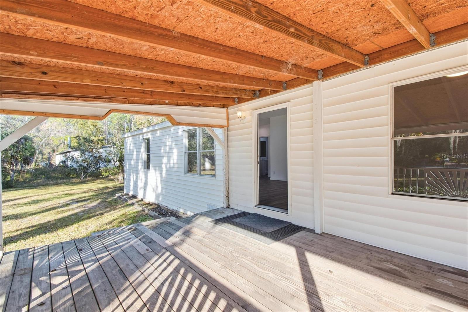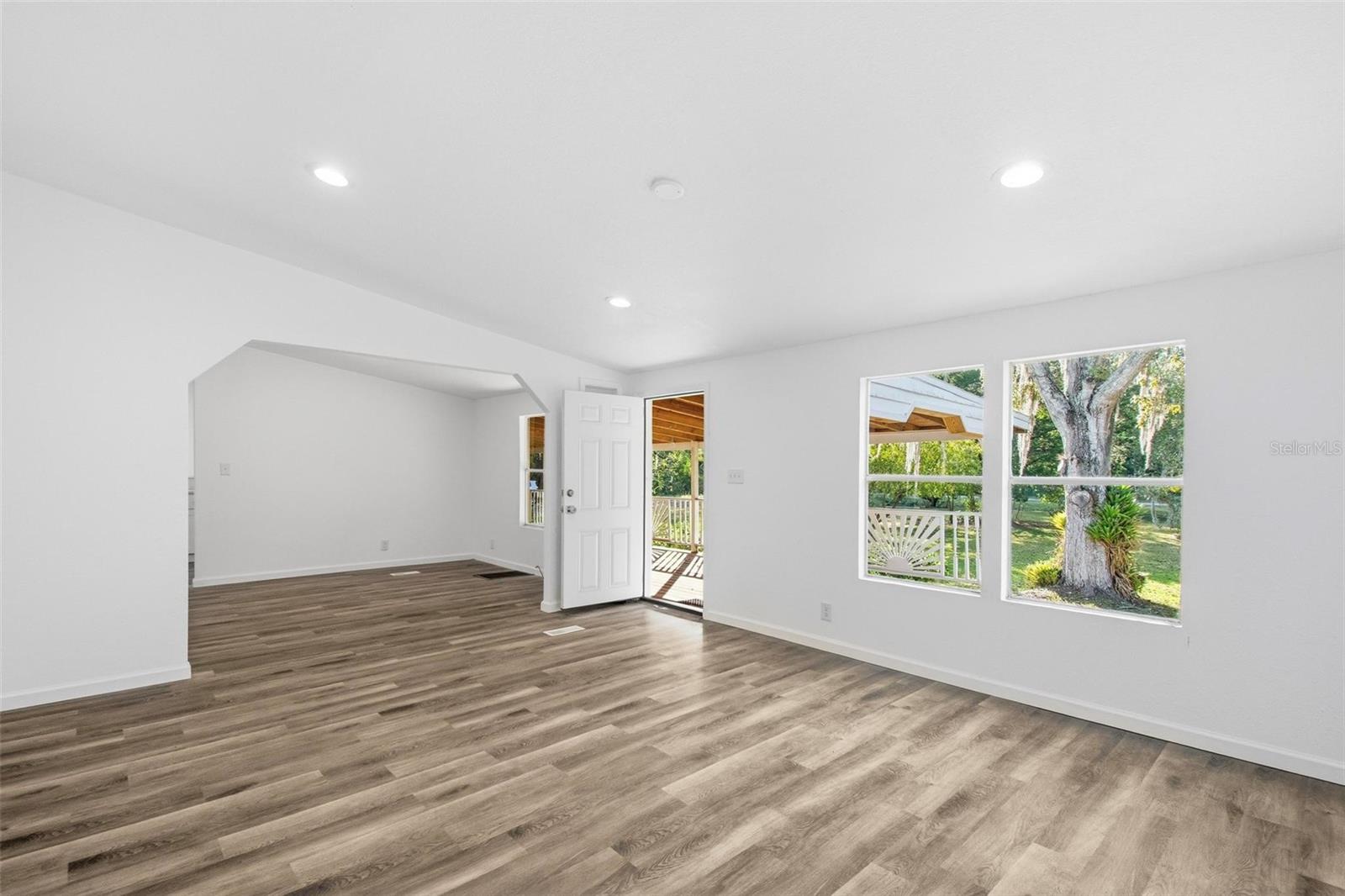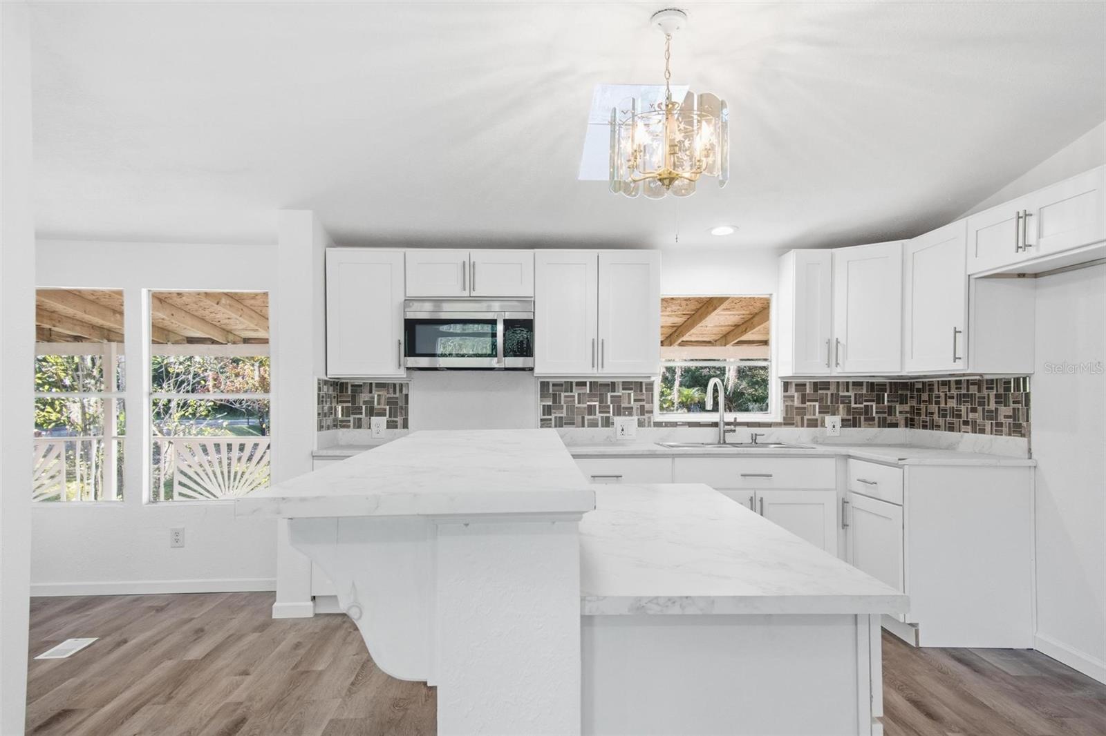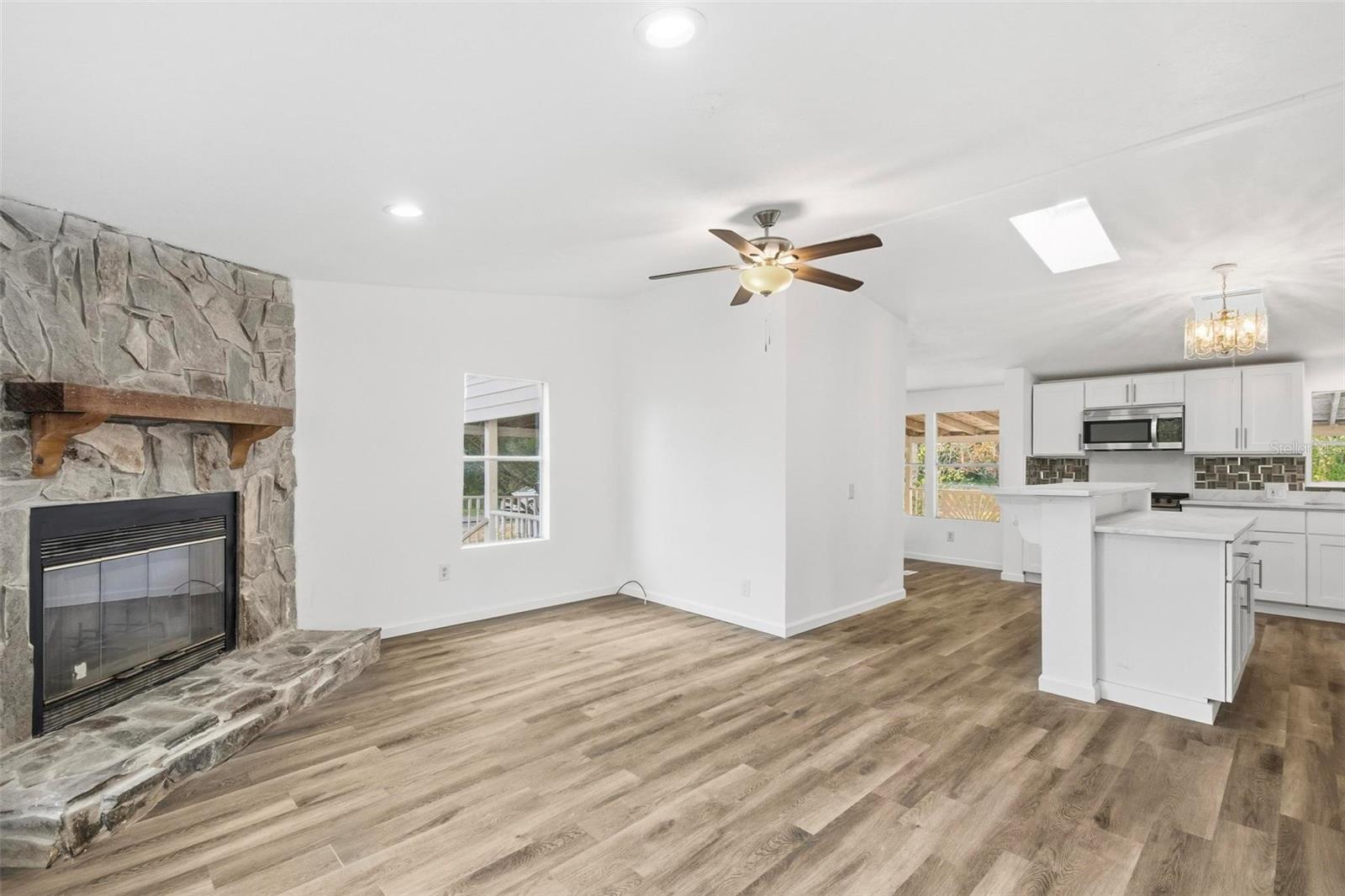 Escape to peace and privacy in this beautifully renovated Bunnell home, set on nearly 1 acre of lush natural landscape. Mature trees and native plants create a park-like setting that feels worlds away. Enjoy the outdoors year-round on the stunning wrap-around porch, perfect for morning coffee or evening relaxation. Step inside to a fully remodeled interior featuring new drywall, LED lighting, and vinyl plank flooring—an ideal backdrop for your personal style. The split floor plan offers a bright, spacious layout with abundant windows. The updated kitchen impresses with new stainless steel appliances, solid wood cabinets, a stylish tile backsplash, and a convenient center island. Just off the kitchen is a cozy living room with a wood-burning fireplace. Double doors lead to the generous primary suite, complete with a renovated bathroom featuring a soaking tub and walk-in shower. The guest bedroom includes its own private entrance, perfect for visitors or multi-use flexibility. Additional highlights include two backyard sheds, a new water heater, and a 2025 HVAC fan motor replacement. The home also passed a recent 4-point inspection, with the roof estimated to have 8–10 years of life remaining. Homes like this are rare—come make an offer before it's gone!