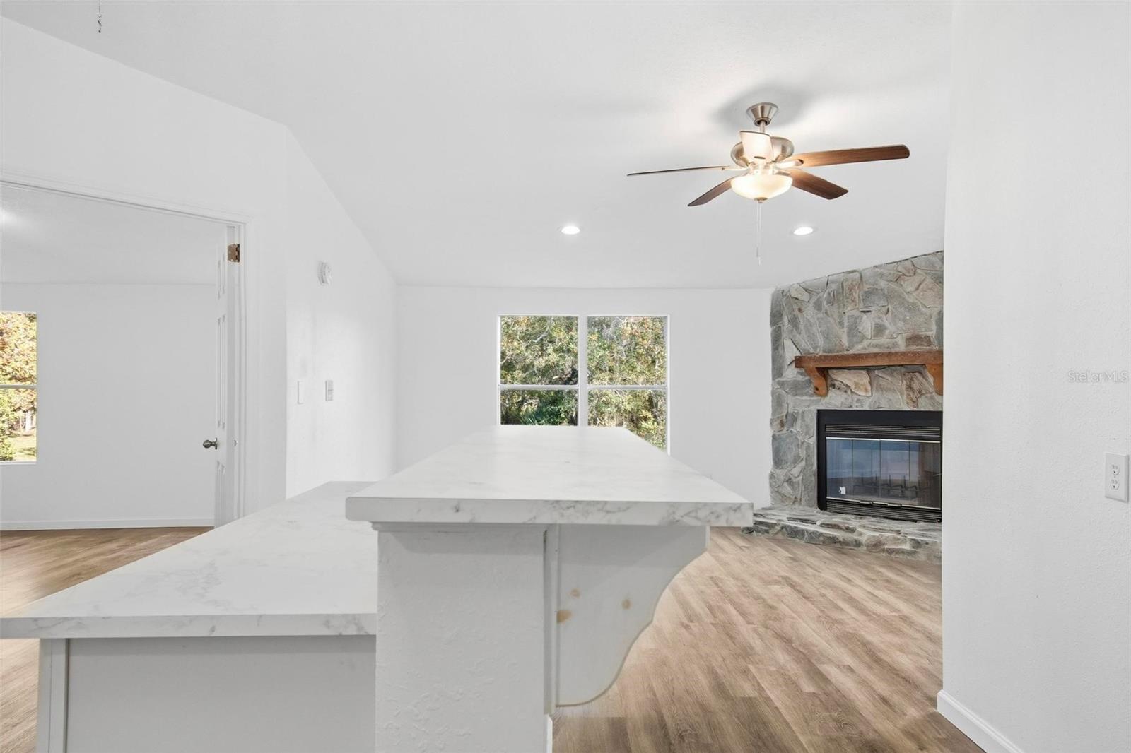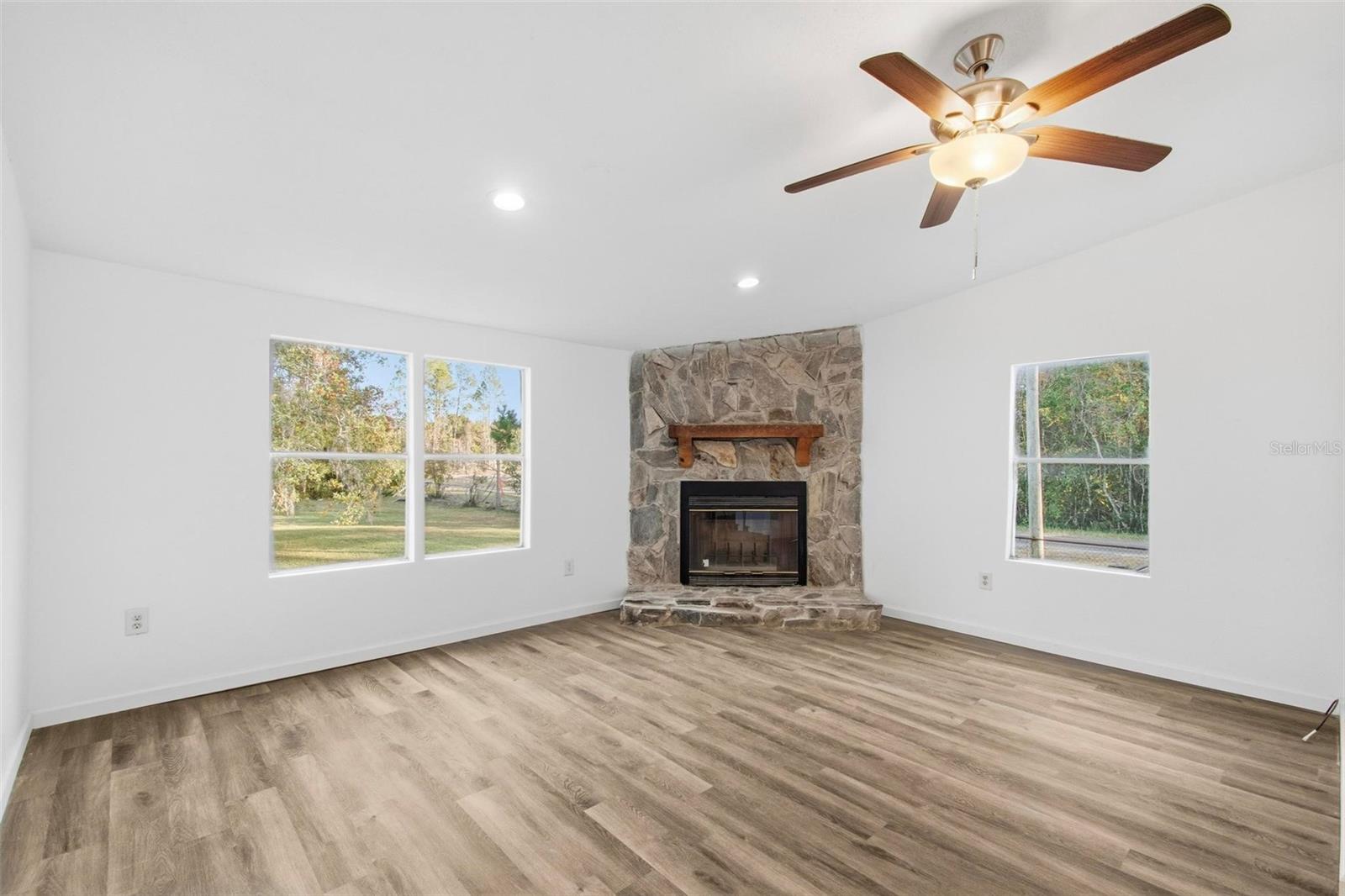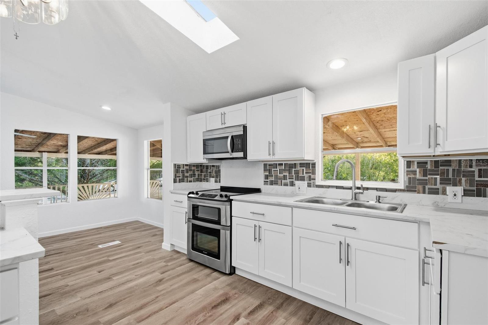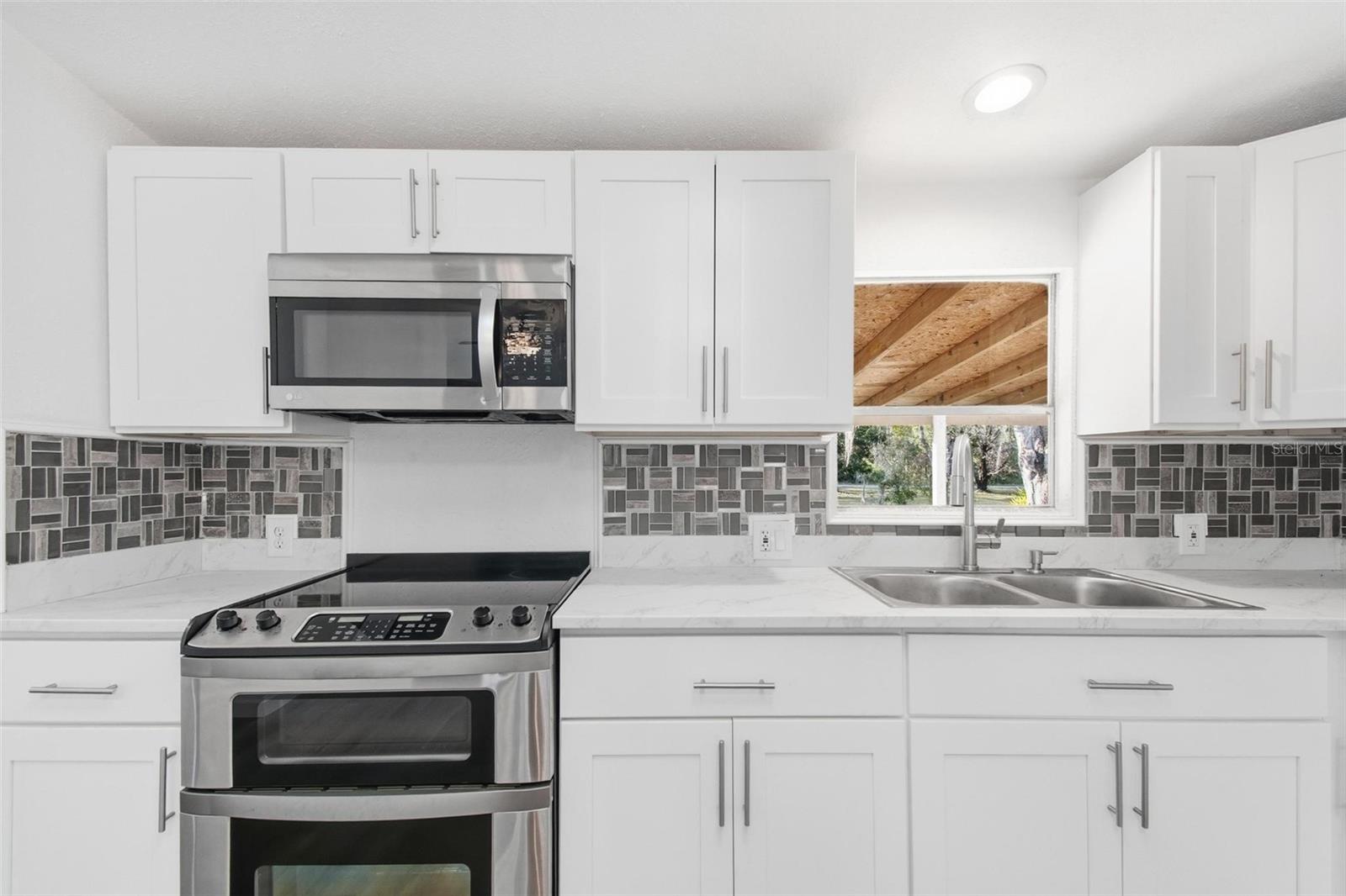 Escape to peace and privacy in this beautifully renovated Bunnell home, set on nearly 1 acre of lush natural landscape. Mature trees and native plants create a park-like setting that feels worlds away. Enjoy the outdoors year-round on the stunning wrap-around porch, perfect for morning coffee or evening relaxation. Step inside to a fully remodeled interior featuring new drywall, LED lighting, and vinyl plank flooring—an ideal backdrop for your personal style. The split floor plan offers a bright, spacious layout with abundant windows. The updated kitchen impresses with new stainless steel appliances, solid wood cabinets, a stylish tile backsplash, and a convenient center island. Just off the kitchen is a cozy living room with a wood-burning fireplace. Double doors lead to the generous primary suite, complete with a renovated bathroom featuring a soaking tub and walk-in shower. The guest bedroom includes its own private entrance, perfect for visitors or multi-use flexibility. Additional highlights include two backyard sheds, a new water heater, and a 2025 HVAC fan motor replacement. The home also passed a recent 4-point inspection, with the roof estimated to have 8–10 years of life remaining. Homes like this are rare—come make an offer before it's gone!