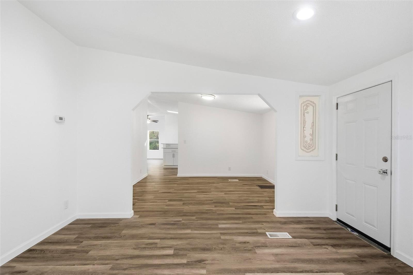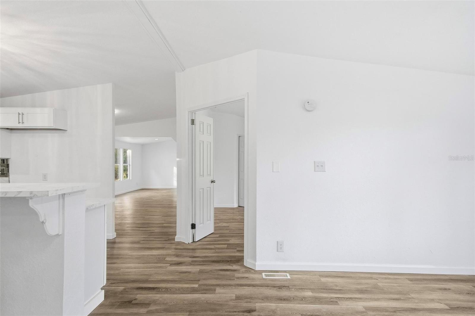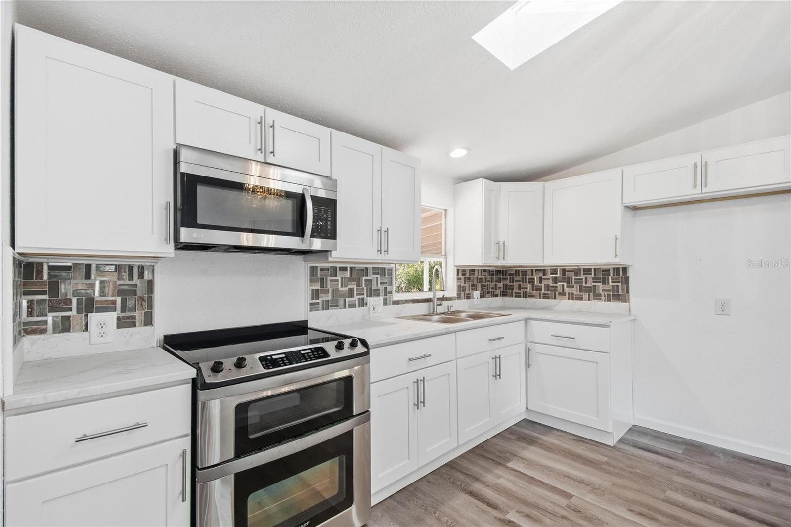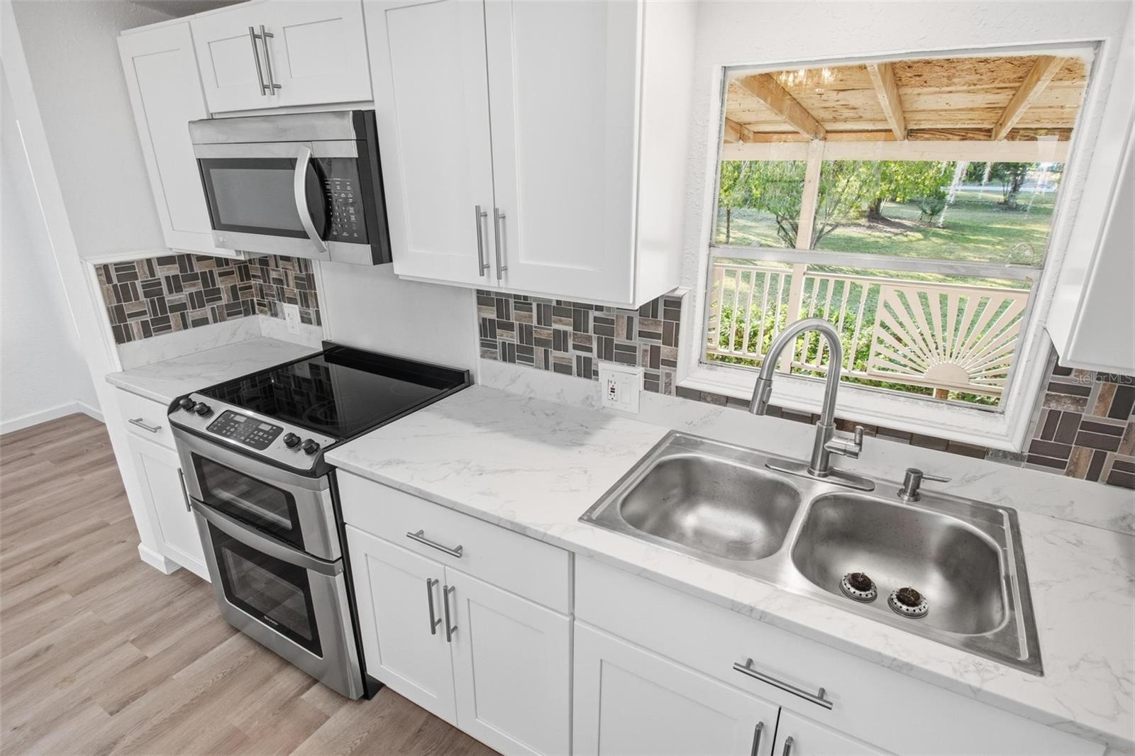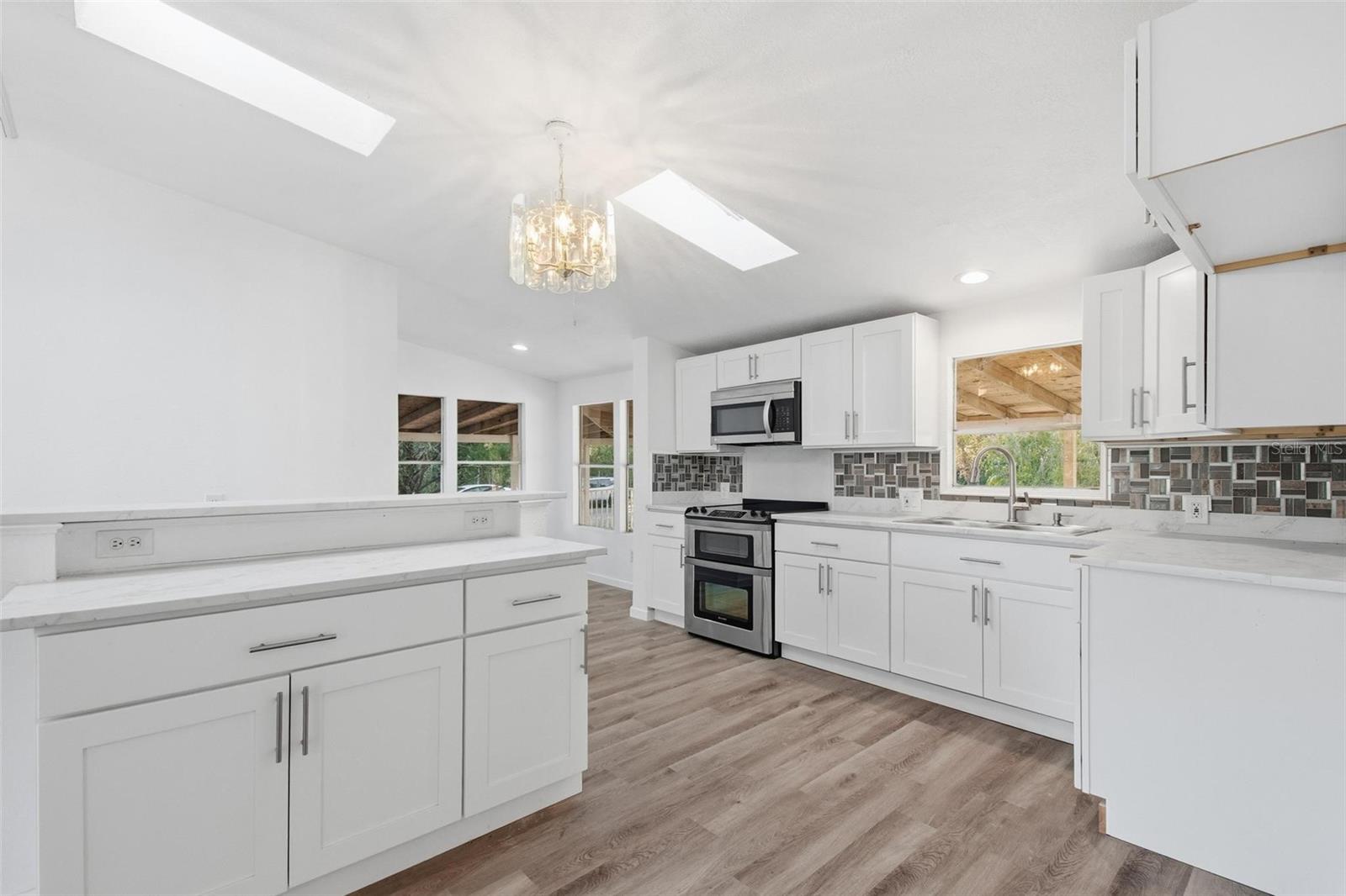 Escape to peace and privacy in this beautifully renovated Bunnell home, set on nearly 1 acre of lush natural landscape. Mature trees and native plants create a park-like setting that feels worlds away. Enjoy the outdoors year-round on the stunning wrap-around porch, perfect for morning coffee or evening relaxation. Step inside to a fully remodeled interior featuring new drywall, LED lighting, and vinyl plank flooring—an ideal backdrop for your personal style. The split floor plan offers a bright, spacious layout with abundant windows. The updated kitchen impresses with new stainless steel appliances, solid wood cabinets, a stylish tile backsplash, and a convenient center island. Just off the kitchen is a cozy living room with a wood-burning fireplace. Double doors lead to the generous primary suite, complete with a renovated bathroom featuring a soaking tub and walk-in shower. The guest bedroom includes its own private entrance, perfect for visitors or multi-use flexibility. Additional highlights include two backyard sheds, a new water heater, and a 2025 HVAC fan motor replacement. The home also passed a recent 4-point inspection, with the roof estimated to have 8–10 years of life remaining. Homes like this are rare—come make an offer before it's gone!