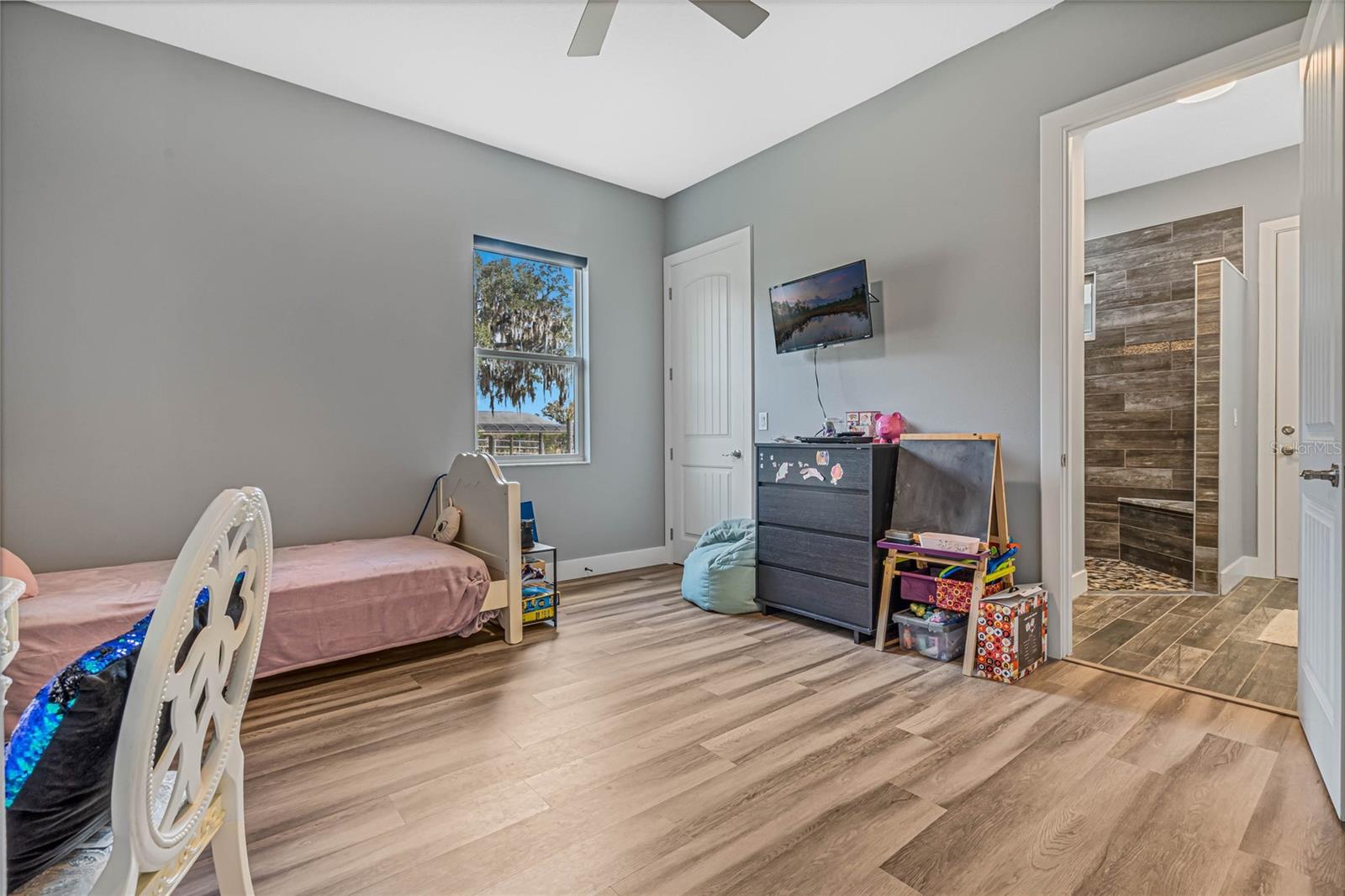 Exquisite Country Estate with Luxury Living: Acreage, Elegance, and Comfort! Nestled on 4.88 acres of picturesque land, this stunning property offers a perfect blend of modern luxury and country charm. As you enter through the fenced and cross-fenced surroundings, the beautiful landscape welcomes you to a world of tranquility and sophistication. Key Features: Size: 4.88 acres of expansive and well-maintained grounds, perfect for livestock enthusiasts. Energy Efficiency: Icylene spray foam insulation graces the block walls and roof, ensuring year-round comfort. Endless Comfort: Enjoy an on-demand hot water system and a complete water treatment system for ultimate convenience. Structural Delights: A 30x48 pole barn, oversized 3-car garage, and a durable metal roof showcase the property's durability and functionality. Interior Elegance: Granite adorns every surface, from countertops to the luxurious master bedroom tray ceiling. Masterful Retreat: A large master bedroom with his and her closets and a custom walk-around shower with dual shower heads, a wand, and a rain option provide a spa-like escape. Modern Amenities: All-new appliances from 2021, most Bluetooth-compatible, add a touch of contemporary convenience. Entertainment Oasis: A 45x15 screened-in back porch with a custom entertainment center featuring an electric fireplace provides the perfect setting for gatherings. Work from Home: A spacious office/den caters to those seeking a private workspace. Bedrooms & Bathrooms: Three generously-sized bedrooms, sharing a Jack and Jill bathroom for convenience. An additional bathroom for the fourth bedroom and guests, ensuring privacy and comfort. Tasteful tile and wood laminate flooring throughout the home. Outdoor Living: Immerse yourself in nature with a paverstone fire pit in the backyard, creating an ideal space for evening gatherings. An asphalt driveway and attic storage over the garage add practicality to the property. Total Comfort, Total Space: Boasting 3,395 square feet of living area and a grand total of 5,261 square feet under roof, this home provides ample space for all your needs. This is more than a home; it's a lifestyle! Schedule your private tour and experience the unparalleled luxury and tranquility that this property offers. Welcome to your dream estate! Bedroom Closet Type: Walk-in Closet (Primary Bedroom).