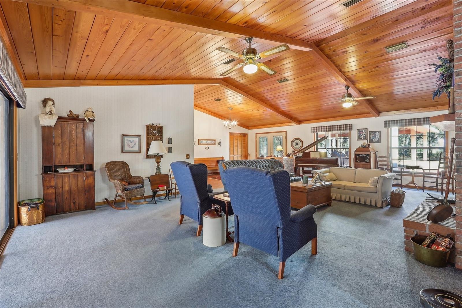 It is a rare treat to find a custom built Robert Hogan Construction home available for sale. They are passed on through generations and not often available on the open market, but 2025 is smiling on you. Here is your opportunity to secure this incredible home built by a great man, and yes in our book it checks all the boxes. When we say the bones are good, we really mean it. Built in 1991, the home could use some cosmetic upgrades but the traditional ranch style inspired home begs for you to not make it too contemporary. Farmhouse chic would be perfect here! Situated on a beautiful 17.5 acres. Pasture up front on the north side for your farm animal friends, and homesteading dreams, and the privacy of living amongst the trees on the south side of the property. All of the mechanical components are either new or in great working order. The seller says the roof was replaced in 2013 as per the insurance company. HVACS replaced in 2024. Water heaters were replaced in 2024. Brand new water softener and iron filtration system in 2024. Recent 4 point inspection completed November 2024. Both septic tanks were pumped and one new drain field 2024. The absolutely “oh my moment” that is the patio and pool area was recently refreshed with new landscaping, new pool coating, and new pool tile. A true split plan, which back in 1991 was not common, this house is huge but yet somehow cozy. This floor plan is one of the best we have seen. The entrance is stunning with a double door entry, traditional tile landing that is in phenomenal condition and vaulted, original, tongue and groove ceilings that still shine like new, complimented by a gorgeous brick, wood burning fireplace, and brick built-ins. We have never seen a wall of sliders on a home built in 1991, but this home has not just one but two, double sliders with a remarkable view of the patio. The kitchen will “wow” you too. It’s big. Cabinets and counter space for days. Center island with more cabinets. Brand new Samsung appliances December 2024. A large pass through window into the game room, and a walk-in pantry to store the extra snacks. The game/family room is over 700 sqft. Game night, movie night, holiday celebrations, you name it this room was built for it. Off of the game room is another “mini” house or in-law suite. It features its own entrance, living room, bedroom, bathroom, and a room that could serve as a kitchenette….all under the same roof. Technically a 4 bedroom 4 bathroom home OR a 3 bedroom 3 bathroom home with a 1 bedroom 1 bathroom guest suite. Brand new Maytag washer and dryer in the laundry room/craft room. There are plenty of closets and lots of storage space but if you need more, there is not one barn on-site but two. It is a true pleasure to get to showcase this home for sale and we cannot wait to show it to you. If you think the pictures look great just wait till you see it in person. Conveniently located on the north side of Bushnell with easy access to The Villages, the Florida Turnpike, and Interstate 75. Only 1 hour from Orlando International Airport, Walt Disney World, Tampa International Airport, the World and Equestrian Center. Very easy to show, but by appointment only. Please do not go onsite without an appointment and your Realtor. You cannot see the house from the road and the gate is locked. We don’t want you to waste a trip. Don’t take our word for it, we are most definitely biased. We think it’s an amazing home, come see for yourself.