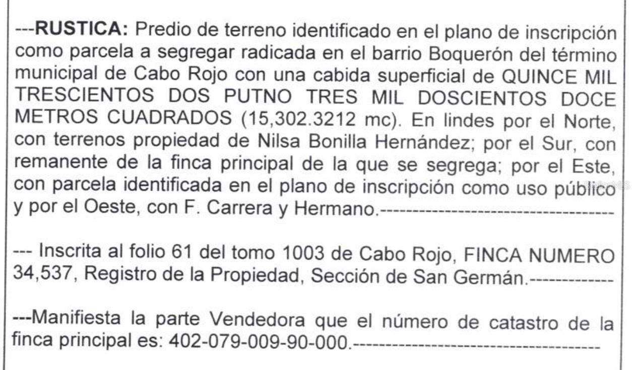 Strategic Location near Boquerón & Combate Beaches | Almost 4 Acres for the Price of 3 | Zoned RG (Rustic General) Unique opportunity to own approximately 15,302.32 square meters (3.78 acres) of land in one of the most desirable tourism corridors of Cabo Rojo, Puerto Rico. This parcel, located at SR-3301 Km 1.0 Interior in Boquerón (Tax ID: 402-079-009-90-000), offers direct access to both nature and development potential. GPS Coordinates: 17.9732859, -67.19461405. The property is situated just minutes from iconic beaches such as Boquerón Beach, Combate Beach, Buyé, Playuela, and the breathtaking cliffs at the Cabo Rojo Lighthouse. It is also close to Las Salinas, La Bahía Sucia, Villa La Mela, and the eco-tourism zone of La Pitahaya. In addition, it's just steps from the upcoming Esencia Project, which includes luxury eco-villas and a new beachfront hotel along Los Pozos Beach. The lot is classified as RG (Rustic General), suitable for residential tourism or sustainable eco-development under local zoning. While a portion of the land is environmentally protected, the price has been adjusted accordingly—offering 3 developable acres at $450,000 each parcel, totaling $1,350,000. Whether you're planning an eco-villa retreat, a residential development, or a long-term investment in Puerto Rico’s west coast, this property is a rare chance to be part of a growing, high-demand destination. Buyer must verify all permits, zoning uses, and floodplain considerations. Proof of funds or pre-qualification letter required for showings.