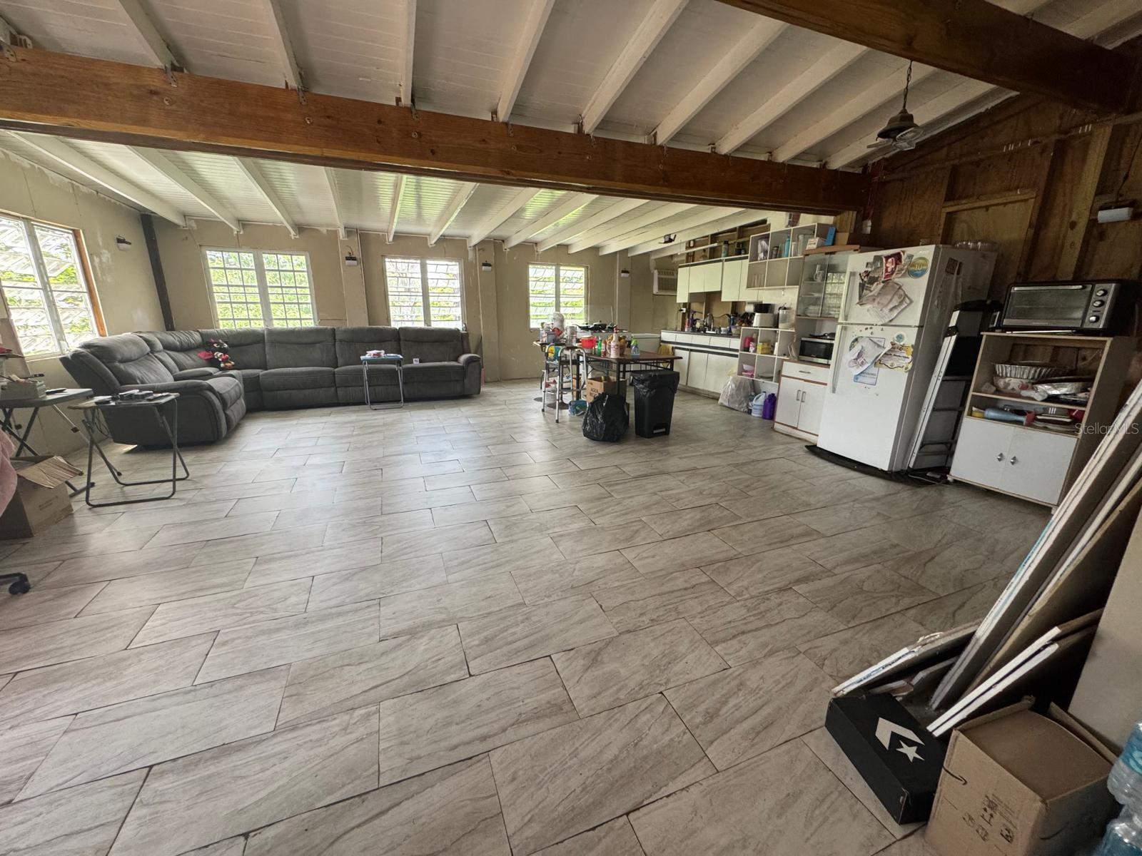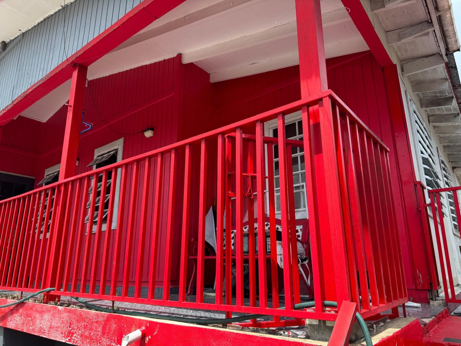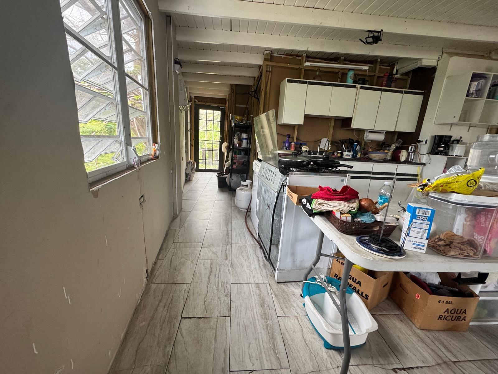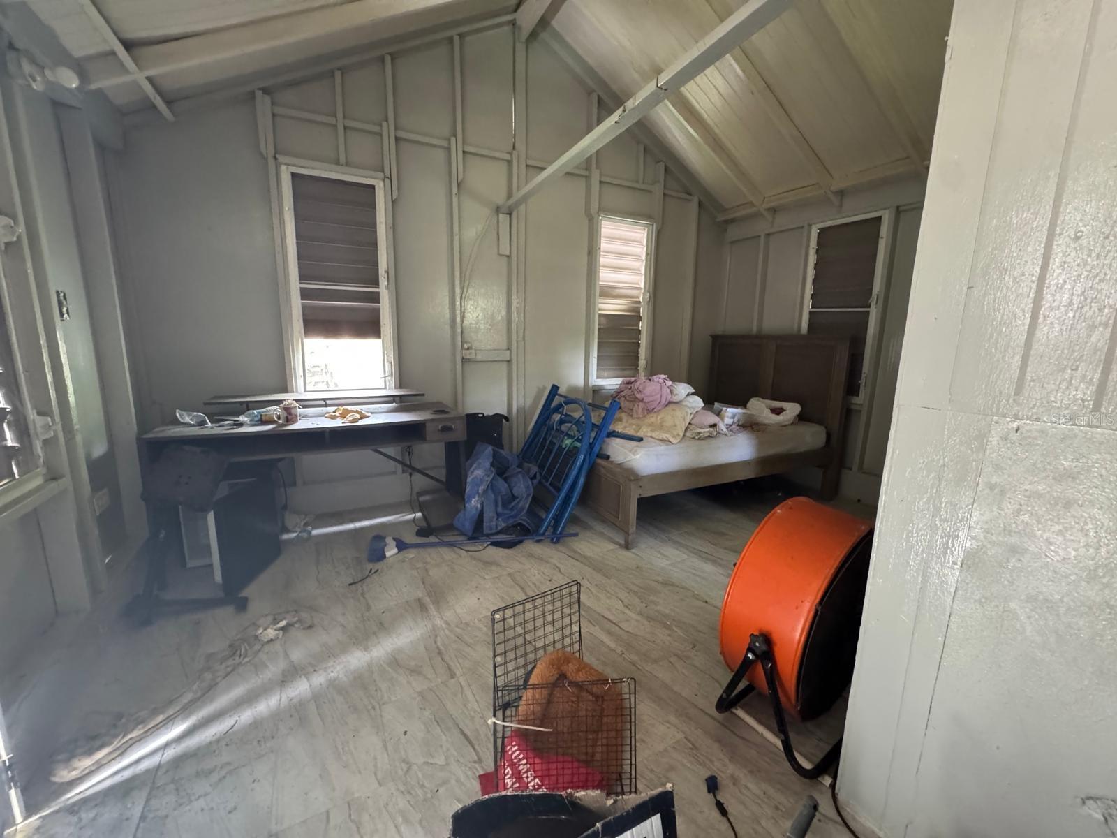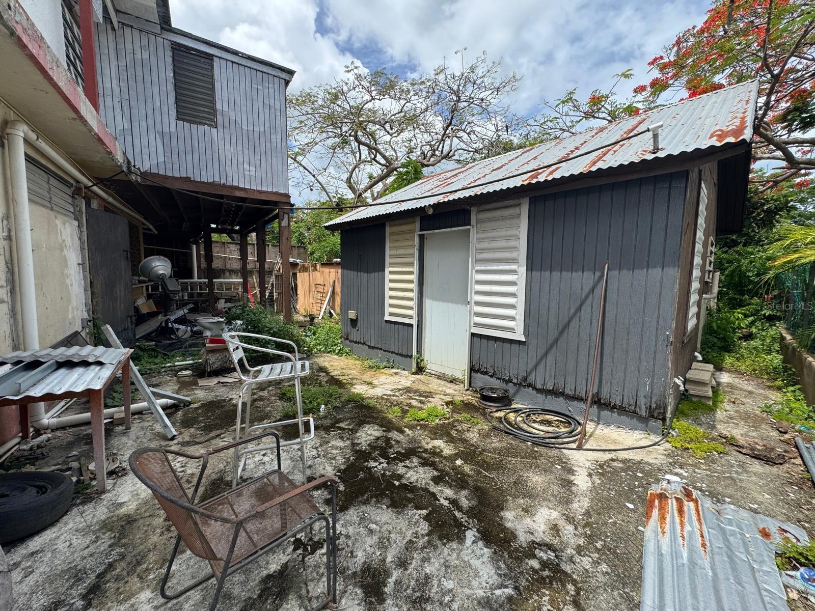 Two-story residence with 3 bedrooms, 1 bathroom, living room, dining room, and kitchen on the first floor; 4 bedrooms, living room, dining room, kitchen, and 2 bathrooms on the second floor. It also includes a studio with a bathroom in the backyard. Seven window air conditioning units and six ceiling fans are included. In addition to four covered parking spaces, there is room for 2 or 3 extra cars in the yard. Each floor has its own water and electric meter; the studio in the backyard receives water and electricity from the second floor.