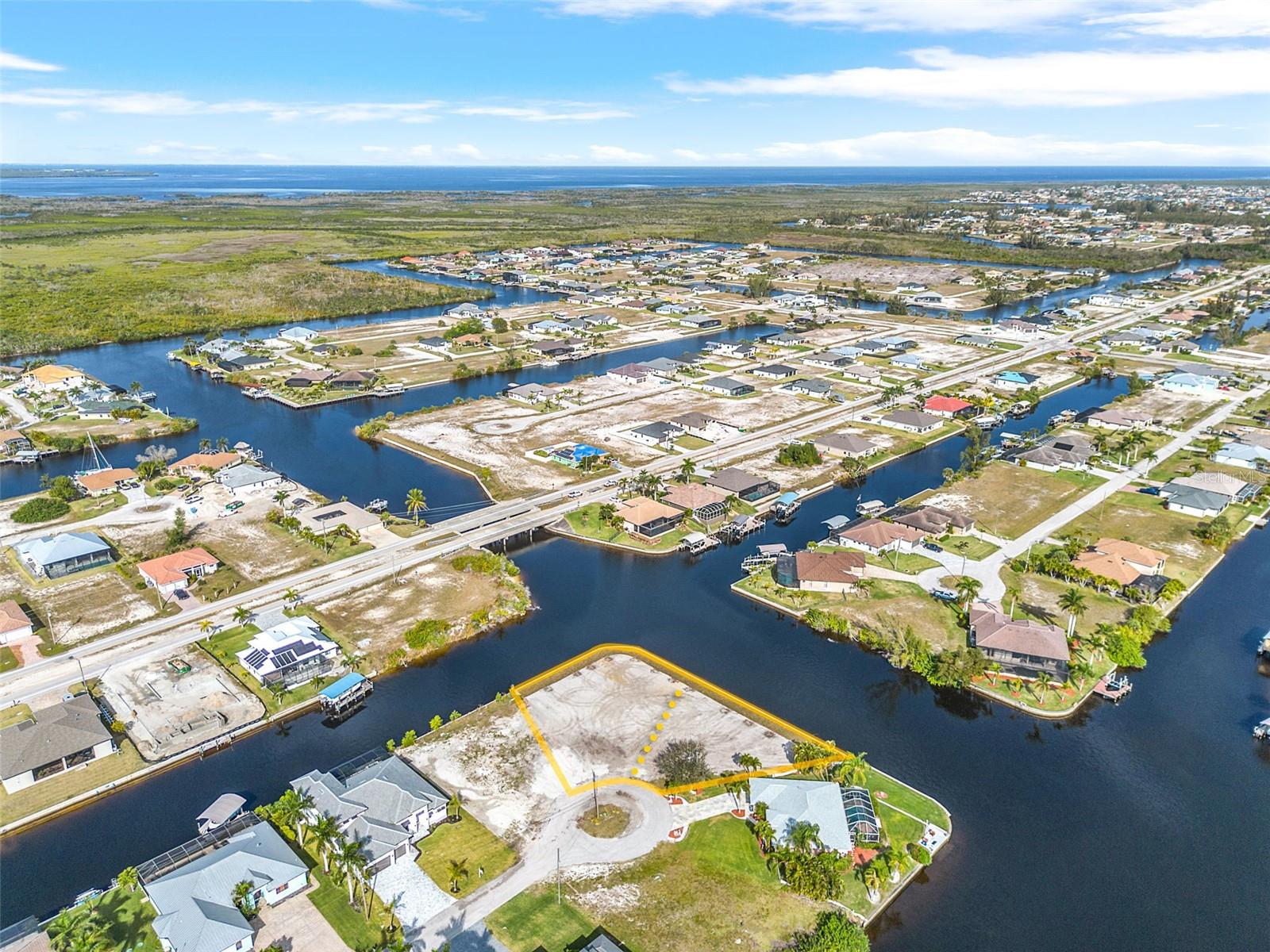Welcome to your waterfront sanctuary! Nestled on a .55-acre tip lot with an expansive 24,096 square feet of space, this saltwater gulf access double lot offers a rare opportunity to indulge in waterfront living at its finest. Boasting an impressive 348 feet of water frontage, this property provides ample room for your aquatic pursuits while offering stunning views of multiple intersecting canals. Positioned at the end of a serene cul-de-sac, this parcel has been thoughtfully prepared for your enjoyment, with meticulous backfilling, grading, and the addition of fresh sod to create a lush, inviting landscape. A brand-new seawall ensures the utmost in security and durability, safeguarding your investment for years to come. With just one bridge separating you from open waters, the world is your oyster. Install up to two docks to accommodate your vessels, whether you're angling for the catch of the day, gliding through the canals on a kayak, or embarking on a leisurely boat ride from your very own backyard. Beyond the bounds of your personal oasis lies the exciting prospect of the Seven Islands Development, a burgeoning waterfront community that promises an array of amenities just moments from your doorstep. From a marina and hotel to boardwalks, restaurants, and a condo complex, the possibilities for entertainment and relaxation are endless. Convenient access to Old Burnt Store Road ensures seamless connectivity to nearby conveniences and attractions, allowing you to effortlessly explore all that this vibrant area has to offer. Don't miss your chance to secure your slice of paradise in this sought-after locale, where everyday living feels like a perpetual vacation.