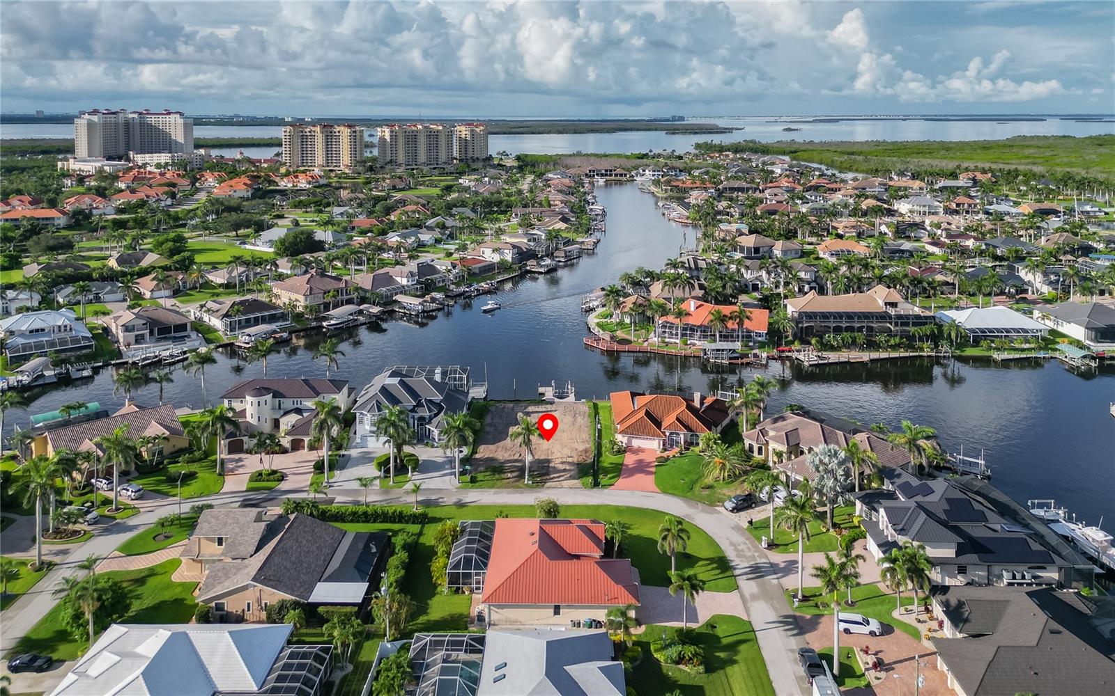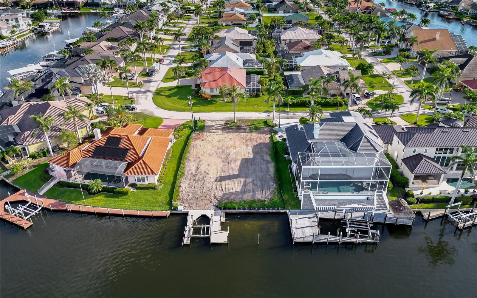 BUILD YOUR NEW CUSTON DREAM HOME ON THIS LUXURY WATER FRONT LOT WITH INTERSECTING CANALS. DIRECT SAIL BOAT ACCESS JUST MINUTES TO THE GULF. LARGE BOAT DOCK WITH A 12,000 POUND LIFT HAS WATER & ELECTRIC HOOK UP. SOUTHERN REAR EXPOSURE. PRISTINE NEIGHBORHOOD WITH ROYAL PALMS THAT LINE THE STREET. FANTASTIC LOCATION - CLOSE TO CAPE HARBOUR. LIVE ENTERTAINMENT, SEVERAL FINE DINING RESTAURANTS, SHOPPING AND SO MUCH MORE. THIS LOT + THIS LOCATION + INTERSECTING CANALS DO NOT COME ON THE MARKET TOO OFTEN.