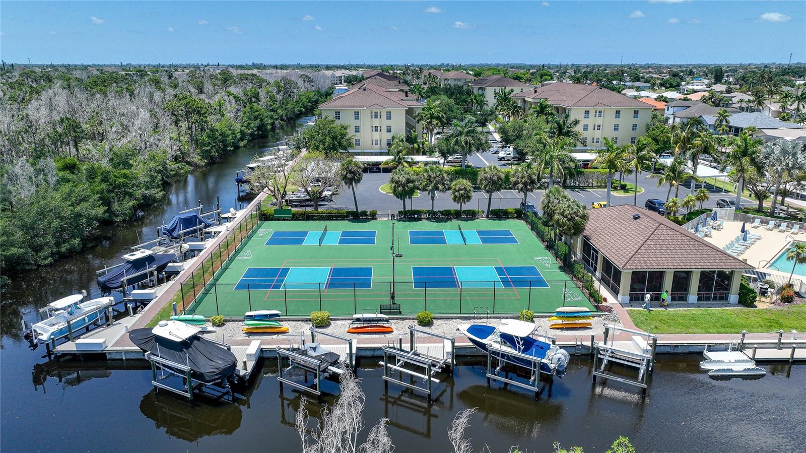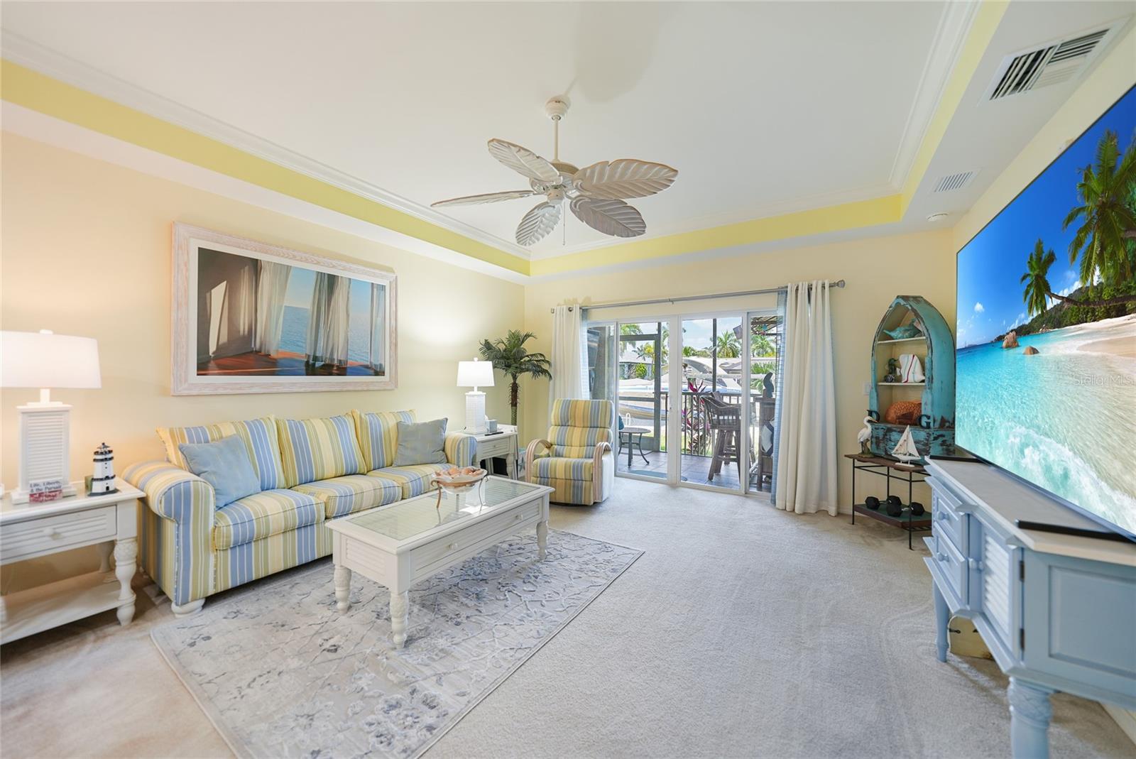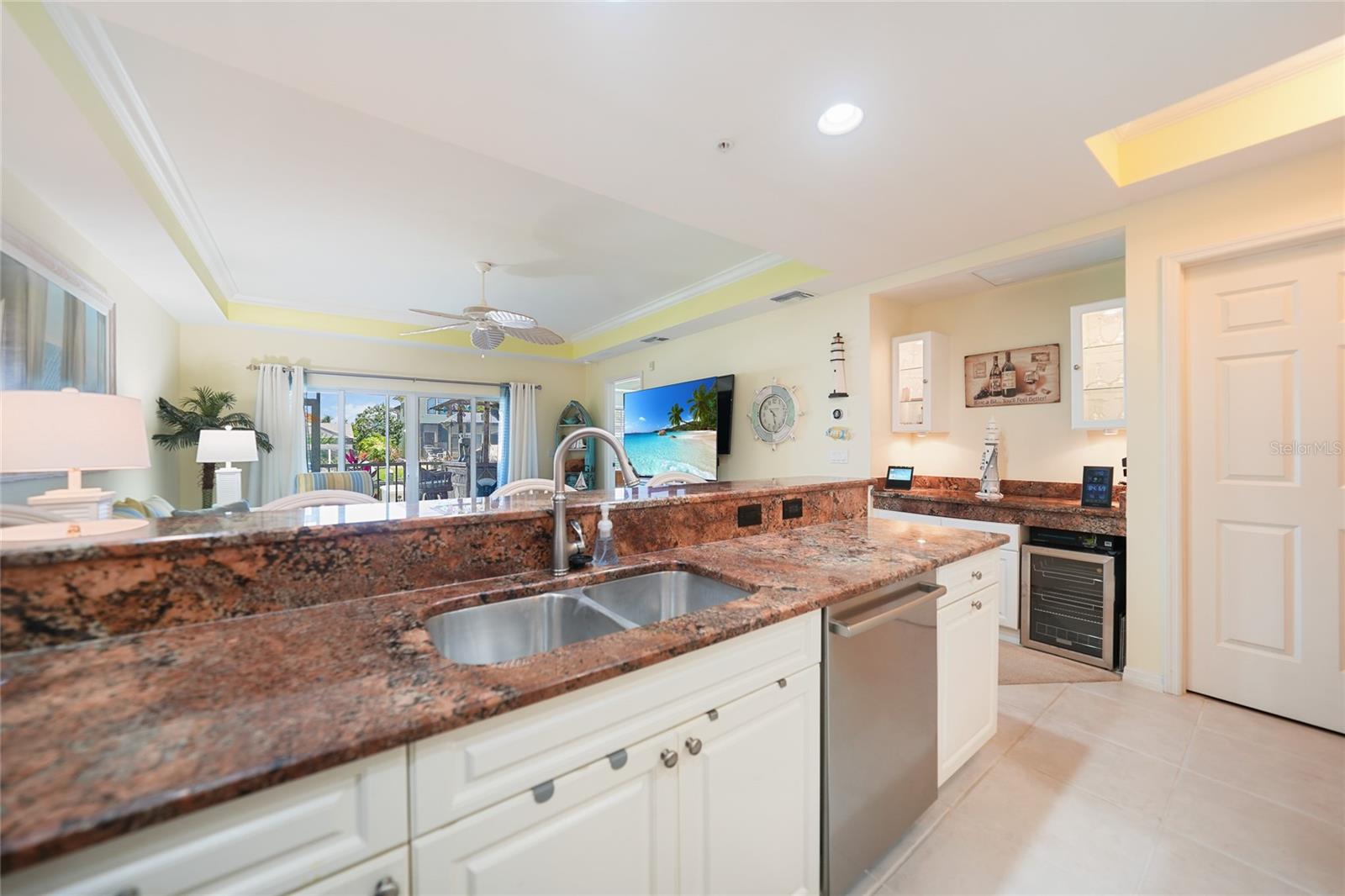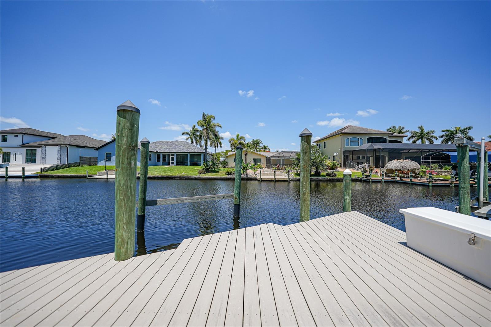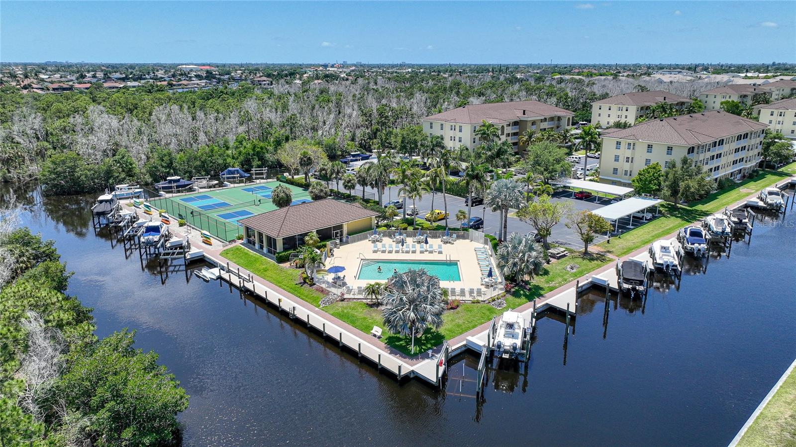 Calling all boaters! Location, location, location! 3 bed/2 bath luxury first floor furnished condo within a gated community in a pristine location next to the pool, clubhouse/tennis courts. This condo has quick access (7 minute) to the river with no bridges! This location boasts of saltwater sailboat access canal with an assigned 35' BOAT SLIP ($175 yr) and dock with storage box just steps from your lanai! To top it off a new A/C was installed in 2023 and newer water heater! This magnificent condo has a great-room floor plan with spacious eat-in kitchen with appealing granite throughout, pantry, and custom wine bar and newer stainless-steel appliances! The interior is complimented with tray ceilings and crown molding. The master bedroom leads out to the lanai and overlooks the canal and beautiful homes. The master bathroom has dual sinks and an oversized walk-in shower. The guest bathroom has a tub/shower. All windows and doors are hurricane impact. This is a pet-friendly community with barbecue grills for your enjoyment. Stroll around the complex and enjoy this beautifully maintained grounds with lush tropical landscaping. Relax by the heated pool/spa or the socialize at the screened in clubhouse. Enjoy a game of pickleball, shuffleboard or tennis. Close to restaurants, shopping and all the great amenities that Cape Coral has to offer.