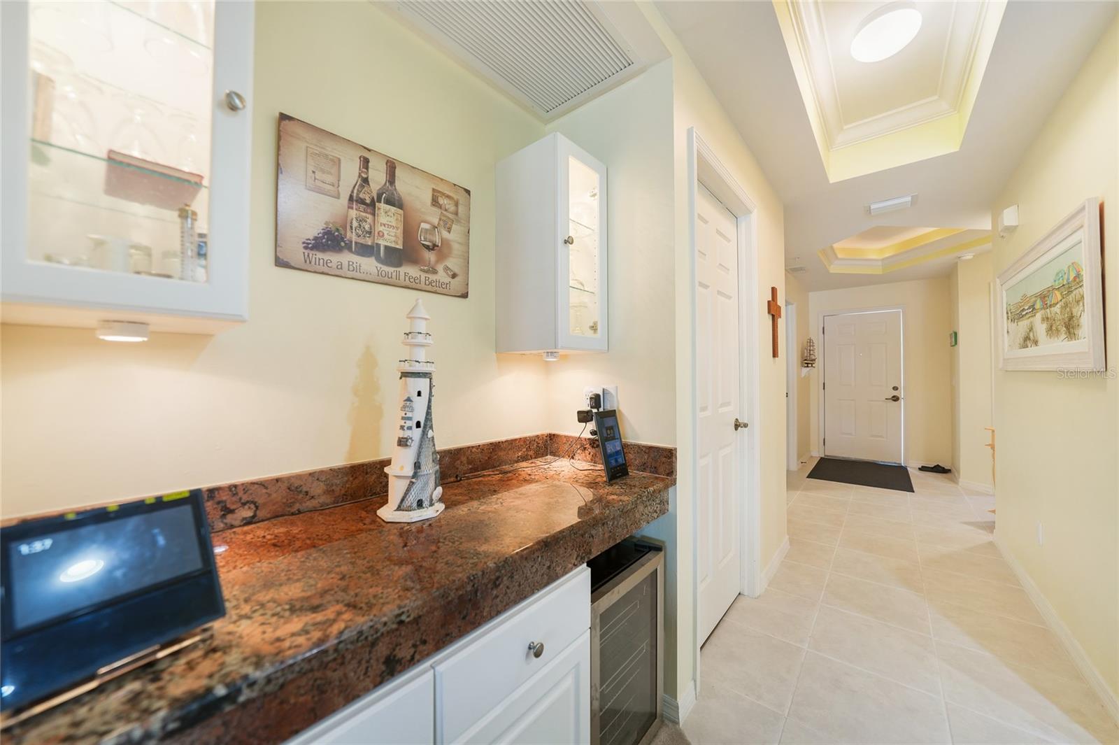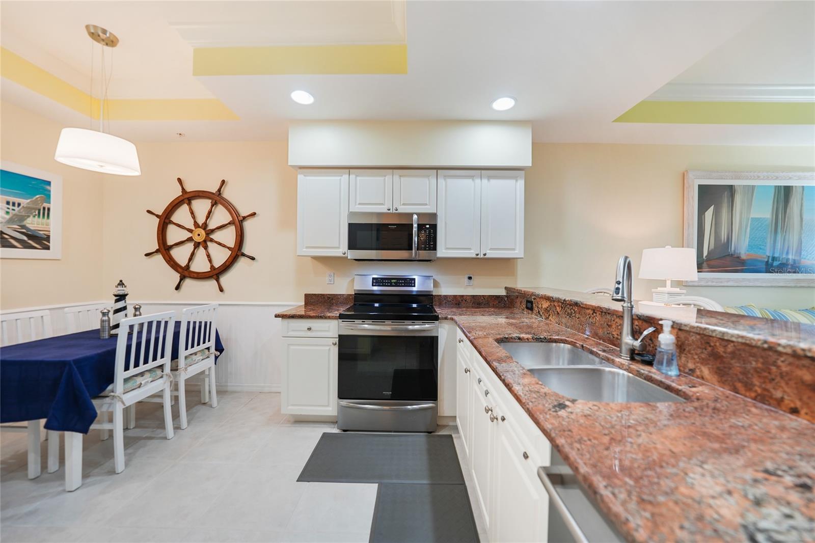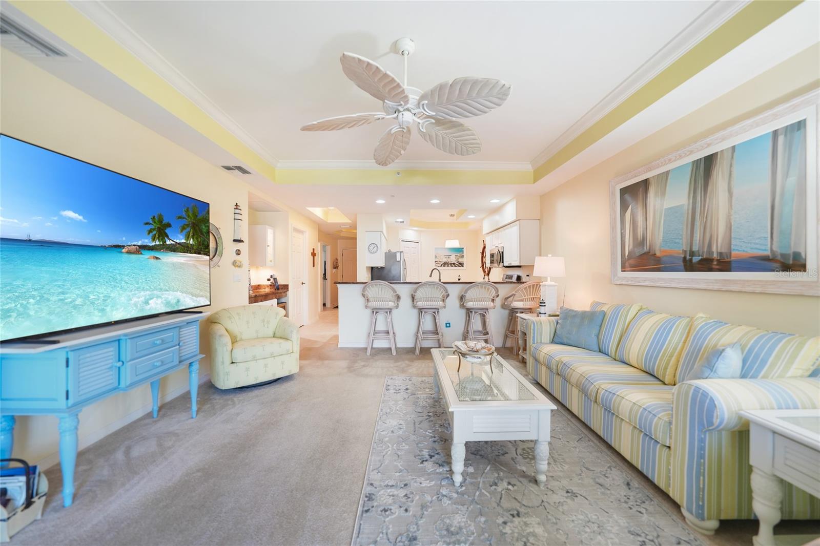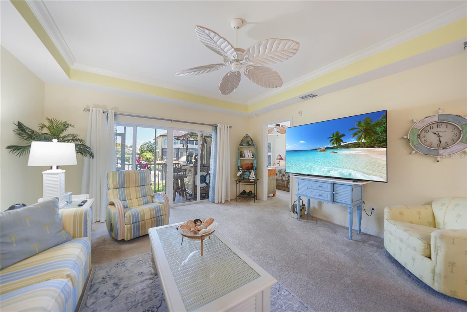 Calling all boaters! Location, location, location! 3 bed/2 bath luxury first floor furnished condo within a gated community in a pristine location next to the pool, clubhouse/tennis courts. This condo has quick access (7 minute) to the river with no bridges! This location boasts of saltwater sailboat access canal with an assigned 35' BOAT SLIP ($175 yr) and dock with storage box just steps from your lanai! To top it off a new A/C was installed in 2023 and newer water heater! This magnificent condo has a great-room floor plan with spacious eat-in kitchen with appealing granite throughout, pantry, and custom wine bar and newer stainless-steel appliances! The interior is complimented with tray ceilings and crown molding. The master bedroom leads out to the lanai and overlooks the canal and beautiful homes. The master bathroom has dual sinks and an oversized walk-in shower. The guest bathroom has a tub/shower. All windows and doors are hurricane impact. This is a pet-friendly community with barbecue grills for your enjoyment. Stroll around the complex and enjoy this beautifully maintained grounds with lush tropical landscaping. Relax by the heated pool/spa or the socialize at the screened in clubhouse. Enjoy a game of pickleball, shuffleboard or tennis. Close to restaurants, shopping and all the great amenities that Cape Coral has to offer.