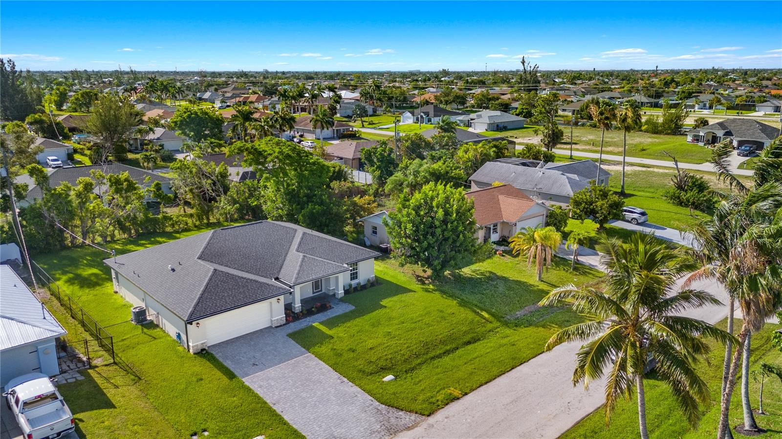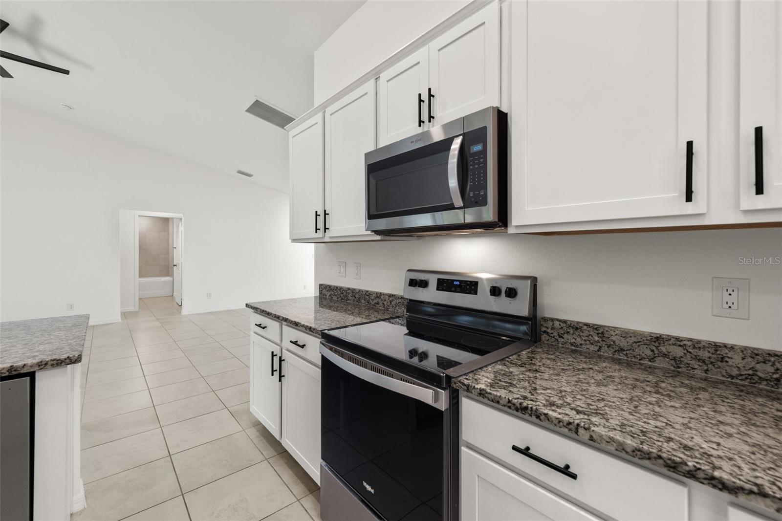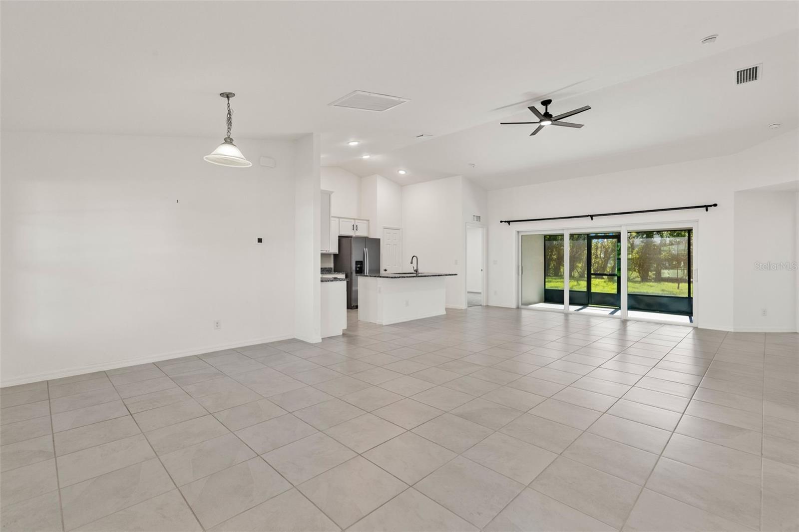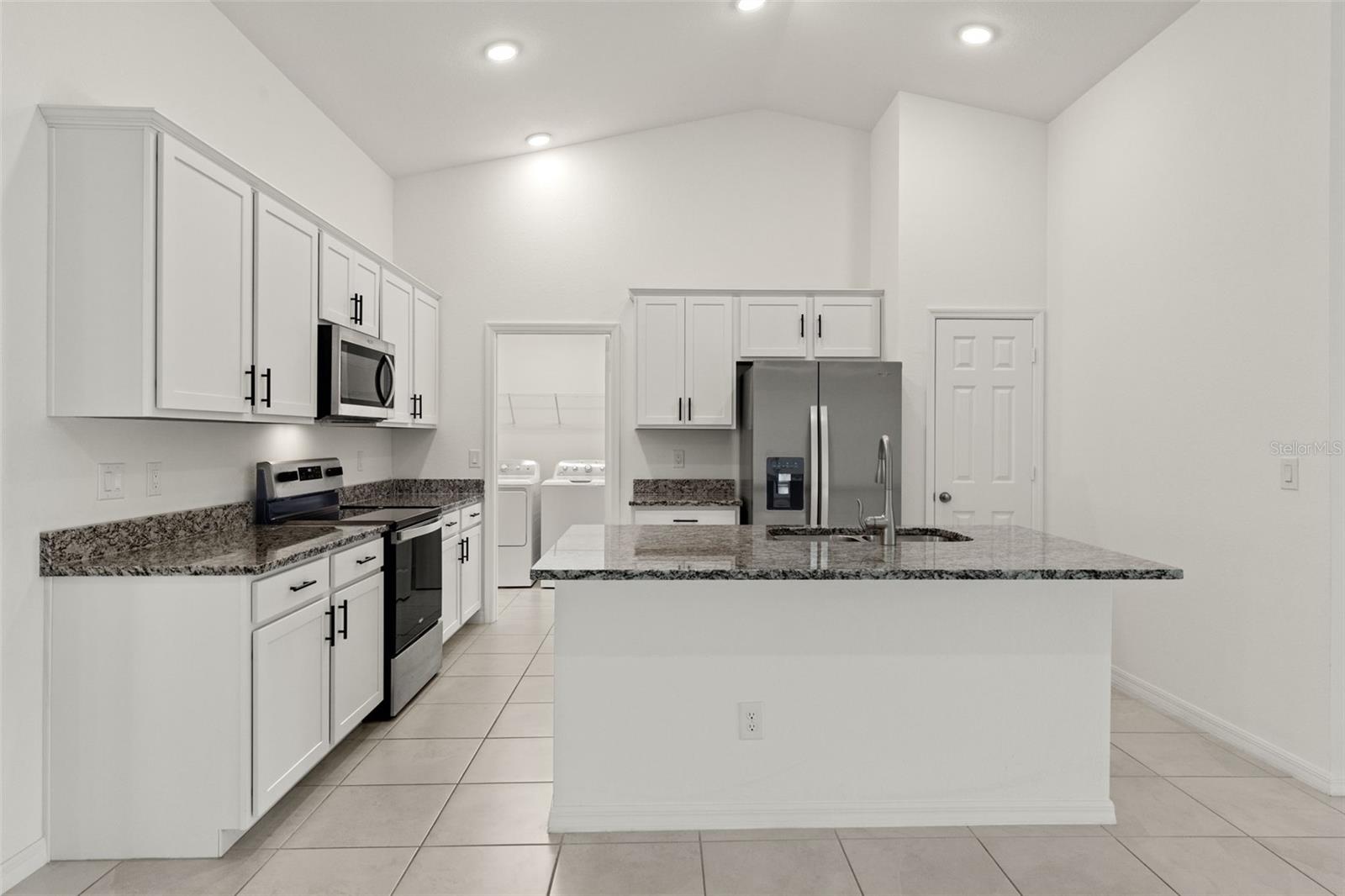 Spacious living areas with soaring vaulted ceilings and an open floor plan, including a centrally located island kitchen. Step out from the large living room onto the well enjoyed covered & screened lanai, perfect for embracing the vibrant Southwest Florida lifestyle. This home boasts top-notch features such as durable concrete block construction, and a high-efficiency AC system. Enjoy the luxury of Moen plumbing fixtures, sleek dimensional shingles, and PGT Impact Resistant Low E Insulated windows throughout. The kitchen impresses with 36” upper cabinets featuring soft close doors, complemented by elegant granite countertops in both the kitchen and bathrooms. A stainless steel appliance package adds a modern touch, while colonial style raised panel doors and an electric garage door opener enhance convenience. Revel in tile flooring in the main living areas and stone accents on the front elevation. Plus, practical additions like an irrigation system, epoxy coated garage floors, and an upgraded paver driveway complete this exquisite home.