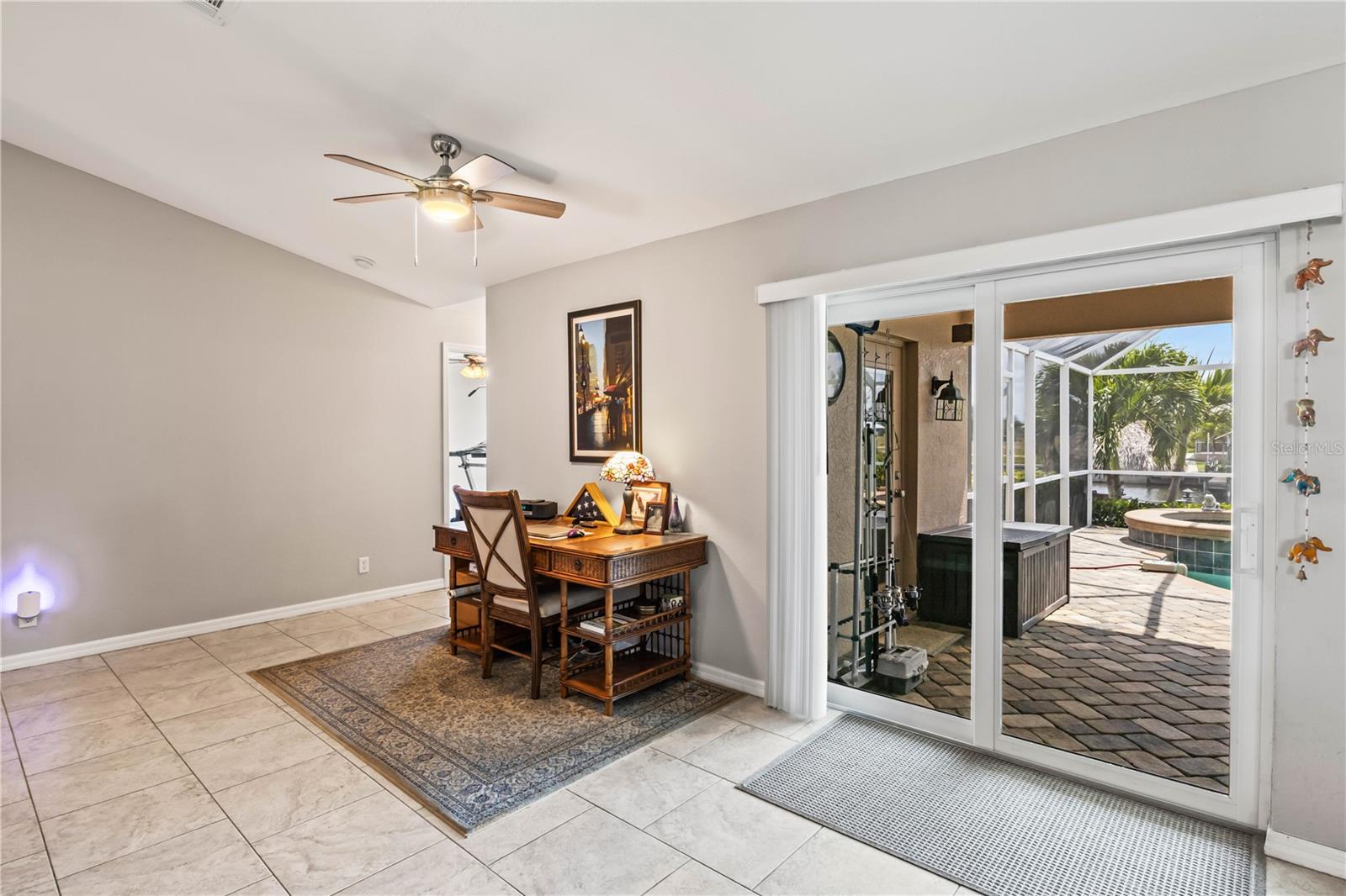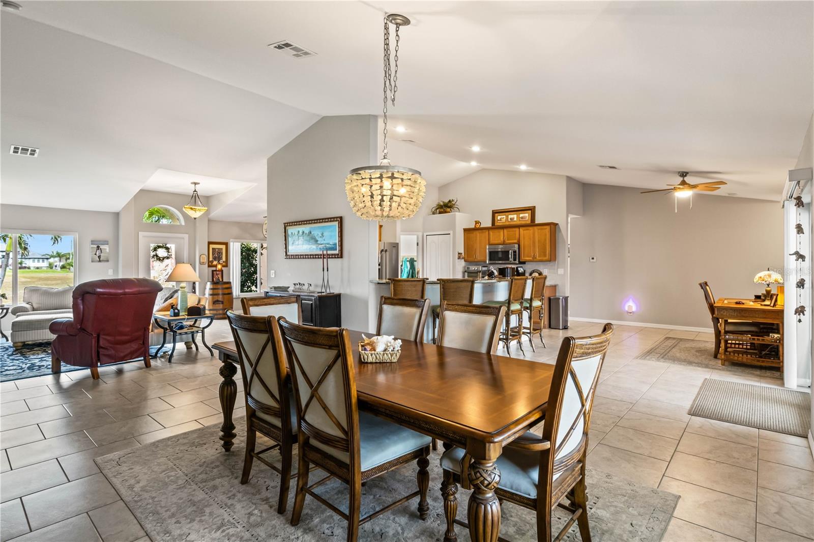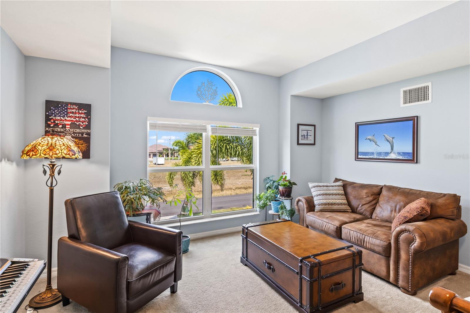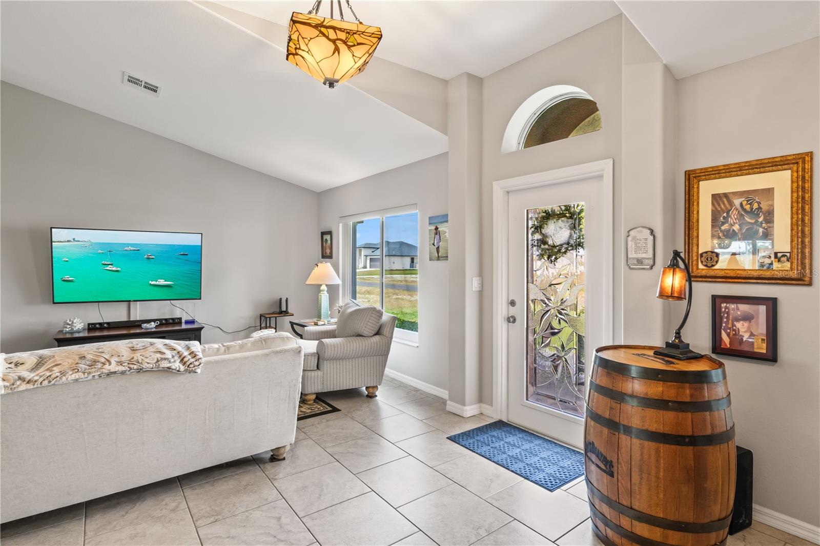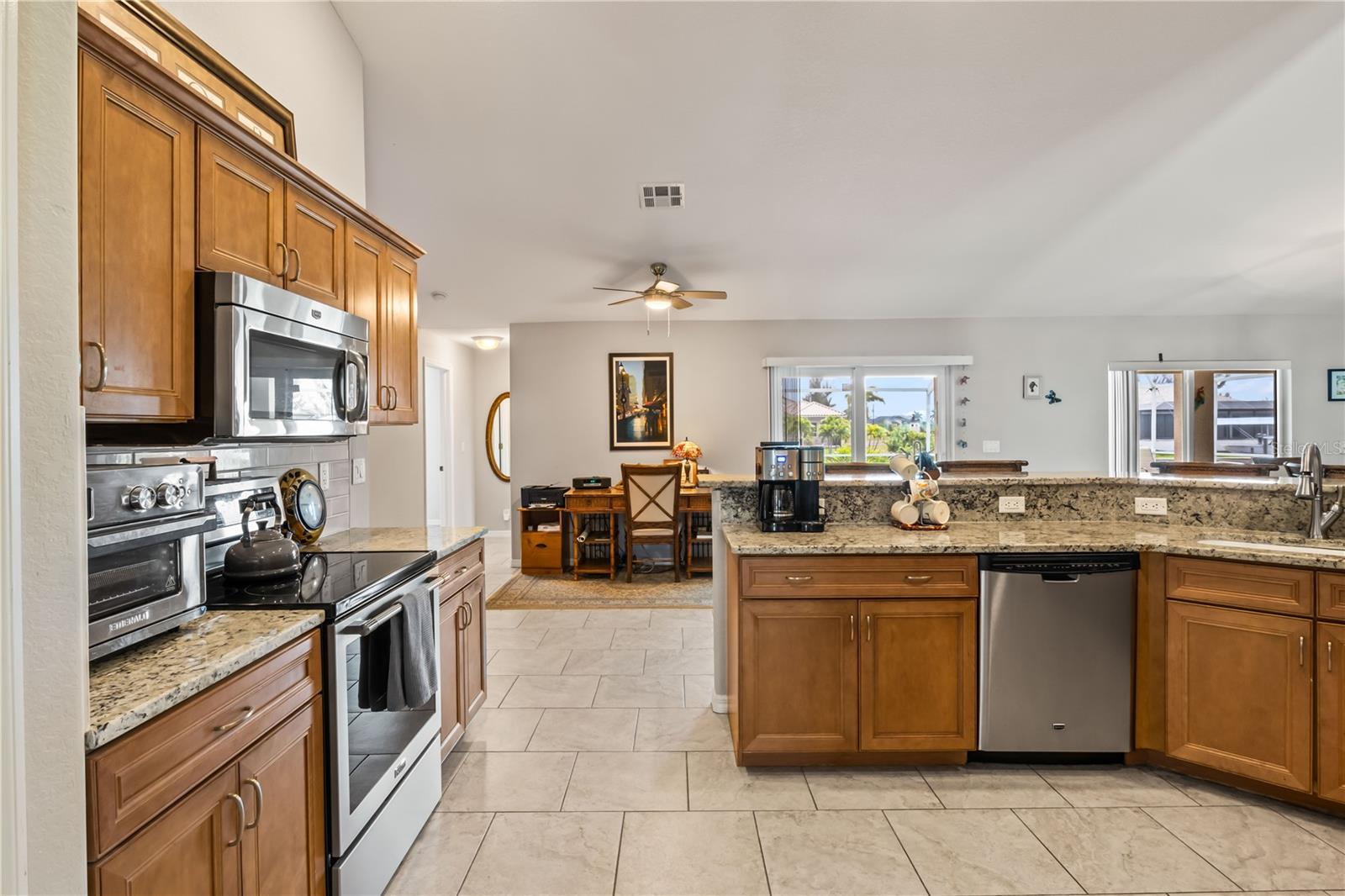 NO FLOODING from Hurricane! An incredible opportunity to own a SPECTACULAR waterfront property with intersecting canal views and directly off the spreader canal! WIDE OPEN waters for sailboat access and endless views of incredible sunrises and sunsets! This is a very active canal loaded with fish, dolphins, manatees and more! The home itself is also beautiful both inside and out - a very spacious floor plan with a bonus additional master bedroom suite upstairs that could also easily be a second family room/game room or multiple other uses! The owners have taken meticulous care of the property and upgraded the roof, solar system, reverse osmosis throughout the entire home, new ac and more! The downstairs has staggered neutral tile that compliments the light grey paint. So many details everywhere - custom front door welcomes you and floods the home with natural light. The main level is both flexible and functional - soaring vaulted ceilings, lots of windows, a split master bedroom suite with spa like master bath with double vanities, a garden tub and separate shower. There are 3 additional bedrooms downstairs and a large custom kitchen with upgraded appliances, granite counter tops and tons of counter and storage space. And then there is the outdoor RESORT area - Triple covered patio to enjoy the shade and a large area with swimming pool and spa and plenty of space to add an outdoor kitchen. Best of all is the tiki hut with views of the intersecting canal and a birds eye view for sunrises and sunsets. Plenty of room for a large boatlift and easy access with NO BRIDGES out to the water. This home checks all the boxes for a perfect vacation rental and is located on a quiet culdesac lot in the booming Northwest corridor! FLOOD is transferrable and UNDER $700 A YEAR!!!