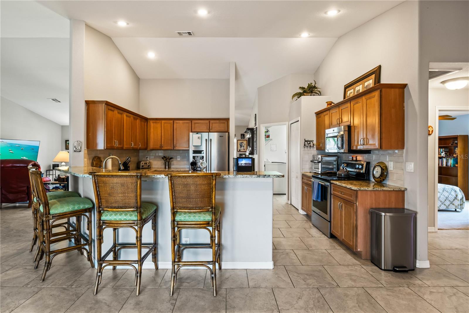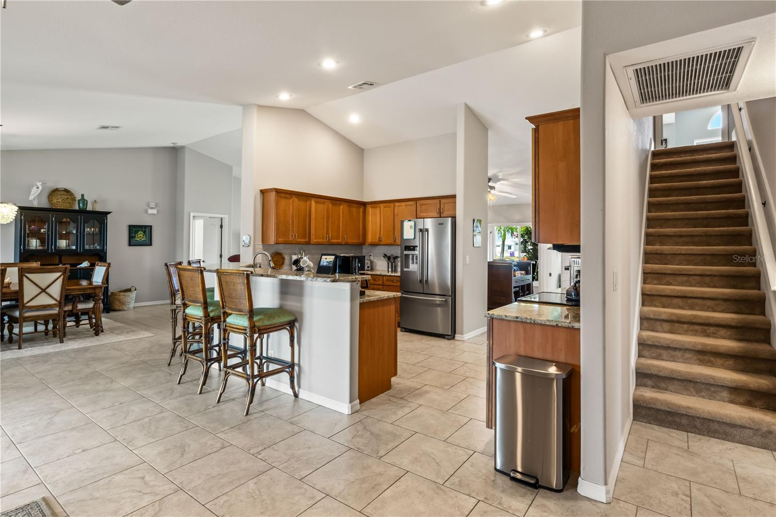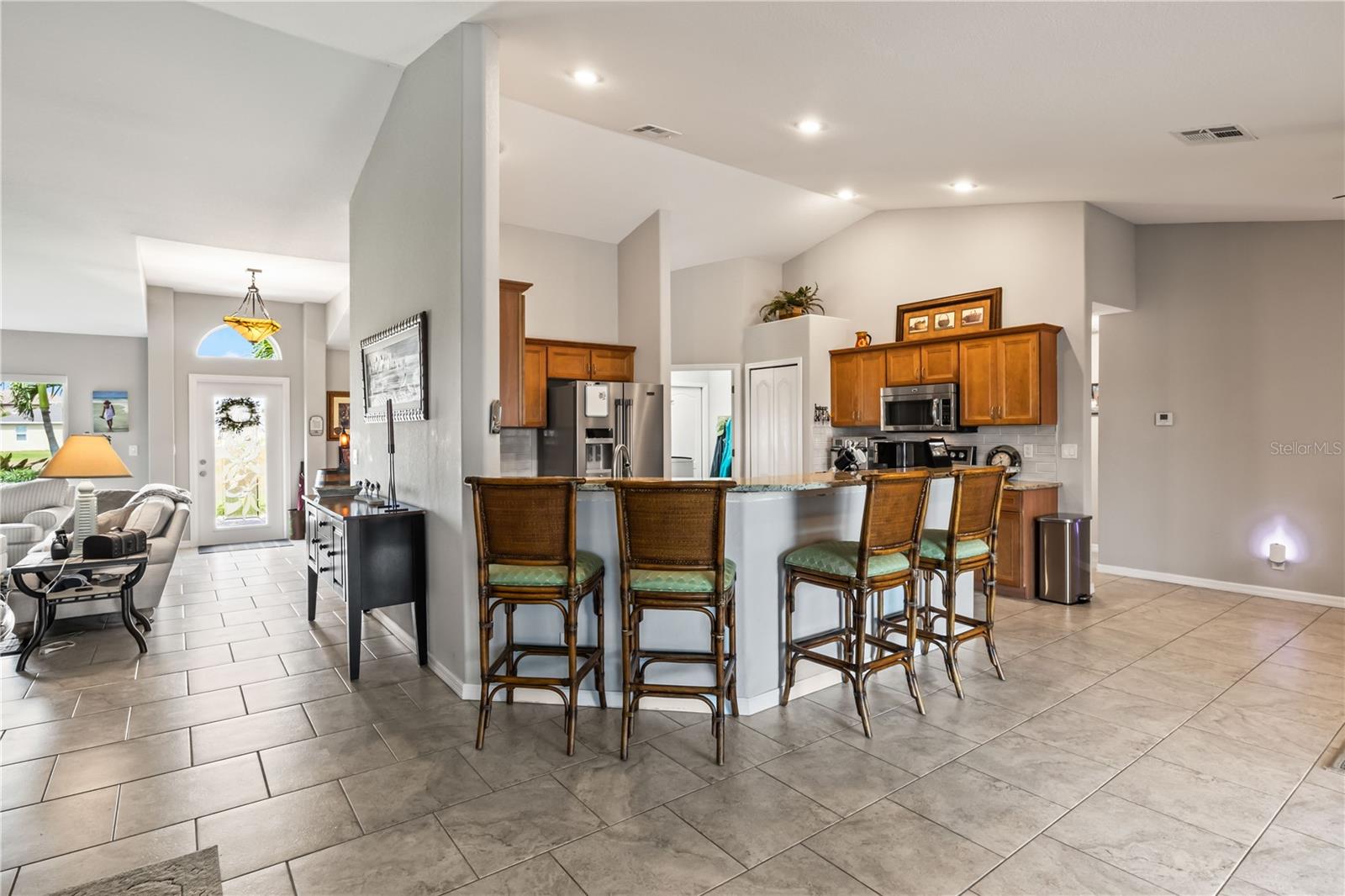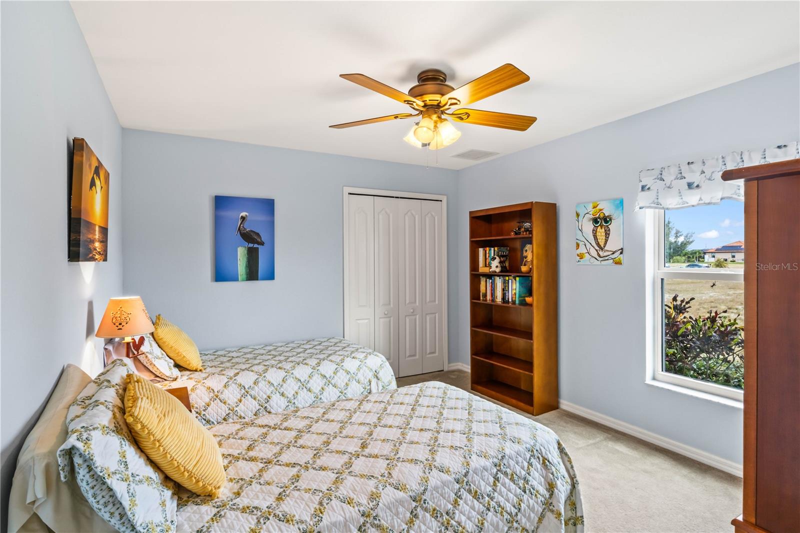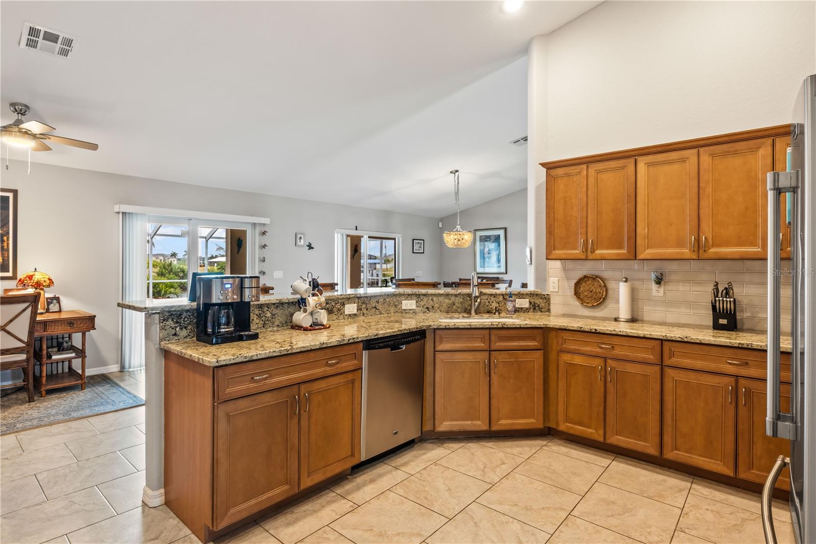 NO FLOODING from Hurricane! An incredible opportunity to own a SPECTACULAR waterfront property with intersecting canal views and directly off the spreader canal! WIDE OPEN waters for sailboat access and endless views of incredible sunrises and sunsets! This is a very active canal loaded with fish, dolphins, manatees and more! The home itself is also beautiful both inside and out - a very spacious floor plan with a bonus additional master bedroom suite upstairs that could also easily be a second family room/game room or multiple other uses! The owners have taken meticulous care of the property and upgraded the roof, solar system, reverse osmosis throughout the entire home, new ac and more! The downstairs has staggered neutral tile that compliments the light grey paint. So many details everywhere - custom front door welcomes you and floods the home with natural light. The main level is both flexible and functional - soaring vaulted ceilings, lots of windows, a split master bedroom suite with spa like master bath with double vanities, a garden tub and separate shower. There are 3 additional bedrooms downstairs and a large custom kitchen with upgraded appliances, granite counter tops and tons of counter and storage space. And then there is the outdoor RESORT area - Triple covered patio to enjoy the shade and a large area with swimming pool and spa and plenty of space to add an outdoor kitchen. Best of all is the tiki hut with views of the intersecting canal and a birds eye view for sunrises and sunsets. Plenty of room for a large boatlift and easy access with NO BRIDGES out to the water. This home checks all the boxes for a perfect vacation rental and is located on a quiet culdesac lot in the booming Northwest corridor! FLOOD is transferrable and UNDER $700 A YEAR!!!