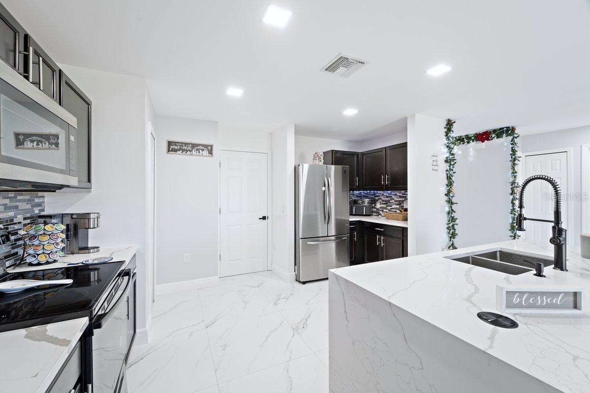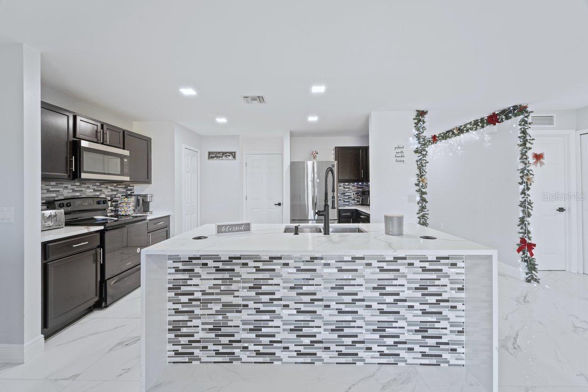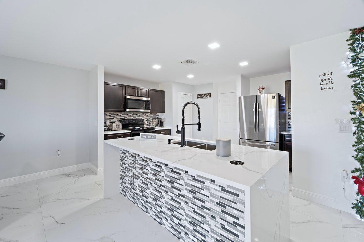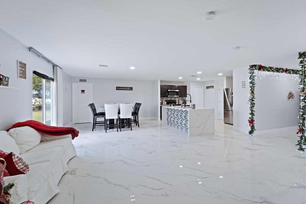 This luxurious 4-bedroom single-family residence offers a captivating and stylish living area. Boasting 2 bathrooms and a 2-car garage, this property seamlessly blends functionality and sophistication. Tile flooring throughout enhances the home's modern aesthetic, complemented by quartz counter tops and sleek stainless-steel appliances. The beautiful quartz island features a built-in pop-up power outlet with USB ports for charging devices. The expansive master suite includes a spacious walk- in closet and private bathroom with contemporary walk-in shower design. The kitchen boasts ample counter space and an eat-in area perfect for entertaining. Additionally, it's not located in a flood zone! Close to Burnt Store Marina with easy access to I-75! Schedule your viewing today to experience this extraordinary home. Owner occupied. See additional remarks.