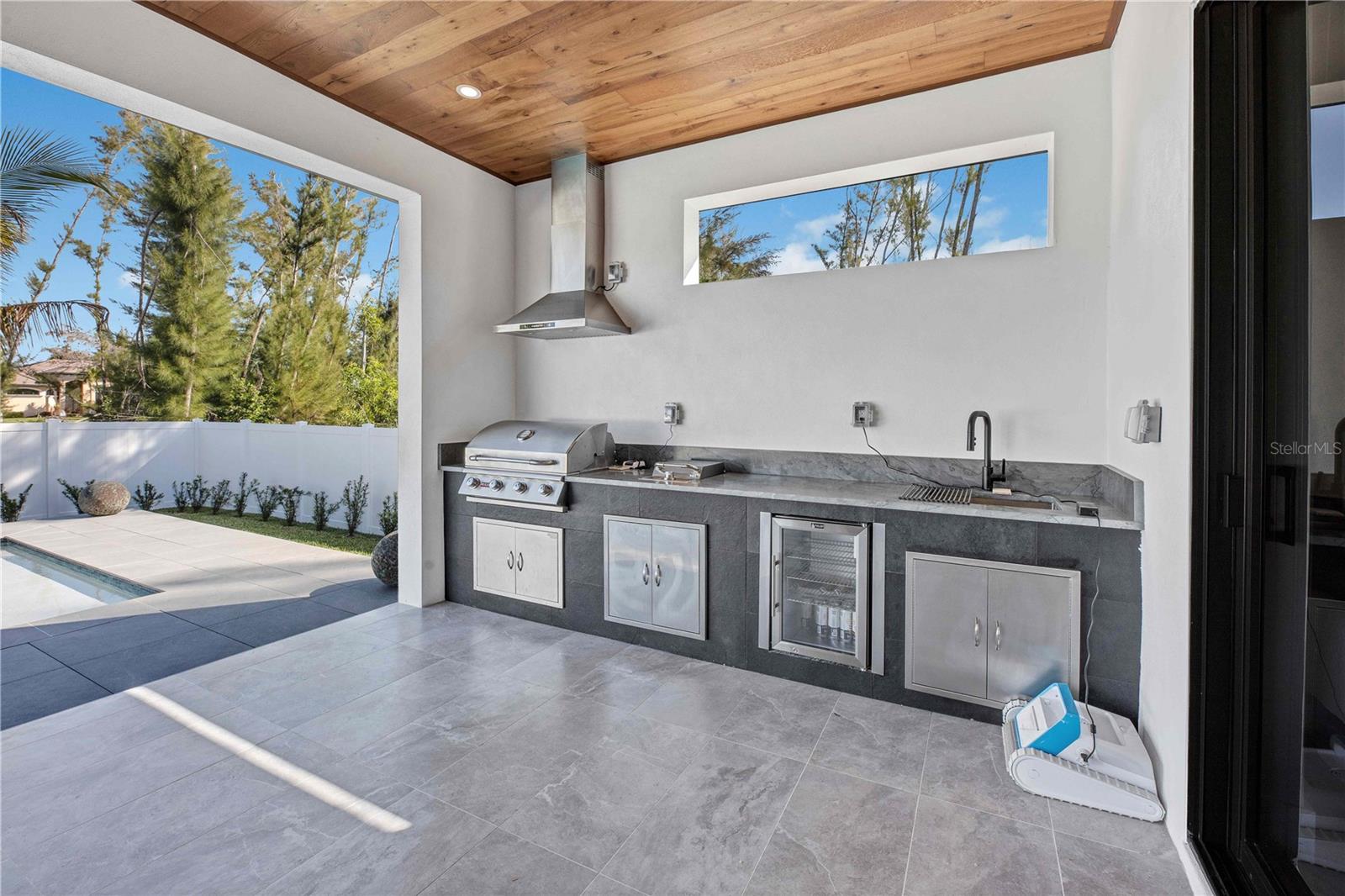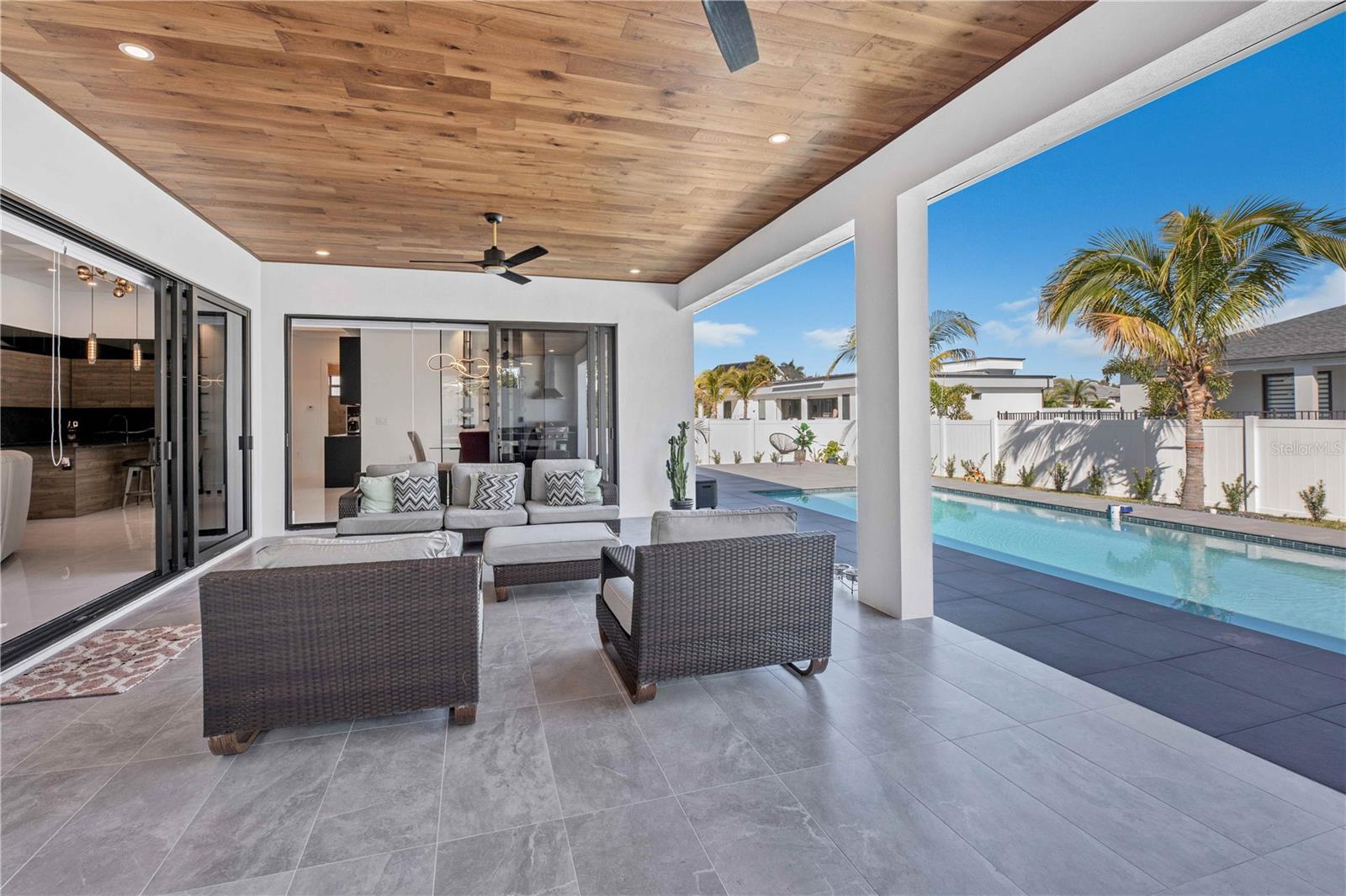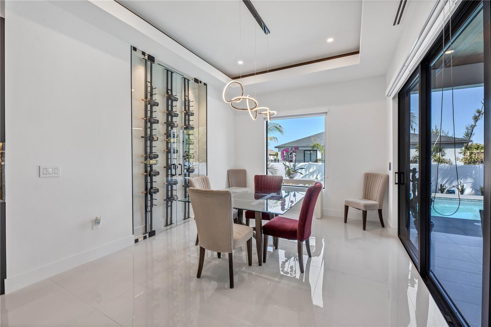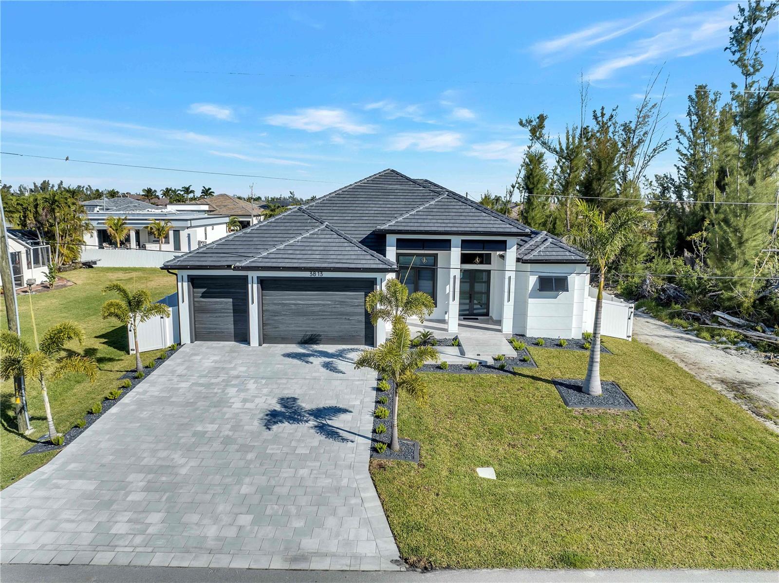 STOP, BEHOLD & LOOK NO FURTHER! This incredible HOME has EVERYTHING YOU need to MOVE-IN READY and ENJOY SWFL PARADISE! *With ALL ASSESSMENTS PAID IN FULL & TRANFERABLE FLOOD INSURANCE $2,242/year, you can rest easy knowing YOUR INVESTMENT is protected!* Delightful northern rear backyard exposure for cooler summer & wonderful sun views from this BRIGHT & SPACIOUS 2,420 sq ft floorplan w/ SPAIN PORCELAIN TILE THROUGHOUT 3 BEDS plus DEN (make it a 4th bed!) & 3.5 BATHS, designer lamp & lights & modern fans. Walk through FRONT COLUMN PORCH w/ FLAT WOODEN CEILING to open designer's FROSTED DOUBLE FRONT DOORS into an AMAZING FOYER. AWE-INSPIRING LIVING ROOM w/ 16-ft COVE CEILING & WOODEN BEAMS, illuminated by soft glow of ELECTRIC FIREPLACE. A 75-inch TV takes CENTER STAGE on FEATURED WALL, accompanied by WIRED BOSE monitoring SURROUND SOUND SYSTEM for ENTERTAINMENT & RELAXATION. GOURMET KITCHEN w/ ACOUSTIC PANELING CEILING & designer's lights! TOP-OF-THE-LINE custom CABINETRY w/ under & top cabinets w/ LED track lights, NATURAL STONE COUNTERTOPS & FULL BACKSPLASH, LARGE SINK w/ matte black faucet. HIGH-END LUXURY APPLIANCES DACOR wall oven, wall microwave, induction cooktop, panel-ready integrated dishwasher & BUILT-IN SIDE BY SIDE REFRIGERATOR & FREEZER. Enjoy COFFEE NOOK morning beverages & evening cocktails giving YOU more room to store & prepare. Enjoy MEMORABLE FORMAL DINING in sizeable DINING ROOM w/ stackable doors to LANAI & BIG PICTURE WINDOW overlooking POOL AREA. For WINE ENTHUSIASTS, elegant 55-bottle rack graces WINE CELLAR, adding SOPHISTICATION to your ENTERTAINING ENDEAVORS. Retreat to SPACIOUS MASTER BEDROOM w/ HIS & HER WALK-IN CLOSETS. STUNNING MASTER BATH w/ TILED RAINFALL SHOWER w/ 4-JETS and HANDHELD SHOWER HEAD, LUXURIOUS STANDALONE TUB w/ HANDHELD SHOWER & CUSTOM VANITIES w/ VESSEL SINK above NATURAL STONE COUNTERTOP & ELECTRIC TOILETS for REFINEMENT & INDULGENCE. SPLIT FLOORPLAN offers PRIVACY & CONVENIENCE, w/ LARGE 2nd MASTER BEDROOM w/ ENSUITE BATHROOM, alongside HALL BATH & ROOMY GUEST BEDROOM - ALL FIVE TVs INCLUDED for piece for mind and leisure! Step outside to DISCOVER your own PRIVATE OASIS w/ SALTWATER POOL & lush landscaping to enjoy tranquil sounds of nature! OUTDOOR KITCHEN has grill w/ hood vent, mini-refrigerator & large commercial sink for AL FRESCO DINING, while ample space for LOUNGING & ENTERTAINING w/ 45-inch TV in wide & lengthy lanai w/ FLAT WOODEN CEILING ensuring MEMORABLE GATHERING. Laundry w/ laundry tub & built in cabinets for SAMSUNG washer & dryer, 3-CAR GARAGE w/ INSULATED DOORS, ELECTRICAL GENERATOR HOOK UP, ELECTRIC CAR CHARGER, TILE ROOF & FENCED PROPERTY. Situated in residential neighborhood close to essential amenities, this location provides easy access to RECREATIONAL ACTIVITIES & NEIGHBORING CITIES. CAPE CORAL, located in SOUTHWEST FLORIDA is a vibrant with a mix of MODERN HOMES, RECREATIONAL PARKS w/ access to SHOPPING, DINING, and CULTURAL ATTRACTIONS, making it a DESIRABLE LOCATION!