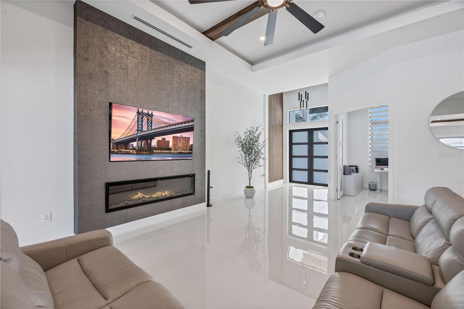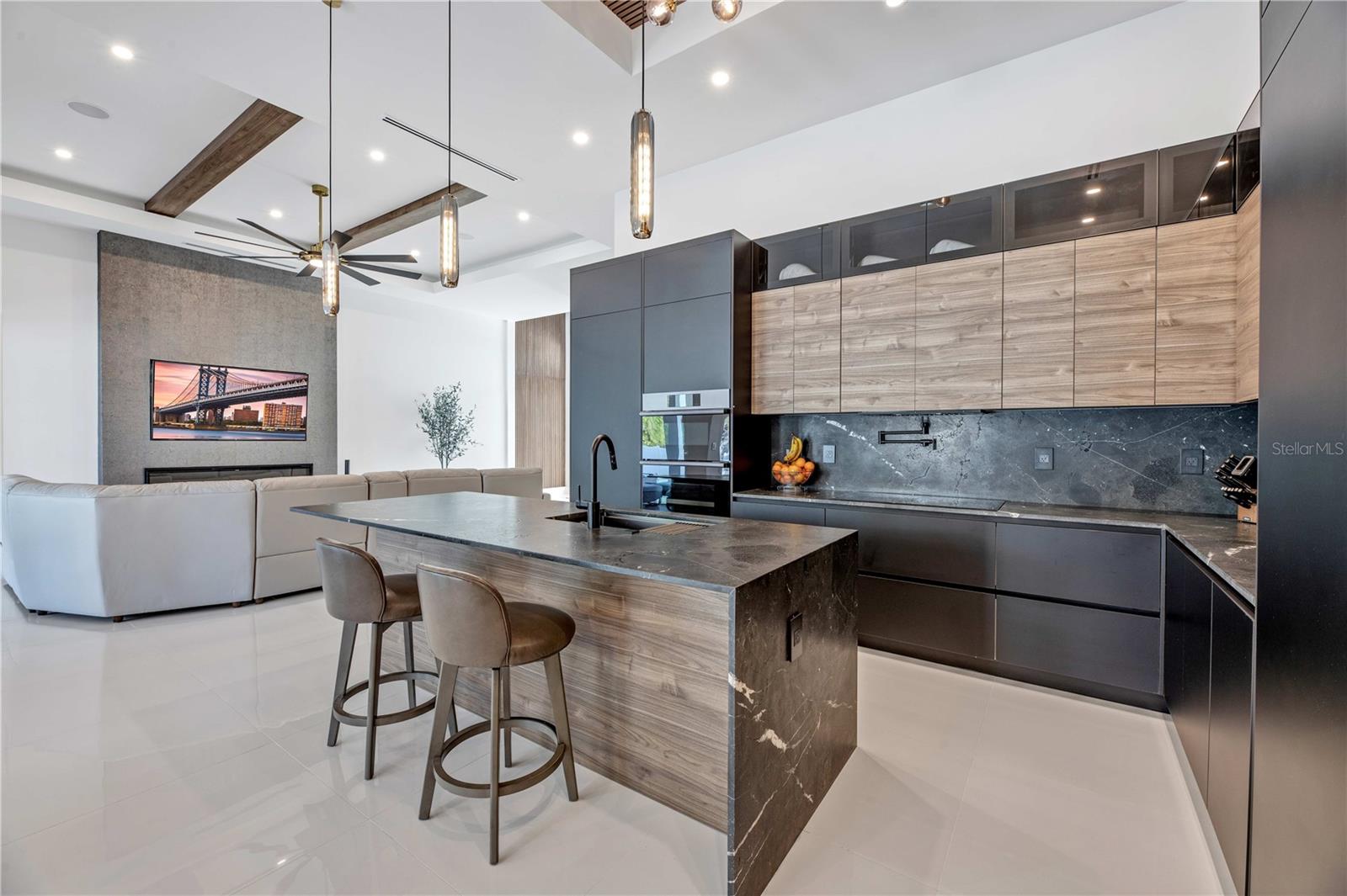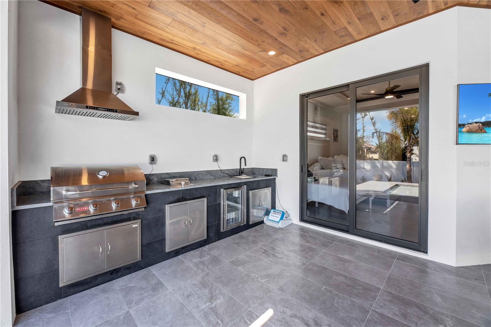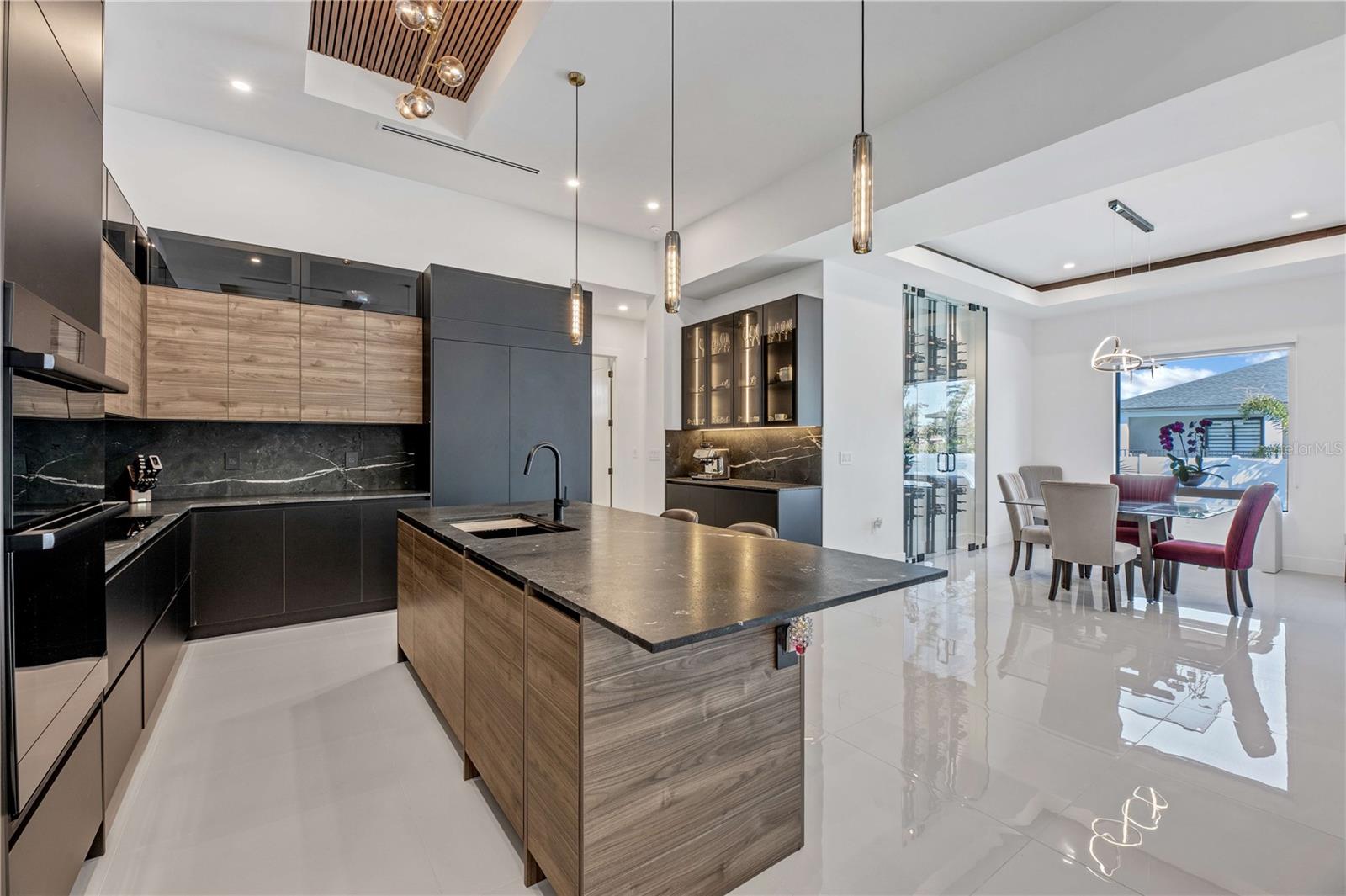 STOP, BEHOLD & LOOK NO FURTHER! This incredible HOME has EVERYTHING YOU need to MOVE-IN READY and ENJOY SWFL PARADISE! *With ALL ASSESSMENTS PAID IN FULL & TRANFERABLE FLOOD INSURANCE $2,242/year, you can rest easy knowing YOUR INVESTMENT is protected!* Delightful northern rear backyard exposure for cooler summer & wonderful sun views from this BRIGHT & SPACIOUS 2,420 sq ft floorplan w/ SPAIN PORCELAIN TILE THROUGHOUT 3 BEDS plus DEN (make it a 4th bed!) & 3.5 BATHS, designer lamp & lights & modern fans. Walk through FRONT COLUMN PORCH w/ FLAT WOODEN CEILING to open designer's FROSTED DOUBLE FRONT DOORS into an AMAZING FOYER. AWE-INSPIRING LIVING ROOM w/ 16-ft COVE CEILING & WOODEN BEAMS, illuminated by soft glow of ELECTRIC FIREPLACE. A 75-inch TV takes CENTER STAGE on FEATURED WALL, accompanied by WIRED BOSE monitoring SURROUND SOUND SYSTEM for ENTERTAINMENT & RELAXATION. GOURMET KITCHEN w/ ACOUSTIC PANELING CEILING & designer's lights! TOP-OF-THE-LINE custom CABINETRY w/ under & top cabinets w/ LED track lights, NATURAL STONE COUNTERTOPS & FULL BACKSPLASH, LARGE SINK w/ matte black faucet. HIGH-END LUXURY APPLIANCES DACOR wall oven, wall microwave, induction cooktop, panel-ready integrated dishwasher & BUILT-IN SIDE BY SIDE REFRIGERATOR & FREEZER. Enjoy COFFEE NOOK morning beverages & evening cocktails giving YOU more room to store & prepare. Enjoy MEMORABLE FORMAL DINING in sizeable DINING ROOM w/ stackable doors to LANAI & BIG PICTURE WINDOW overlooking POOL AREA. For WINE ENTHUSIASTS, elegant 55-bottle rack graces WINE CELLAR, adding SOPHISTICATION to your ENTERTAINING ENDEAVORS. Retreat to SPACIOUS MASTER BEDROOM w/ HIS & HER WALK-IN CLOSETS. STUNNING MASTER BATH w/ TILED RAINFALL SHOWER w/ 4-JETS and HANDHELD SHOWER HEAD, LUXURIOUS STANDALONE TUB w/ HANDHELD SHOWER & CUSTOM VANITIES w/ VESSEL SINK above NATURAL STONE COUNTERTOP & ELECTRIC TOILETS for REFINEMENT & INDULGENCE. SPLIT FLOORPLAN offers PRIVACY & CONVENIENCE, w/ LARGE 2nd MASTER BEDROOM w/ ENSUITE BATHROOM, alongside HALL BATH & ROOMY GUEST BEDROOM - ALL FIVE TVs INCLUDED for piece for mind and leisure! Step outside to DISCOVER your own PRIVATE OASIS w/ SALTWATER POOL & lush landscaping to enjoy tranquil sounds of nature! OUTDOOR KITCHEN has grill w/ hood vent, mini-refrigerator & large commercial sink for AL FRESCO DINING, while ample space for LOUNGING & ENTERTAINING w/ 45-inch TV in wide & lengthy lanai w/ FLAT WOODEN CEILING ensuring MEMORABLE GATHERING. Laundry w/ laundry tub & built in cabinets for SAMSUNG washer & dryer, 3-CAR GARAGE w/ INSULATED DOORS, ELECTRICAL GENERATOR HOOK UP, ELECTRIC CAR CHARGER, TILE ROOF & FENCED PROPERTY. Situated in residential neighborhood close to essential amenities, this location provides easy access to RECREATIONAL ACTIVITIES & NEIGHBORING CITIES. CAPE CORAL, located in SOUTHWEST FLORIDA is a vibrant with a mix of MODERN HOMES, RECREATIONAL PARKS w/ access to SHOPPING, DINING, and CULTURAL ATTRACTIONS, making it a DESIRABLE LOCATION!