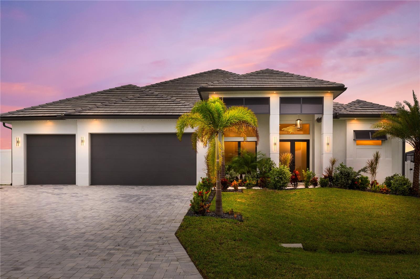 PRIME LOCATION near future SEVEN ISLANDS WATERFRONT COMMUNITY, featuring planned marinas, parks, dining & resort-style amenities. Incredible POTENTIAL & RISING VALUES make this a SMART EARLY INVESTMENT OPPORTUNITY w/ NO FLOOD INSURANCE REQUIRED & 1-YEAR BUILDER WARRANTY! Immerse yourself in the EPITOME of CONTEMPORARY LUXURY, INVITING YOU to claim YOUR slice of PARADISE in CAPE CORAL, SOUTHWEST FLORIDA! This STUNNING NEW-BUILT property is ready to embrace YOU as its NEW OWNER, offering exquisite blend of MODERN DESIGN & COMFORT! Wake up to DELIGHTFUL spectacle of SUNRISE VIEWS from BRIGHT & EXPANSIVE 2,420 sq ft floorplan w/ sleek SPANISH PORCELAIN TILE FLOORING throughout. STEP INSIDE to DISCOVER SOPHISTICATION in 3 BEDROOMS plus a DEN (MAKE IT 4!!!) & 3.5 BATHS, where designer lamps, lights & modern fans add touch of ELEGANCE at every turn! Walk through FRONT PORCH & enter DOUBLE FRONT DOORS, you're greeted by GRAND FOYER adorned w/ ACOUSTIC PANELS EMBEDDED w/ LED TRACK LIGHTS, setting stage for TRULY CAPTIVATING AMBIANCE! Indulge in the WARMTH OF HOME beneath the 16-ft COVE CEILING adorned w/ ACOUSTIC PANELS & LED indirect lights, creating SERENE atmosphere perfect for RELAXATION & ENTERTAINMENT. The GOURMET KITCHEN stands as the HEART of this home, inviting FAMILY GATHERINGS and INTIMATE CONVERSATIONS with its IMPECCABLE DESIGN and TOP-OF-THE-LINE FEATURES! CUSTOM CABINETRY, QUARTZ COUNTERTOPS, a spacious FARMHOUSE SINK, and a sleek CHROME FAUCET with a pull-down SPRING SPOUT ELEVATE the CULINARY EXPERIENCE, while FULL BACKSPLASH and UNDER CABINET LIGHTS ADD A TOUCH OF REFINEMENT. HIGH-END STAINLESS STEEL SMART APPLIANCES ensure both FUNCTIONALITY and STYLE, while an EXPANSIVE KITCHEN ISLAND offers VERSATILE SEATING OPTIONS for FORMAL DINNING or CASUAL MEALS. A HIGHLIGHT of the home is also the SPECTACULAR 55-bottle WINE RACK nestled within a DEDICATED WINE CLOSET, adding a TOUCH of LUXURY to your ENTERTAINING ENDEAVORS. Retreat to the SPACIOUS MASTER BEDROOM, complete with HIS and HERS WALK-IN CLOSETS, offering ample storage space for your wardrobe essentials. The MASTER BATHROOM is a SANCTUARY OF RELAXATION, featuring a WALKTHROUGH TILE and RAINFALL SHOWER, LUXURIOUS TUB, custom vanities and mirrors, wall-mounted faucets, quartz countertops, and an electric toilet for added convenience. The SPLIT FLOORPLAN offers PRIVACY and COMFORT, with a large suite, hall bathroom, linen closet, and ample guest bedroom ensuring EVERYONE HAS THEIR OWN SPACE TO UNWIND. Outside, a POOL awaits, beckoning YOU to COOL OFF on warm Florida days, while an OUTDOOR KITCHEN with BBQ GRILL, MINI-REFRIGERATOR, and COMMERCIAL SINK offers perfect setting for AL FRESCO DINING & ENTERTAINING! INSULATED GARAGE DOORS add EFFICIENCY & PRACTICALITY to this LUXURIOUS HOME, ensuring COMFORT & CONVENIENCE year-round. WELCOME HOME TO OASIS OF SOPHISTICATION & STYLE, WHERE EVERY DETAIL EXUDES PERFECTION!
