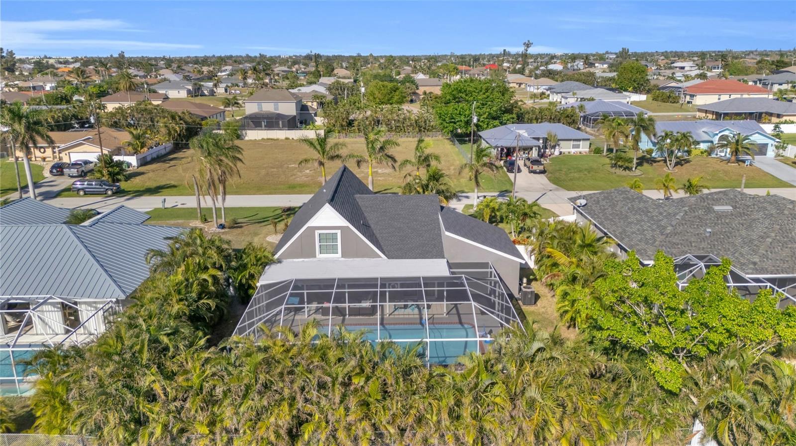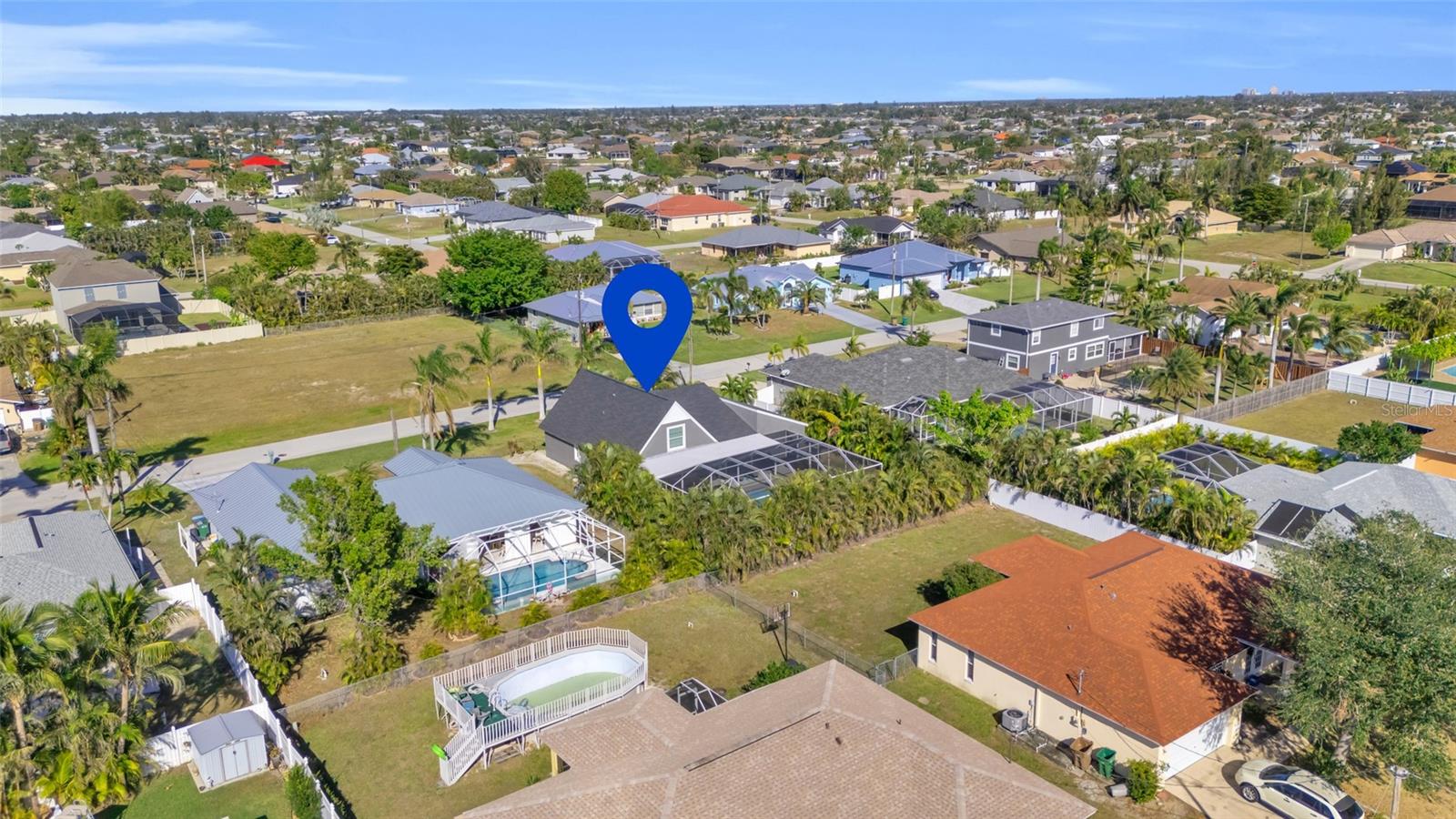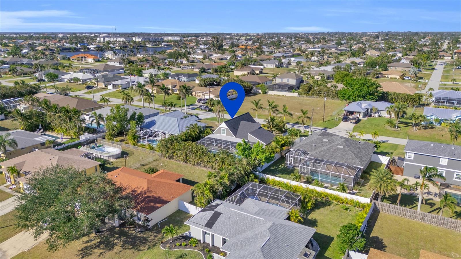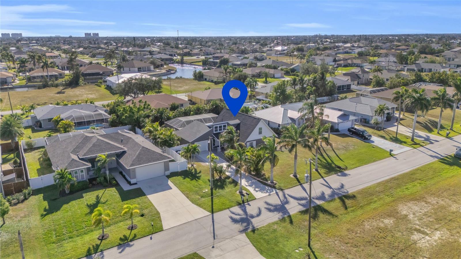 Welcome to the Sunset Cabana home in the desired Pelican neighborhood of Cape Coral, where you feel like you're staying on the beach. This immaculate 3-bedroom + den, 2-bathroom POOL home is a rare find, offering nearly 2,100 sq. ft. of thoughtfully designed living space and being sold TURNKEY—just bring your toothbrush and start living the Southwest Florida dream! It is also a SUCCESSFUL VACATION RENTAL PROPERTY for the past few years with high ratings by guests. Step into the inviting open concept living area, where a spacious kitchen, dining space, and living room blend seamlessly to create the perfect setting for entertaining. Two bedrooms are conveniently located on the first floor. From here, enjoy panoramic views of the lush backyard and OVERSIZED, HEATED POOL—your private oasis awaits. The second floor boasts a serene master suite complete with a cozy separate living area and reading nook/ extra guest sleeping area that overlooks the sparkling pool below. Whether you're working from home, reading a book, or unwinding after a long day, this home offers a space for every mood. Outside, the landscaped backyard is adorned with tropical palm trees, creating a secluded paradise. The large, covered lanai is perfect for hosting family gatherings or relaxing under the Florida sunshine. With a nearly new roof completed in 2023, a new garage door in 2021, updated kitchen with stainless steel appliances and updated bathrooms, updated plumbing, and a new AC in 2024, upper windows are hurricane impact glass, along with the pool resurfaced and beautiful tiles added, every detail has been considered to ensure your comfort and peace of mind. This property isn’t just a home—it’s a lifestyle. Nestled in the quiet Pelican neighborhood, you’re just minutes away from schools, shopping, dining, entertainment, and marinas. Whether you're searching for the perfect family retreat or a proven vacation rental property, this home delivers. The home is NOT in a flood zone! Opportunities like this don’t come around often—schedule your showing today and make this rare gem your very own slice of paradise! Be sure to watch the VIDEO of the home!