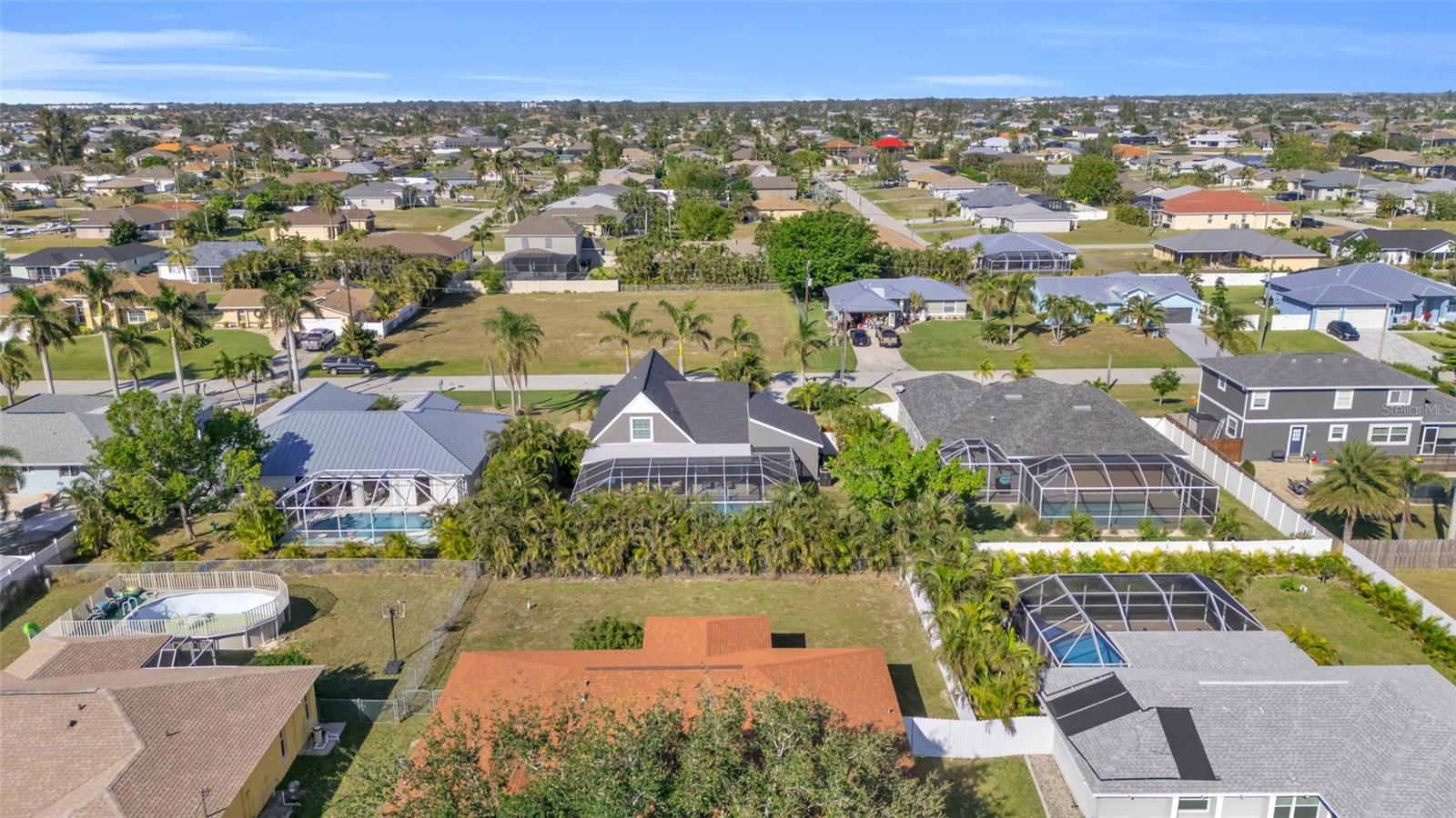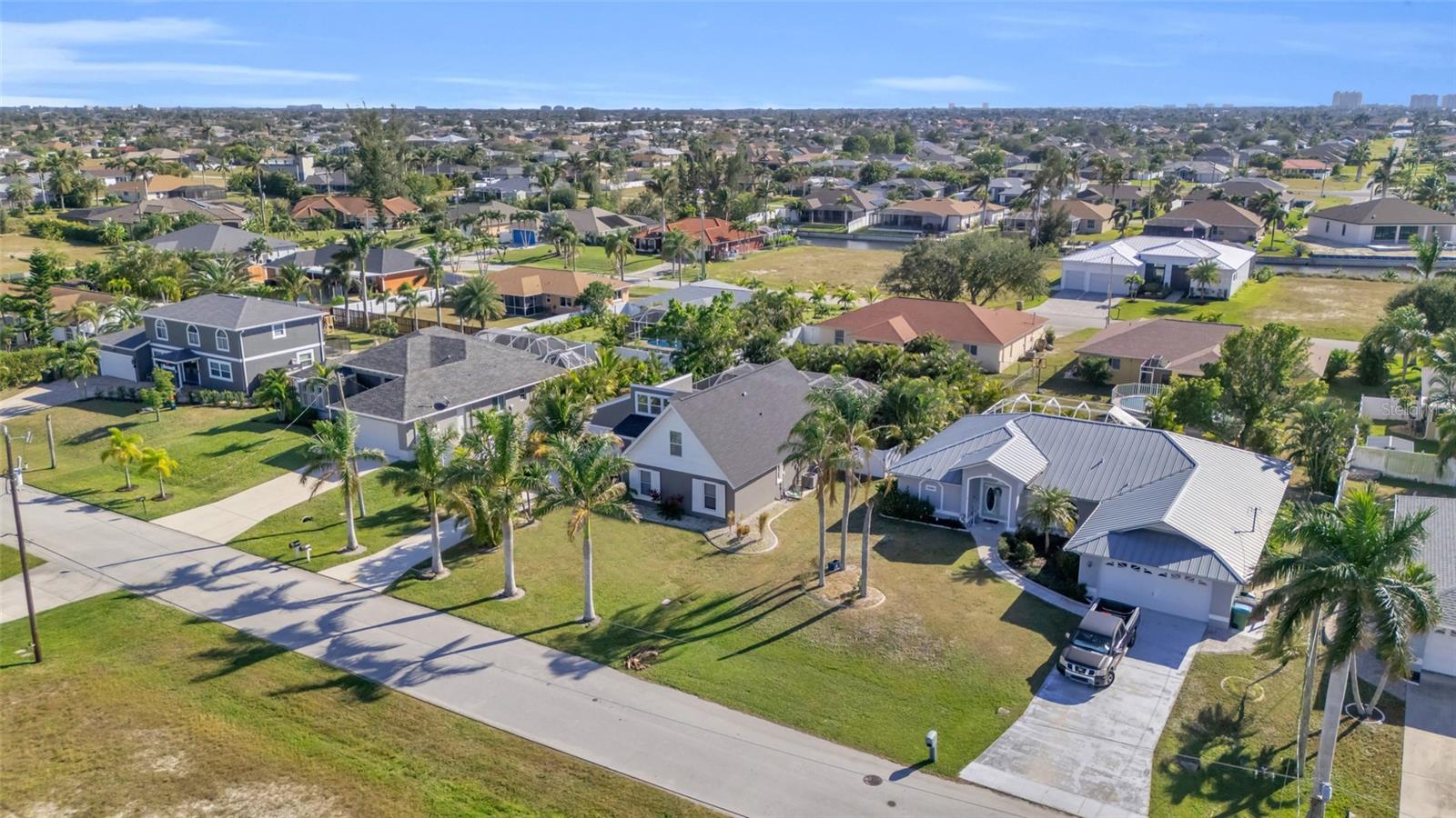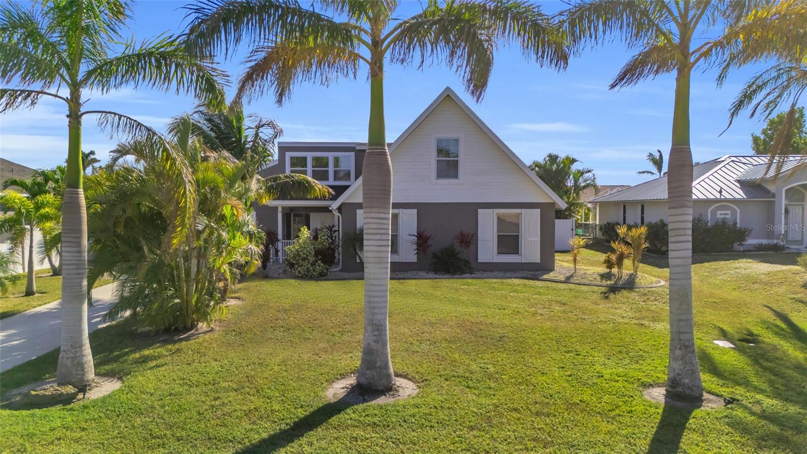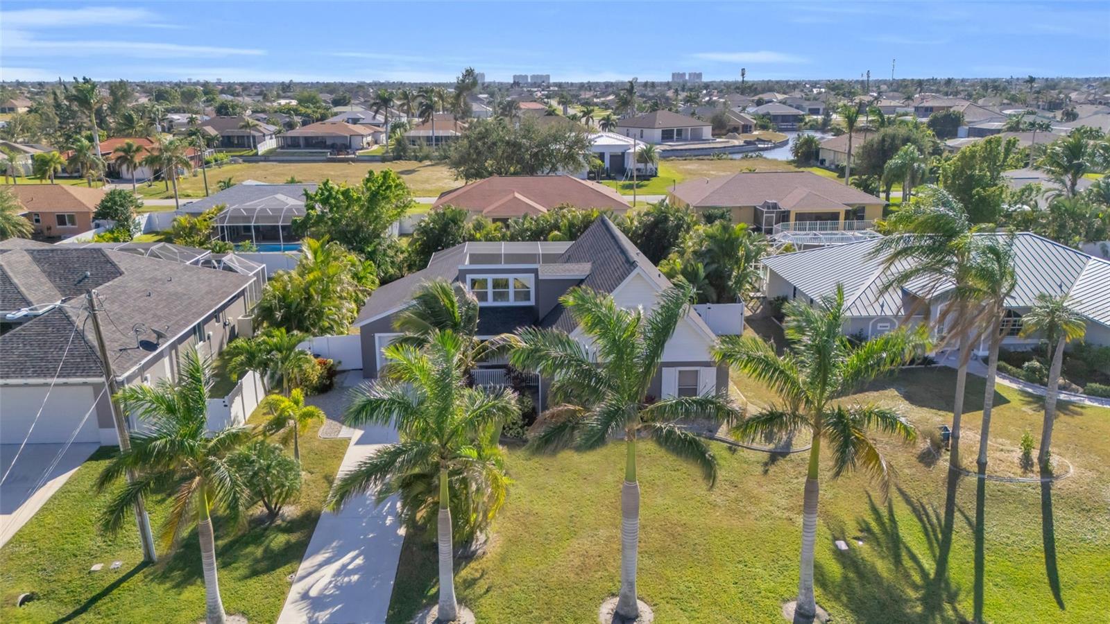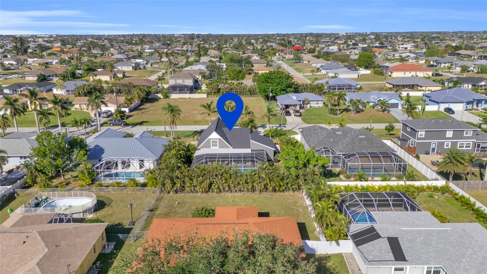 Welcome to the Sunset Cabana home in the desired Pelican neighborhood of Cape Coral, where you feel like you're staying on the beach. This immaculate 3-bedroom + den, 2-bathroom POOL home is a rare find, offering nearly 2,100 sq. ft. of thoughtfully designed living space and being sold TURNKEY—just bring your toothbrush and start living the Southwest Florida dream! It is also a SUCCESSFUL VACATION RENTAL PROPERTY for the past few years with high ratings by guests. Step into the inviting open concept living area, where a spacious kitchen, dining space, and living room blend seamlessly to create the perfect setting for entertaining. Two bedrooms are conveniently located on the first floor. From here, enjoy panoramic views of the lush backyard and OVERSIZED, HEATED POOL—your private oasis awaits. The second floor boasts a serene master suite complete with a cozy separate living area and reading nook/ extra guest sleeping area that overlooks the sparkling pool below. Whether you're working from home, reading a book, or unwinding after a long day, this home offers a space for every mood. Outside, the landscaped backyard is adorned with tropical palm trees, creating a secluded paradise. The large, covered lanai is perfect for hosting family gatherings or relaxing under the Florida sunshine. With a nearly new roof completed in 2023, a new garage door in 2021, updated kitchen with stainless steel appliances and updated bathrooms, updated plumbing, and a new AC in 2024, upper windows are hurricane impact glass, along with the pool resurfaced and beautiful tiles added, every detail has been considered to ensure your comfort and peace of mind. This property isn’t just a home—it’s a lifestyle. Nestled in the quiet Pelican neighborhood, you’re just minutes away from schools, shopping, dining, entertainment, and marinas. Whether you're searching for the perfect family retreat or a proven vacation rental property, this home delivers. The home is NOT in a flood zone! Opportunities like this don’t come around often—schedule your showing today and make this rare gem your very own slice of paradise! Be sure to watch the VIDEO of the home!