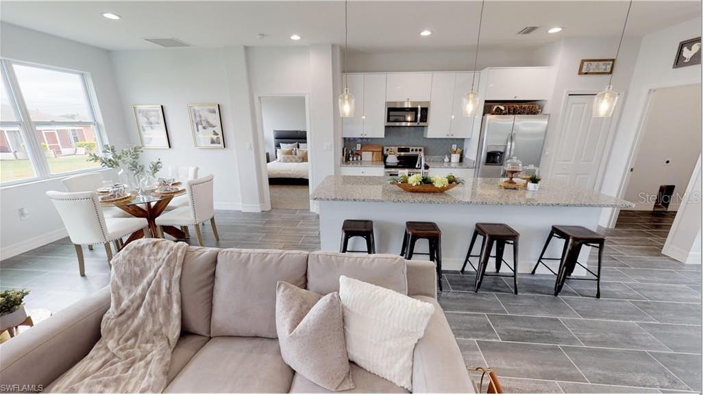 Under Construction. Home under construction, featuring 4 bedrooms, 2 full bathrooms, and a 2-car garage. This spacious 1,750 square foot home offers a total of 2,173 square feet to enjoy and make your own. Designed with an open concept, it boasts a large living room and premium materials throughout. The centerpiece is a stunning living room with ceilings over 10 feet high, providing a picturesque view of the backyard flooded with natural light from sliders and windows. The entertainer's kitchen is a standout, featuring granite countertops, a center island, soft-close cabinets, and elegant wood cabinetry. The expansive master suite is a retreat in itself, overlooking the tranquil backyard, equipped with his & her closets, and a luxurious bathroom featuring dual vanities, granite counters, and a spacious walk-in shower. With 4 generously sized bedrooms, this home is perfect for families, offering versatility for work-from-home setups, a home gym, or simply extra space. The guest bathroom is equally impressive with granite counters, quality fixtures, and a tub/shower combination. The living areas are enhanced with stylish vinyl flooring, while the bedrooms feature comfortable carpeting and elegant 5 1/4 inch colonial baseboards throughout. Scheduled for completion later this year, the home comes with a comprehensive 2-10 Warranty for peace of mind. Located near schools, shopping, dining, and parks, this home also offers easy access to several boat ramps for enjoying the area's boating, beaches, and fishing. Nearby golf courses such as Palmetto Pine and Coral Oaks ensure leisure options abound. Electricity will be available upon completion of the property.
