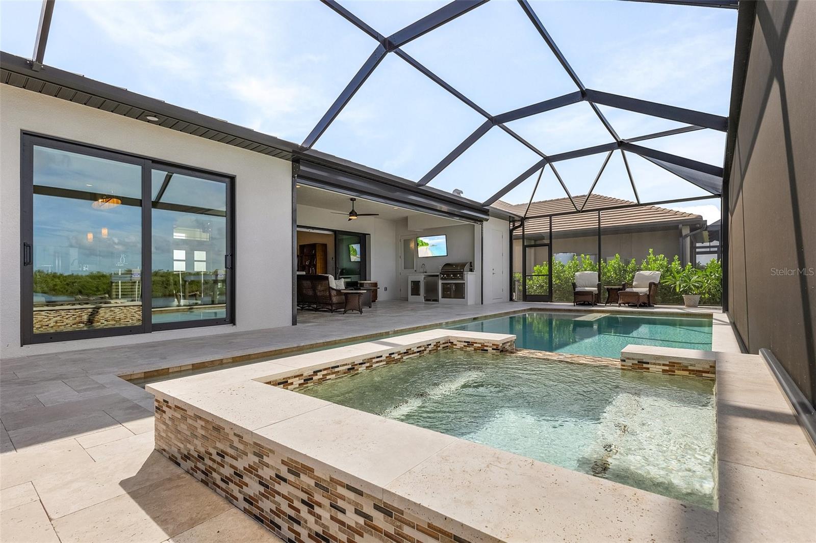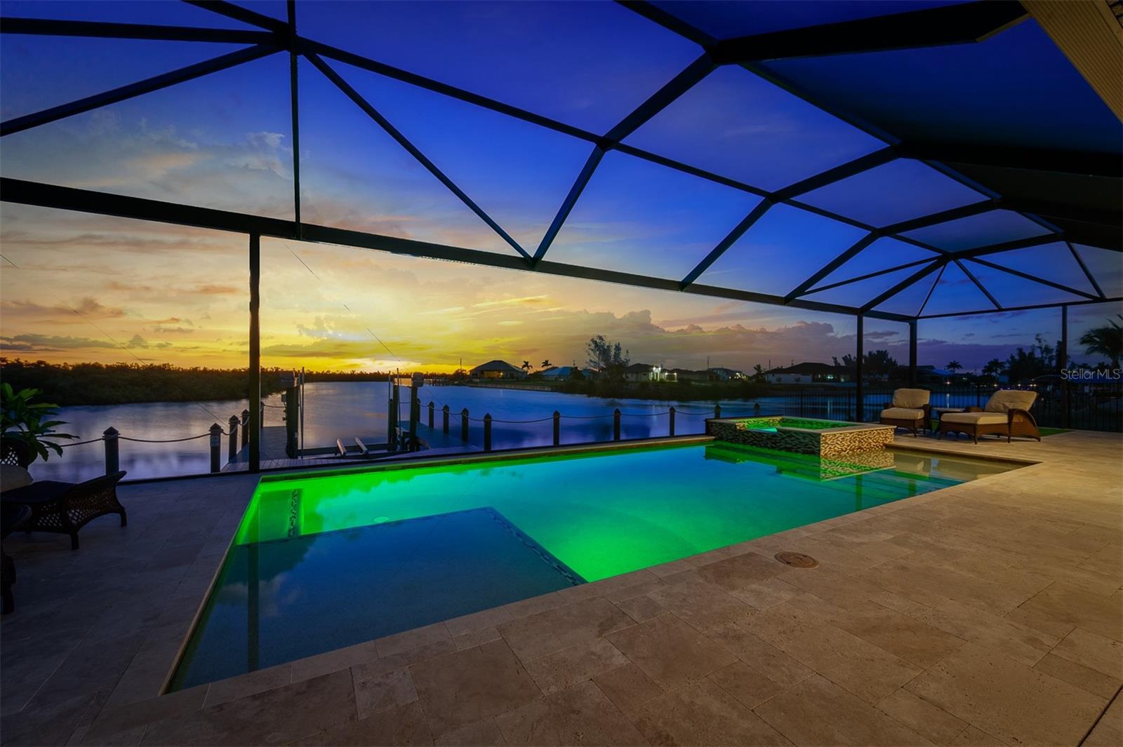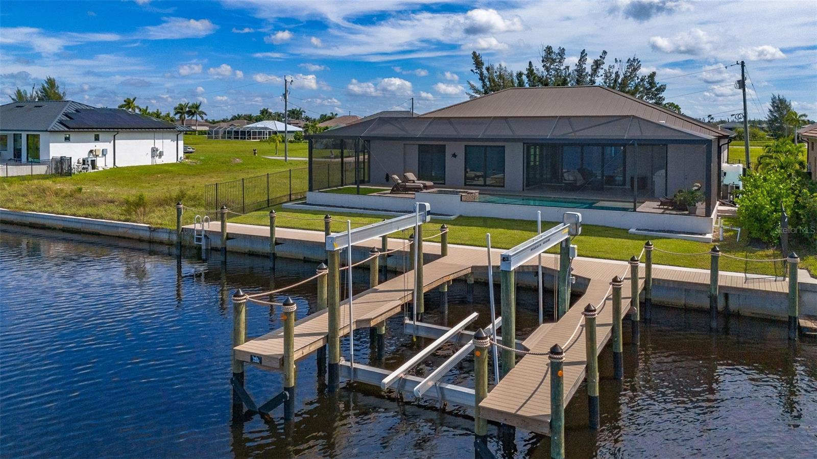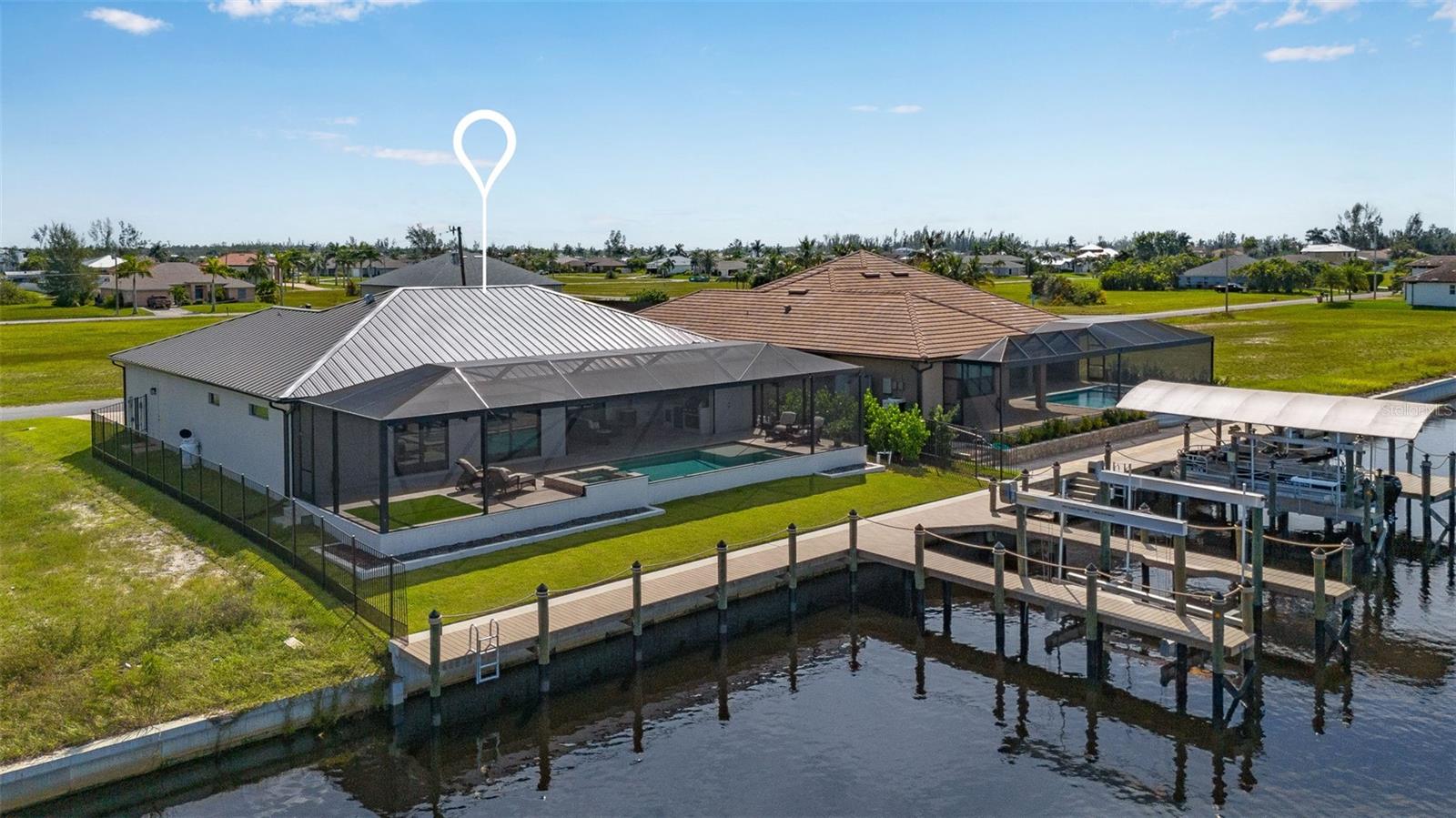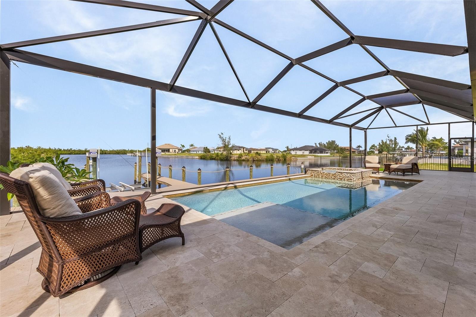 Experience unparalleled luxury and coastal elegance in this exquisite direct Gulf access three-bedroom, three-and-a-half-bath waterfront pool home, complete with a three-car garage. Perfectly positioned in the highly desirable NW Cape Coral, this property offers a rare combination of tranquility and convenience. With unobstructed, awe-inspiring views of the Charlotte Harbor Preserve and mesmerizing sunsets that light up the sky, this home embodies the quintessential Florida Gulf Coast lifestyle. Step through the grand entrance into a thoughtfully designed living space where modern sophistication meets everyday comfort. The open-concept layout seamlessly connects the chef-inspired kitchen, great room, and dining areas, all while showcasing panoramic water views. The kitchen is a culinary masterpiece, featuring premium quartz countertops, custom solid cherry wood cabinets, and a spacious island ideal for morning coffee or evening gatherings. High-end finishes and appliances elevate this space to gourmet perfection. Retreat to the master suite—a true sanctuary of style and relaxation. This expansive space boasts a spa-like master bath with a walk-in shower, dual vanities topped with marble, and a walk-through closet that conveniently connects to the laundry room. Each additional bedroom has been meticulously designed for comfort and versatility, offering serene accommodations for family or guests. The indoor elegance flows effortlessly outdoors to the screened-in lanai, where a fully equipped outdoor kitchen awaits, perfect for entertaining. Lounge by the oversized pool and spa on the expansive travertine deck, enveloped by the privacy of an ornamental metal fence and lush landscaping. Whether soaking up the sun or enjoying twilight gatherings under the stars, this outdoor haven is an extension of the home’s luxurious ambiance. Boating enthusiasts will revel in the private dock, complete with a captain’s walk and a 20,000-lb boat lift, granting direct access to the Gulf for all your waterborne adventures. This home is a haven for peace of mind with features such as custom smart automated window treatments, hurricane impact-resistant glass windows and doors, an electric roll-down shutter enclosing the lanai, a reinforced concrete-filled screen enclosure, and a hurricane-rated steel garage door. Additional enhancements include a painted galvanized metal standing seam roof, generator disconnect/transfer switch, whole-house surge protection, LP gas tank, and spray foam attic insulation. Conveniently located near top-rated schools, fine dining, shopping, and recreational amenities off Burnt Store Road and Pine Island Road, this home offers both seclusion and accessibility. With premium upgrades and breathtaking views, this home stands out over new construction, saving time and additional expenses. Make this stunning home your own—a true legacy property promising to redefine waterfront living here in SW Florida. Schedule your private showing today!