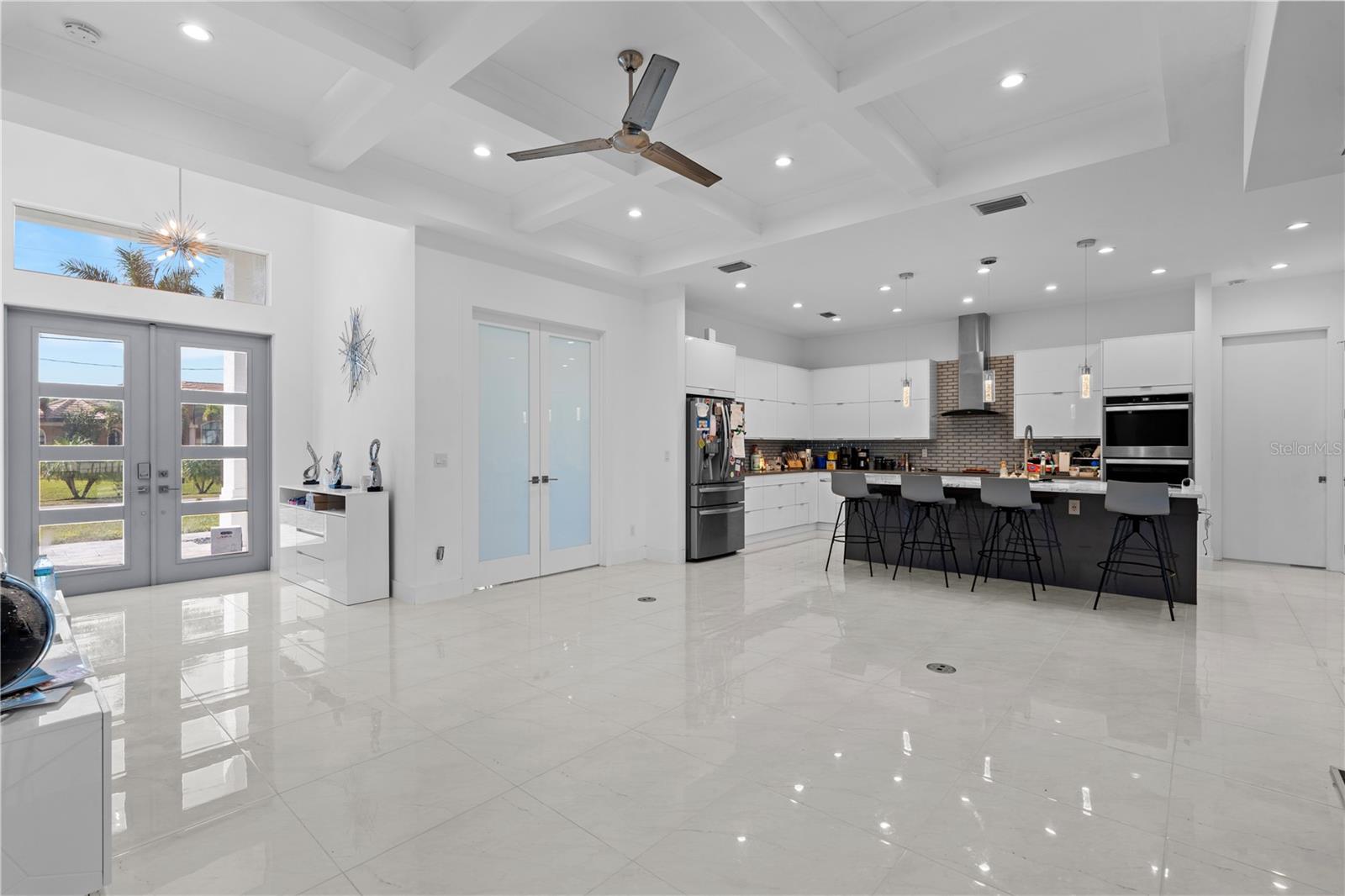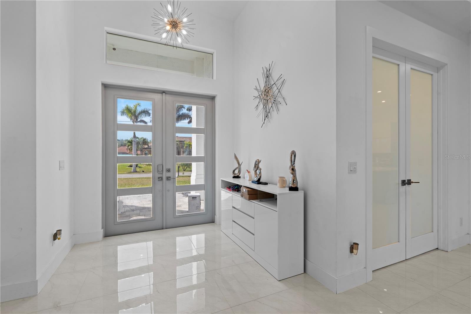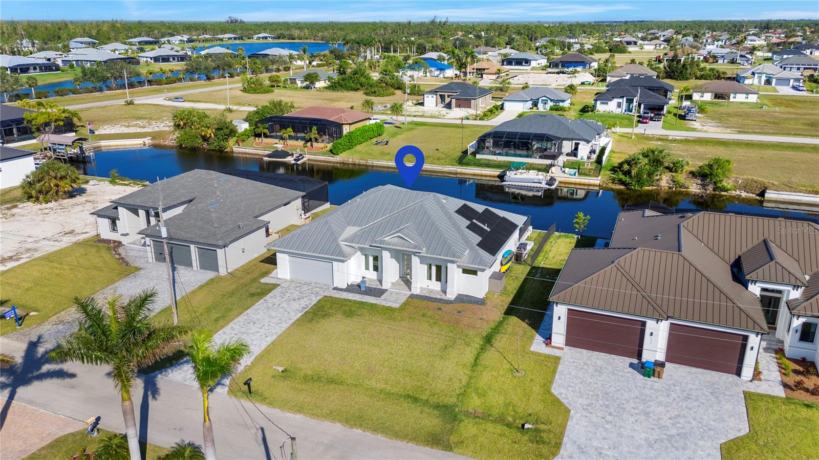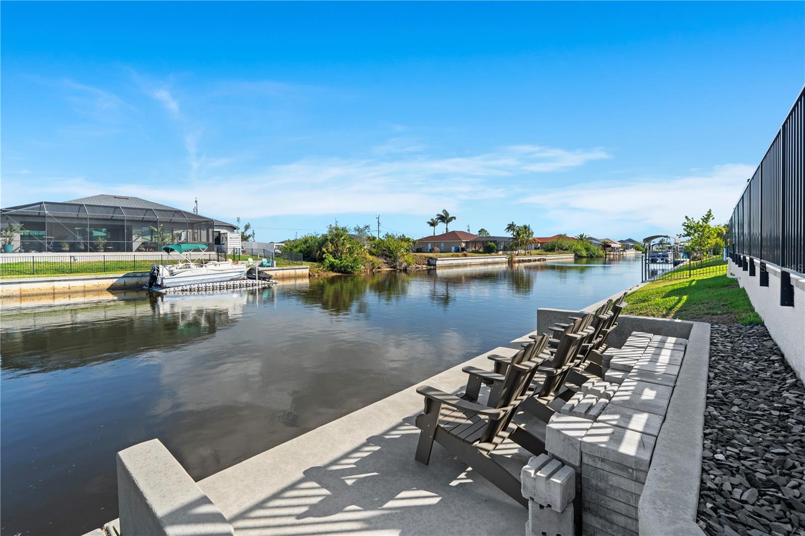 Motivated Sellers!! Listed BELOW appraised value. Nestled on a peaceful dead-end street with no thru traffic, this stunning custom-built Gulf-access home offers both luxury and tranquility. Surrounded by neighboring Gulf-access properties, this residence ensures lasting home value in an exclusive waterfront setting. Designed for convenience and peace of mind, the home boasts a durable metal roof with a 50-year warranty, a whole-home reverse osmosis system, a 17.5KW generator with hookup and 3-gauge cord, a solar system, and CAT 5 hurricane-rated windows and sliders throughout. A comprehensive security system with eleven cameras provides added protection, while extra outlets in every room enhance functionality. A spacious second en suite bedroom and bathroom offer additional comfort for guests or family. Upon entering, you’re welcomed by ceilings up to 12 feet and an abundance of natural light streaming through corner pocket sliders, seamlessly blending indoor and outdoor living. Elegant 24x24-inch porcelain tile and quartz countertops extend throughout the home, creating a sleek and modern aesthetic. The main living area features a custom tray ceiling and a dedicated office space. The chef’s kitchen is a true showpiece, equipped with two full-sized ovens, an induction cooktop, an oversized island, a walk-in pantry, and extensive cabinetry. Each bedroom is generously sized with walk-in closets. The primary suite is a retreat of its own, showcasing tray ceilings and dual pocket sliders that invite the sunrise into your space. Motorized shades are seamlessly integrated for effortless convenience and enhanced comfort. The luxurious en suite bathroom features a walk-through shower with dual showerheads and a rainfall head, a soaking tub, and dual vanities. The walk-in closet is thoughtfully designed with additional outlets for convenience. Step outside to your private backyard oasis, complete with a custom heated saltwater pool, outdoor shower, and a fully equipped outdoor kitchen. Motorized noseeum screens offer comfort and protection, while a concrete pad by the water provides the perfect spot for relaxation. A floating dock ensures easy kayak access, making waterfront living effortless. All pool equipment conveys with the home. This home is just minutes from the highly anticipated Seven Islands Project, a transformative development set to bring immense value to the area. This exciting project will feature a lagoon resort, waterfront restaurants, a public marina, and a luxurious Marriott resort, enhancing both lifestyle and investment potential. This exceptional property blends elegance, efficiency, and premium features—schedule a private tour today and experience Gulf-access living at its finest!