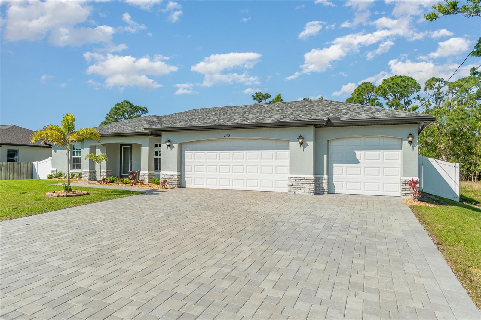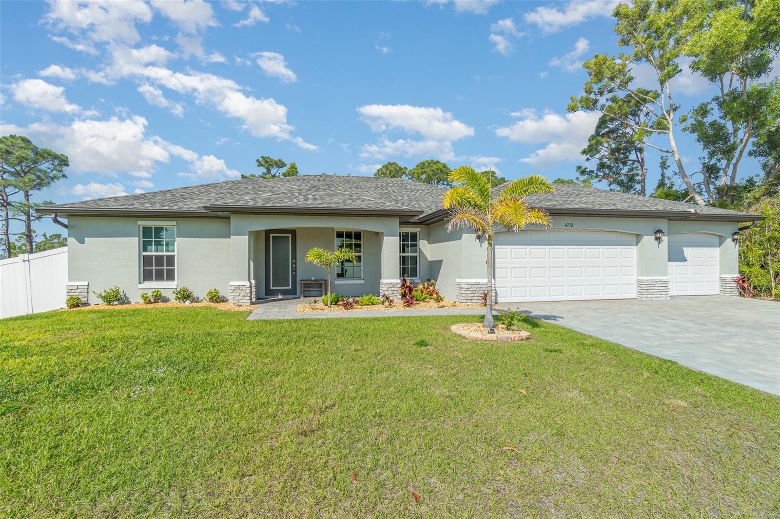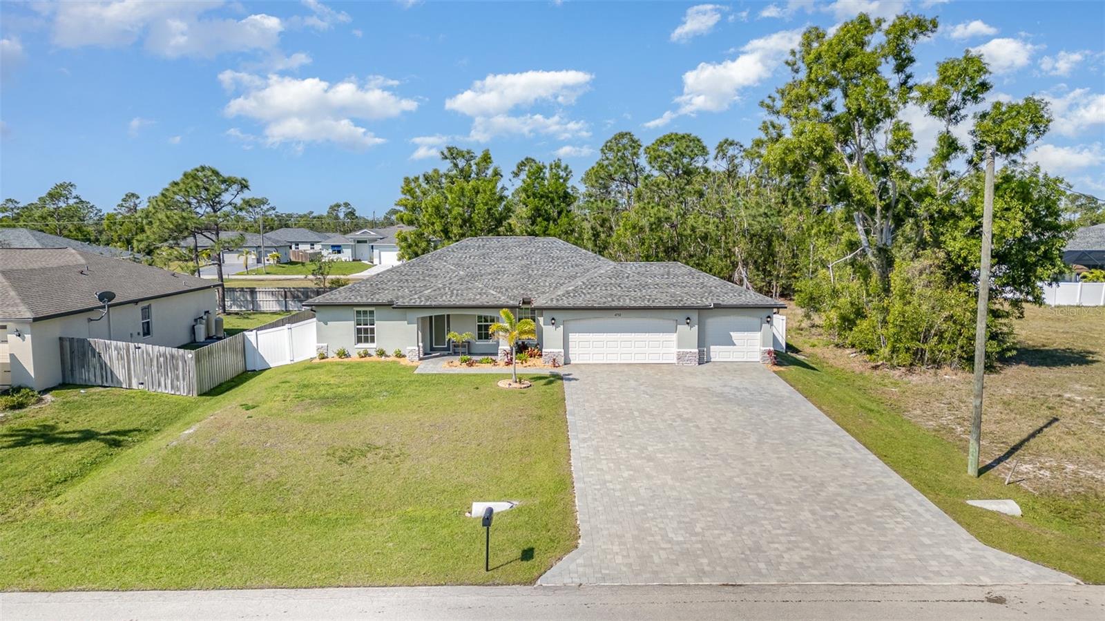 Welcome to your dream home, the stunning "St. Augustine" floor plan! This beautiful better than new construction gem features 4 spacious bedrooms and a generous 3-car garage, all wrapped in superb curb appeal that invites admiration from every angle. As you step inside, you'll be greeted by an open floor plan elevated by soaring cathedral ceilings that create a bright and airy feel throughout. The centerpiece of this elegant space is the center island kitchen, perfect for culinary enthusiasts and family gatherings alike. Step into the expansive living room, which seamlessly flows onto a large covered lanai, making it the ideal spot to soak up the vibrant Southwest Florida lifestyle. Enjoy alfresco dining or simply unwind as you take in the serene outdoor atmosphere in your fully fenced yard with plenty of room to add a pool. This home boasts impressive features designed for comfort and efficiency, including A Lenox 15 Seer high-efficiency AC system, 36” upper cabinets with soft-close doors, Luxurious granite counters in both the kitchen and bathrooms, stunning stainless steel kitchen appliance package, and Colonial style raised panel doors. You'll also appreciate the 18" tile flooring in the main living areas that combines style with practicality, stone accents on the front elevation for that extra touch of charm, and an irrigation system to keep your landscaping lush and green. The garage is upgraded with epoxy-coated floors and additional electrical outlets, providing versatility for all your storage and project needs. And for peace of mind during power outages, this home comes equipped with a generator hook-up—and best of all, the generator will convey with the sale of the home! This St. Augustine floor plan is more than just a house; it's a lifestyle waiting to be embraced. Come experience the luxurious living and exceptional features that await you in this remarkable home!