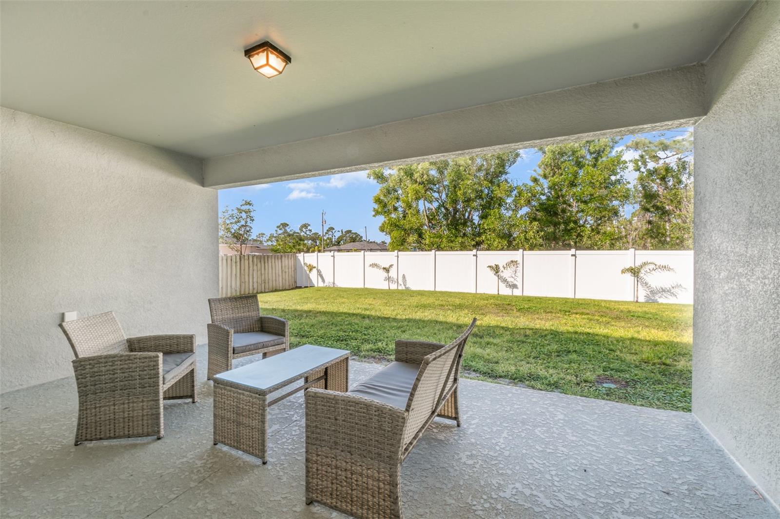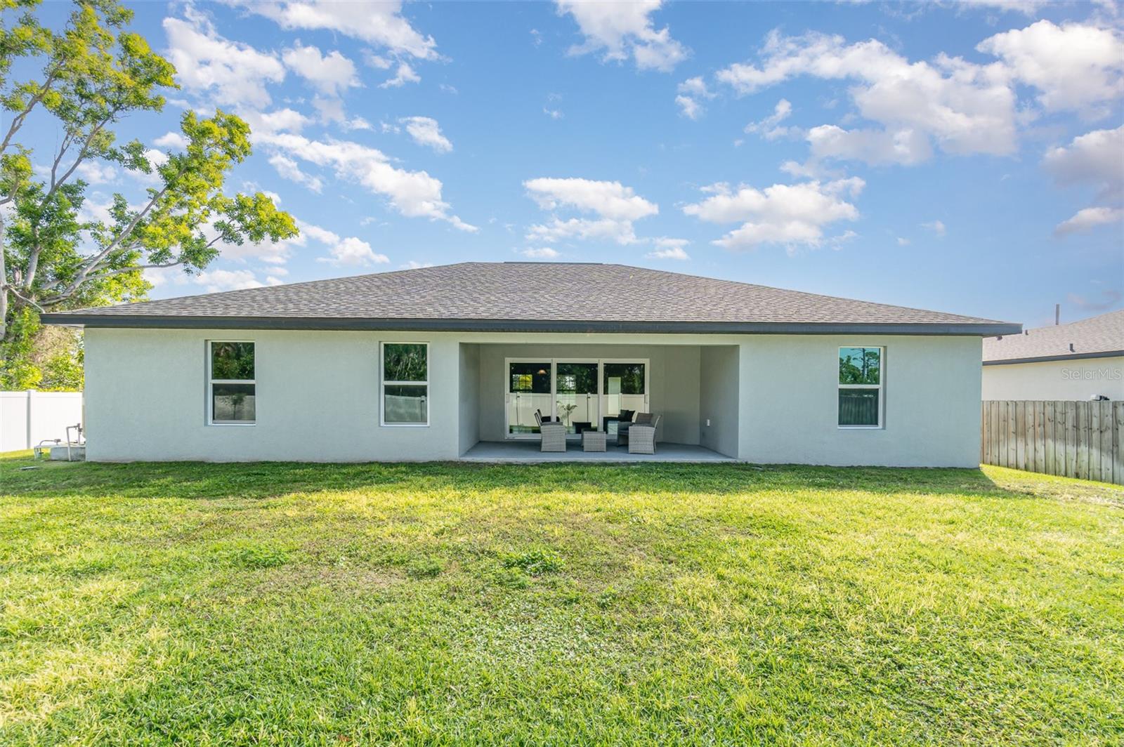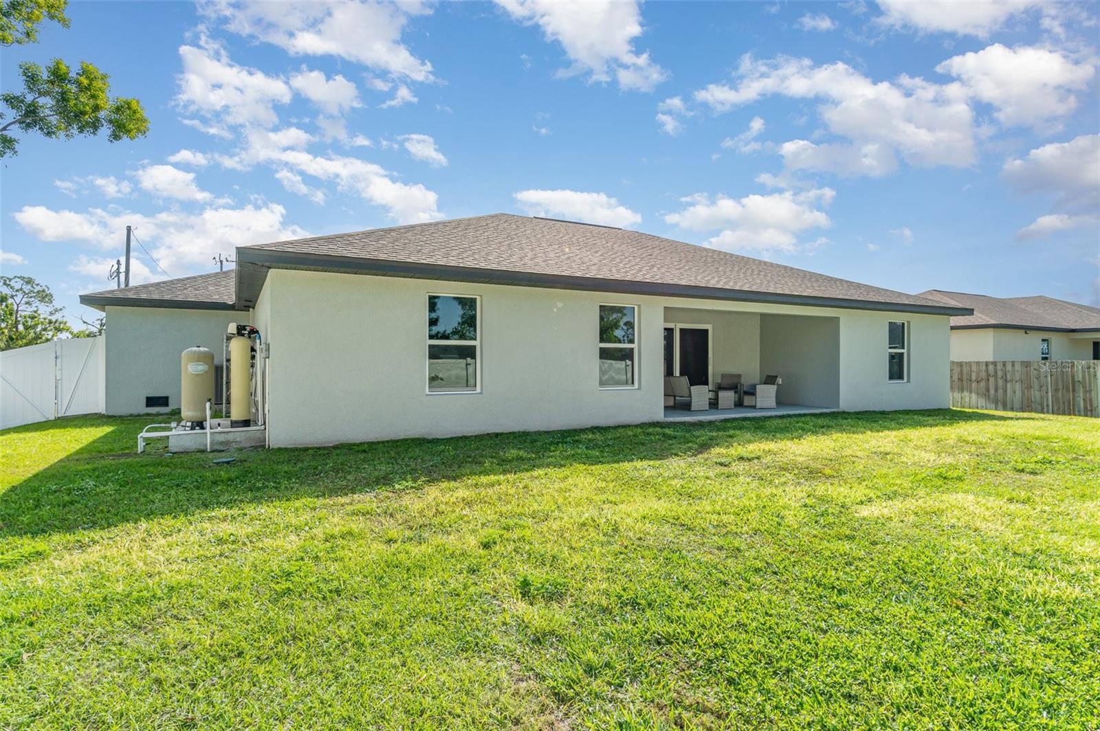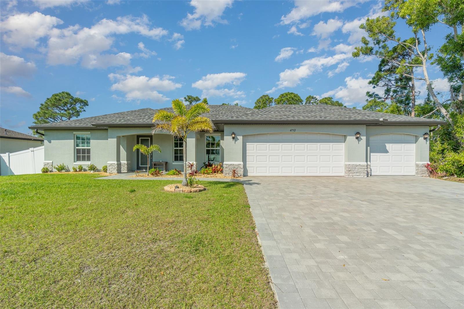 Welcome to your dream home, the stunning "St. Augustine" floor plan! This beautiful better than new construction gem features 4 spacious bedrooms and a generous 3-car garage, all wrapped in superb curb appeal that invites admiration from every angle. As you step inside, you'll be greeted by an open floor plan elevated by soaring cathedral ceilings that create a bright and airy feel throughout. The centerpiece of this elegant space is the center island kitchen, perfect for culinary enthusiasts and family gatherings alike. Step into the expansive living room, which seamlessly flows onto a large covered lanai, making it the ideal spot to soak up the vibrant Southwest Florida lifestyle. Enjoy alfresco dining or simply unwind as you take in the serene outdoor atmosphere in your fully fenced yard with plenty of room to add a pool. This home boasts impressive features designed for comfort and efficiency, including A Lenox 15 Seer high-efficiency AC system, 36” upper cabinets with soft-close doors, Luxurious granite counters in both the kitchen and bathrooms, stunning stainless steel kitchen appliance package, and Colonial style raised panel doors. You'll also appreciate the 18" tile flooring in the main living areas that combines style with practicality, stone accents on the front elevation for that extra touch of charm, and an irrigation system to keep your landscaping lush and green. The garage is upgraded with epoxy-coated floors and additional electrical outlets, providing versatility for all your storage and project needs. And for peace of mind during power outages, this home comes equipped with a generator hook-up—and best of all, the generator will convey with the sale of the home! This St. Augustine floor plan is more than just a house; it's a lifestyle waiting to be embraced. Come experience the luxurious living and exceptional features that await you in this remarkable home!