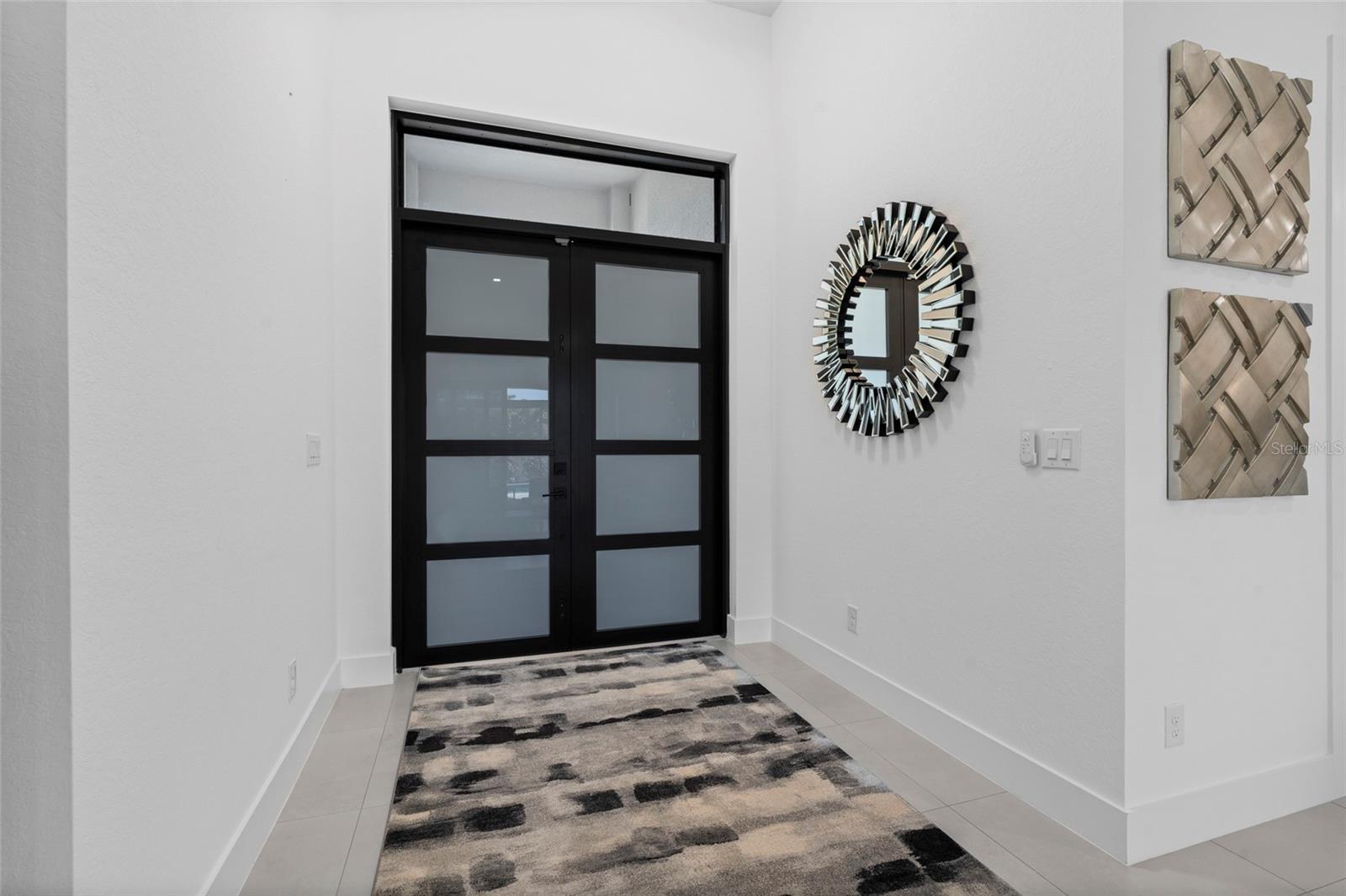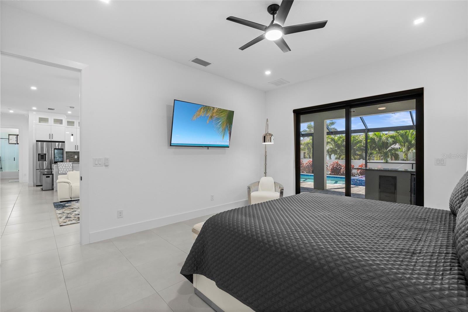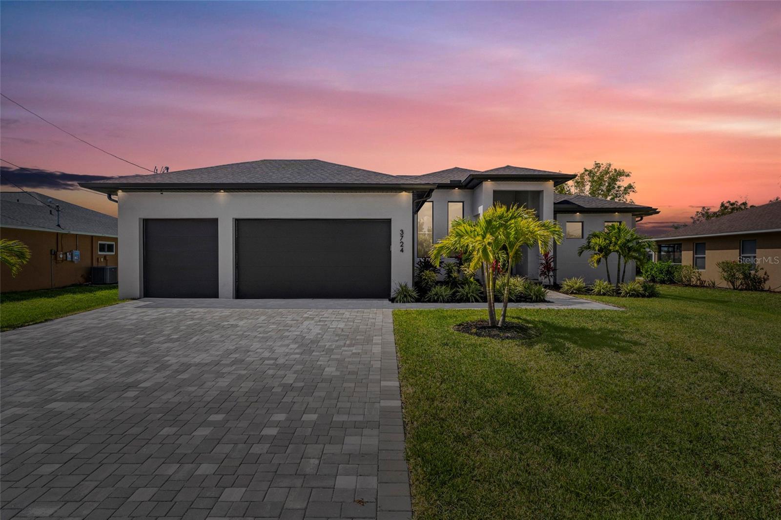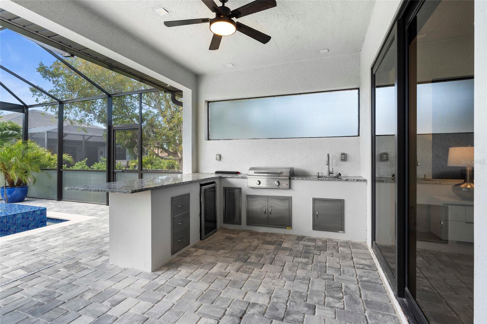 Enjoy luxury Florida living at its finest in this spectacular home featuring a heated, screened saltwater pool and spa, impact windows and doors, and high-end finishes throughout. Built in 2023, this professionally landscaped residence offers 4 bedrooms plus a den, 3 full bathrooms, and a 3-car garage, all thoughtfully designed for comfort, style, and functionality. From the moment you arrive, you’re welcomed by custom double front doors and elegant curb appeal. Inside, the home boasts 10-12' volume ceilings throughout, 18-inch tile flooring throughout, and a light, open layout curated with professionally designed decorative touches that elevate every space. The heart of the home is the custom kitchen, designed to impress with ceiling-height cabinetry, quartz countertops with a waterfall island, tiled backsplash, pantry closet, and modern stainless appliances. The spacious living and dining areas open seamlessly to the outdoors, where a covered paver patio, custom outdoor kitchen with grill, sink, beverage refrigerator, and bar seating, and a sundeck create the perfect backdrop for entertaining or relaxing in the sun. Retreat to the luxurious primary suite, featuring custom blinds, custom closet organizers in both walk-ins, and a spa-like en-suite bath with dual vanities, a free-standing soaking tub, and a walk-in tiled shower with dual rainfall and handheld showerheads. All bedrooms include closet organizers, and the main bathroom offers a full tub with a rainfall showerhead. The third bathroom serves as a cabana bath, complete with a tiled shower and rainfall showerhead for convenient access from the pool. This home is truly smart, with remote-controlled automatic blinds throughout and a security system that can be managed directly from your smartphone. The den provides a versatile space for work or play and includes a foosball table that stays with the home. Additional highlights include a zoned irrigation system, energy-efficient features, and all the thoughtful extras that make this home as practical as it is beautiful. Whether you're searching for your full-time residence, seasonal retreat, or an exceptional investment opportunity, this property delivers luxury and ease at every turn.