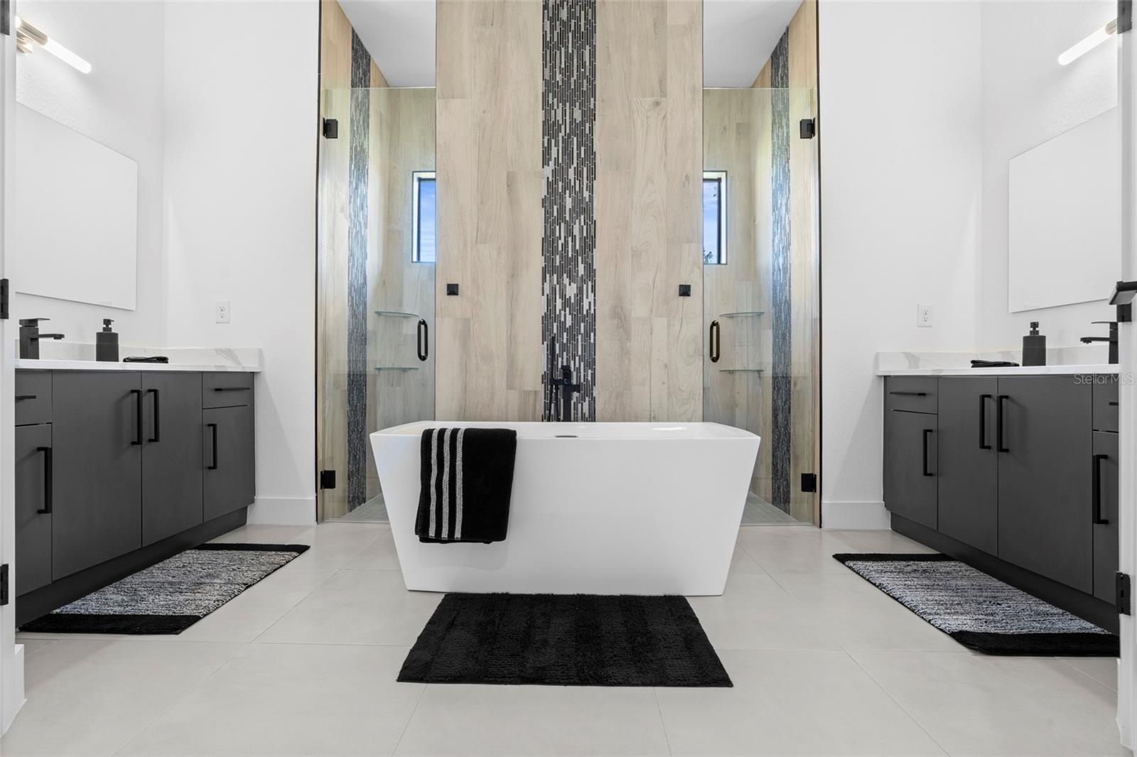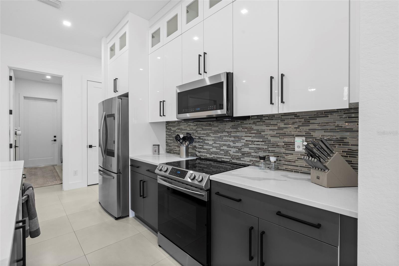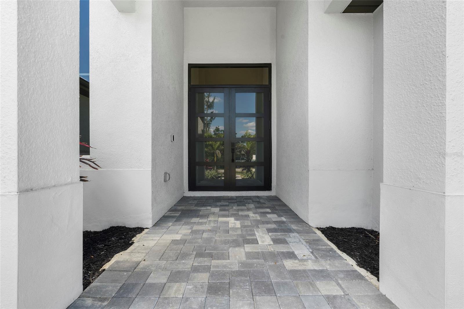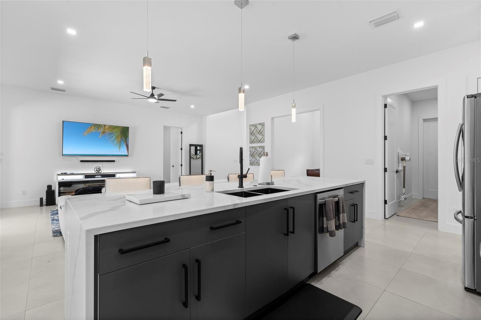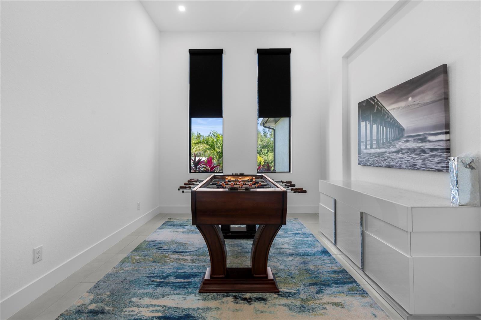 Enjoy luxury Florida living at its finest in this spectacular home featuring a heated, screened saltwater pool and spa, impact windows and doors, and high-end finishes throughout. Built in 2023, this professionally landscaped residence offers 4 bedrooms plus a den, 3 full bathrooms, and a 3-car garage, all thoughtfully designed for comfort, style, and functionality. From the moment you arrive, you’re welcomed by custom double front doors and elegant curb appeal. Inside, the home boasts 10-12' volume ceilings throughout, 18-inch tile flooring throughout, and a light, open layout curated with professionally designed decorative touches that elevate every space. The heart of the home is the custom kitchen, designed to impress with ceiling-height cabinetry, quartz countertops with a waterfall island, tiled backsplash, pantry closet, and modern stainless appliances. The spacious living and dining areas open seamlessly to the outdoors, where a covered paver patio, custom outdoor kitchen with grill, sink, beverage refrigerator, and bar seating, and a sundeck create the perfect backdrop for entertaining or relaxing in the sun. Retreat to the luxurious primary suite, featuring custom blinds, custom closet organizers in both walk-ins, and a spa-like en-suite bath with dual vanities, a free-standing soaking tub, and a walk-in tiled shower with dual rainfall and handheld showerheads. All bedrooms include closet organizers, and the main bathroom offers a full tub with a rainfall showerhead. The third bathroom serves as a cabana bath, complete with a tiled shower and rainfall showerhead for convenient access from the pool. This home is truly smart, with remote-controlled automatic blinds throughout and a security system that can be managed directly from your smartphone. The den provides a versatile space for work or play and includes a foosball table that stays with the home. Additional highlights include a zoned irrigation system, energy-efficient features, and all the thoughtful extras that make this home as practical as it is beautiful. Whether you're searching for your full-time residence, seasonal retreat, or an exceptional investment opportunity, this property delivers luxury and ease at every turn.