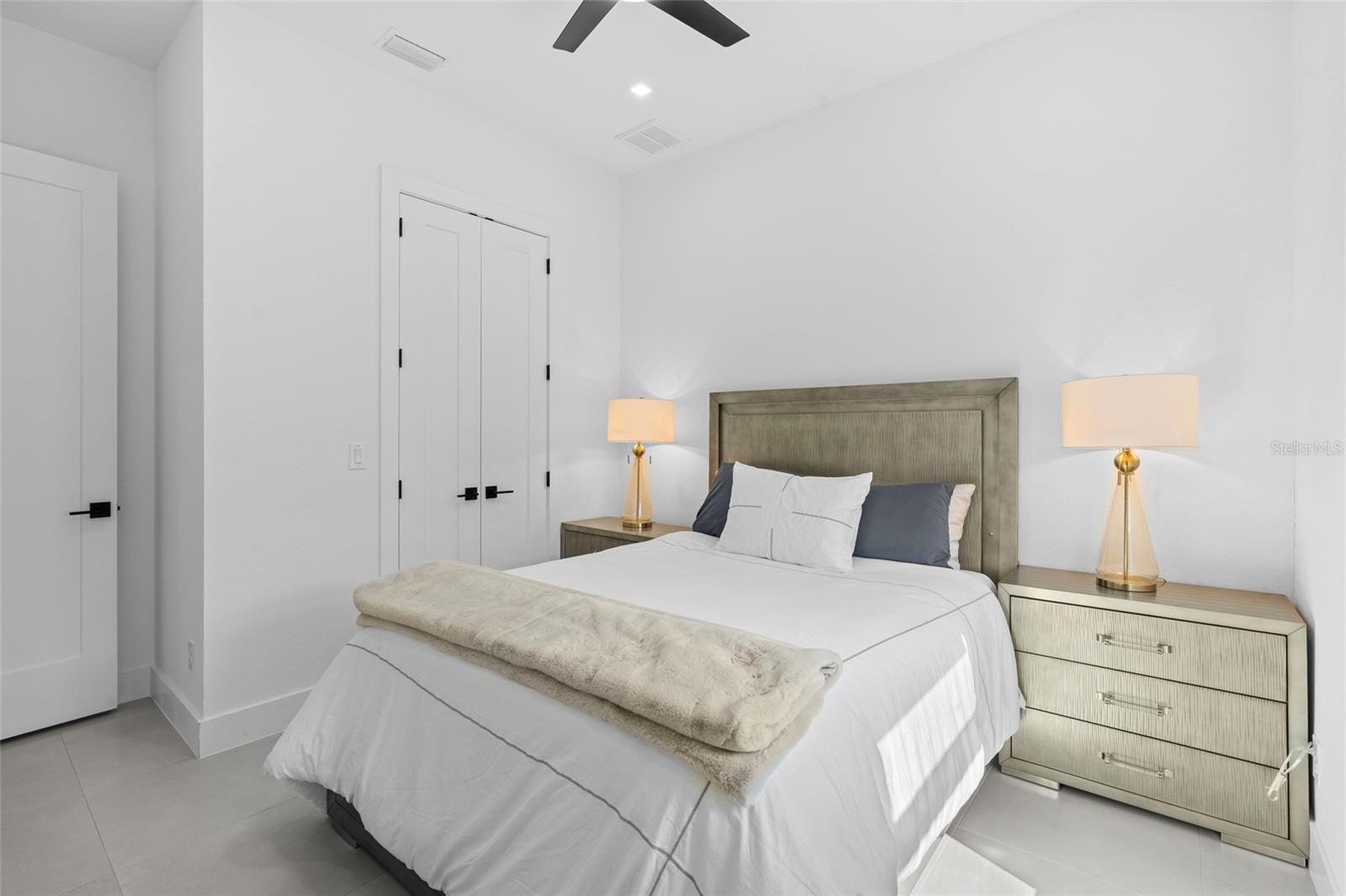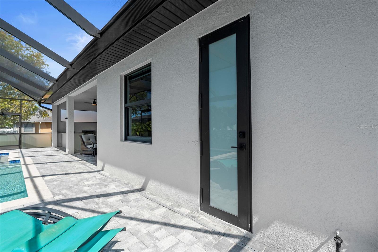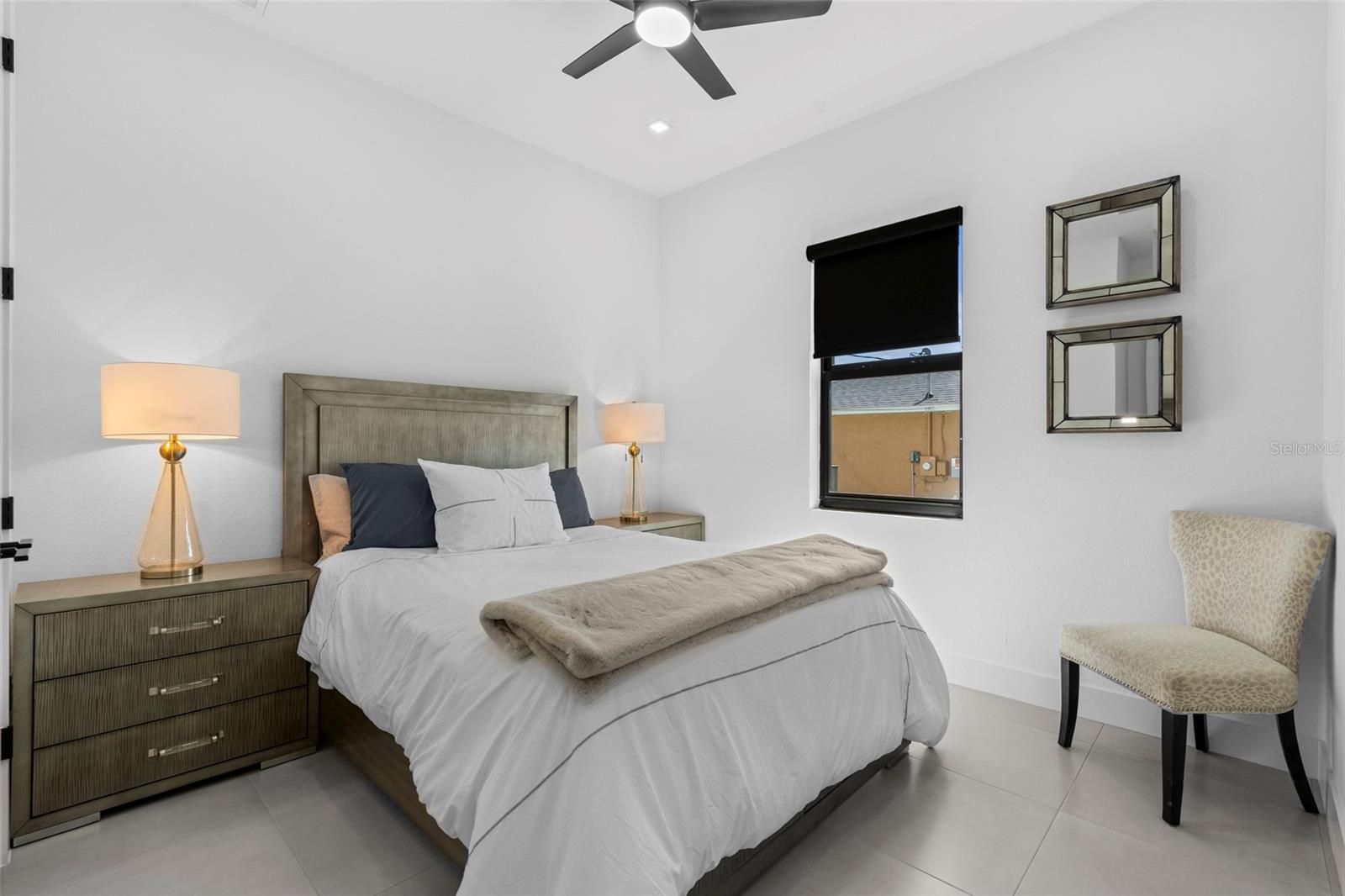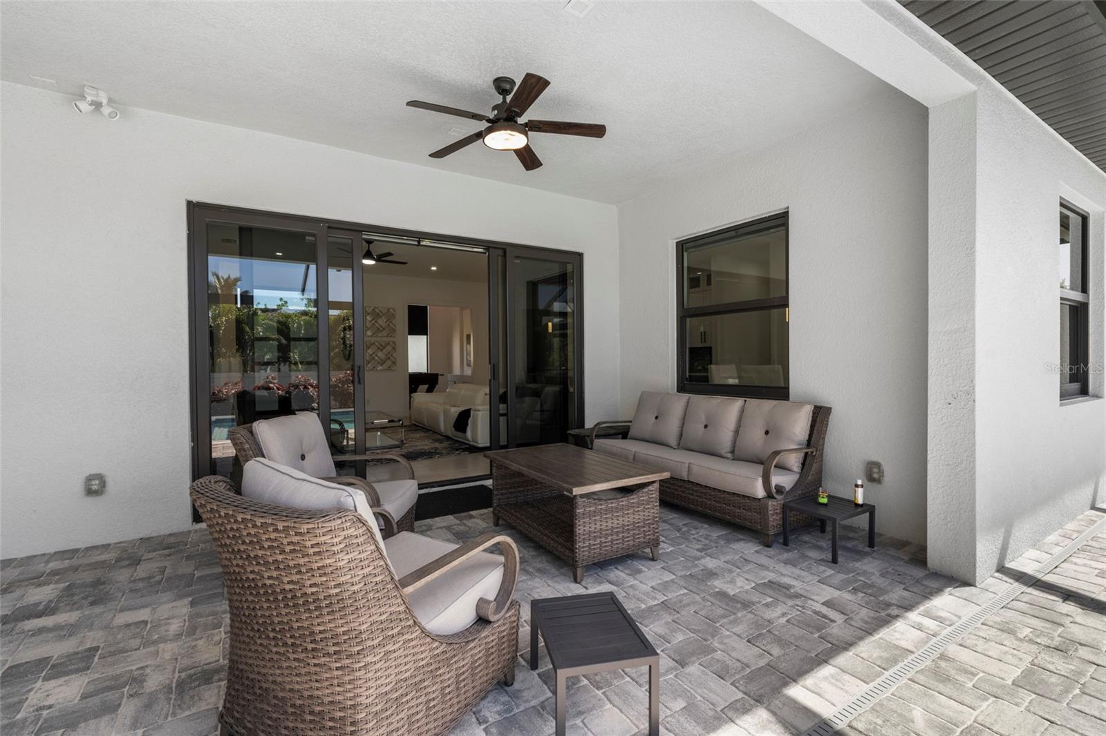 Enjoy luxury Florida living at its finest in this spectacular home featuring a heated, screened saltwater pool and spa, impact windows and doors, and high-end finishes throughout. Built in 2023, this professionally landscaped residence offers 4 bedrooms plus a den, 3 full bathrooms, and a 3-car garage, all thoughtfully designed for comfort, style, and functionality. From the moment you arrive, you’re welcomed by custom double front doors and elegant curb appeal. Inside, the home boasts 10-12' volume ceilings throughout, 18-inch tile flooring throughout, and a light, open layout curated with professionally designed decorative touches that elevate every space. The heart of the home is the custom kitchen, designed to impress with ceiling-height cabinetry, quartz countertops with a waterfall island, tiled backsplash, pantry closet, and modern stainless appliances. The spacious living and dining areas open seamlessly to the outdoors, where a covered paver patio, custom outdoor kitchen with grill, sink, beverage refrigerator, and bar seating, and a sundeck create the perfect backdrop for entertaining or relaxing in the sun. Retreat to the luxurious primary suite, featuring custom blinds, custom closet organizers in both walk-ins, and a spa-like en-suite bath with dual vanities, a free-standing soaking tub, and a walk-in tiled shower with dual rainfall and handheld showerheads. All bedrooms include closet organizers, and the main bathroom offers a full tub with a rainfall showerhead. The third bathroom serves as a cabana bath, complete with a tiled shower and rainfall showerhead for convenient access from the pool. This home is truly smart, with remote-controlled automatic blinds throughout and a security system that can be managed directly from your smartphone. The den provides a versatile space for work or play and includes a foosball table that stays with the home. Additional highlights include a zoned irrigation system, energy-efficient features, and all the thoughtful extras that make this home as practical as it is beautiful. Whether you're searching for your full-time residence, seasonal retreat, or an exceptional investment opportunity, this property delivers luxury and ease at every turn.