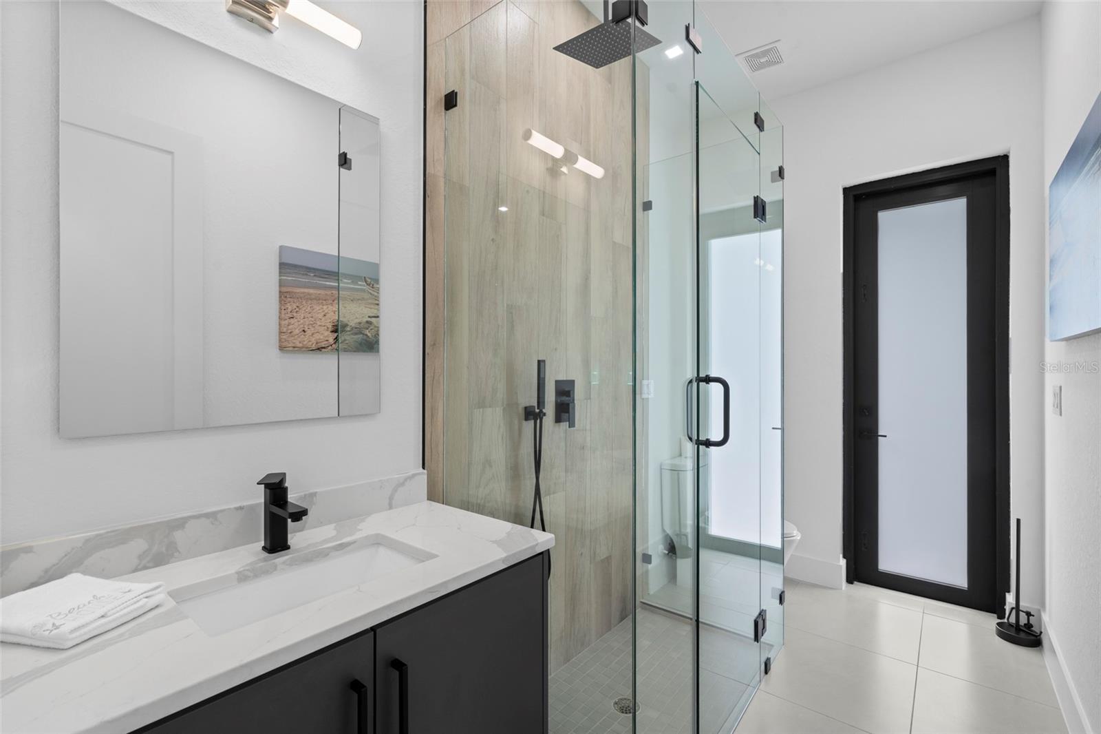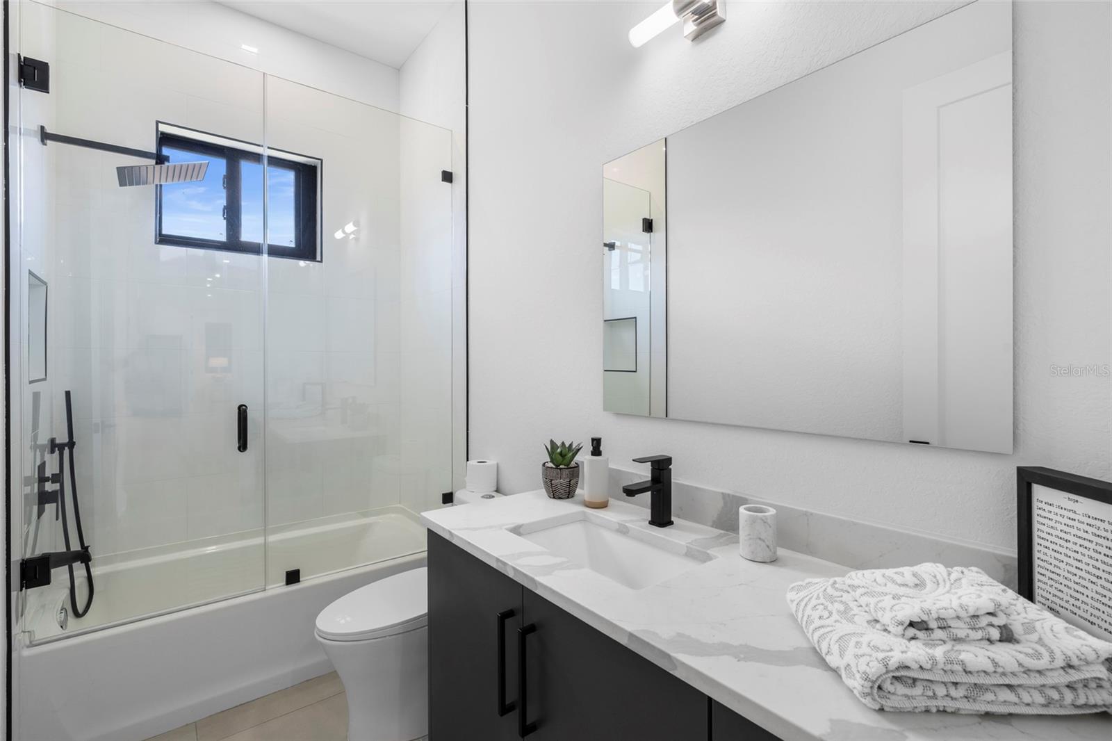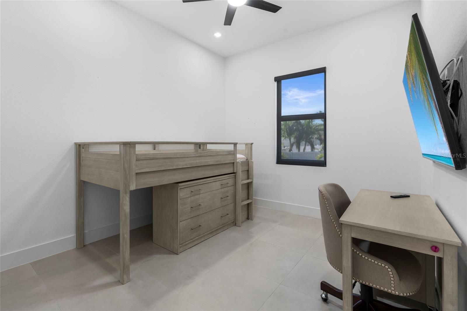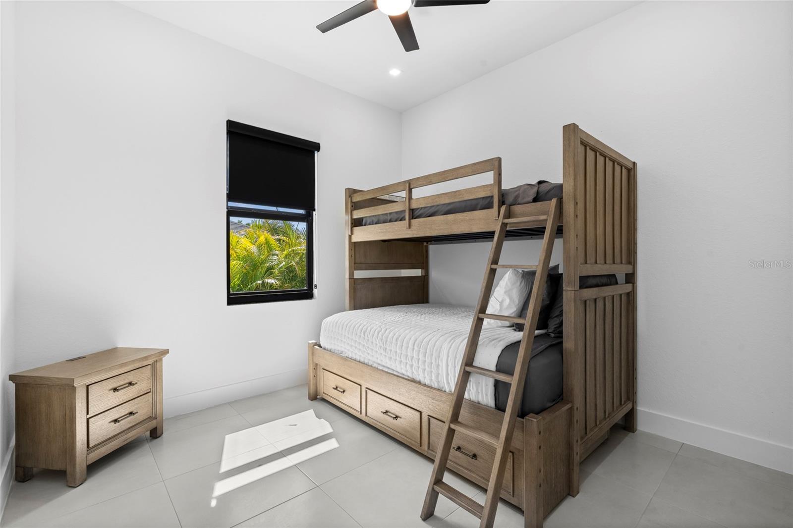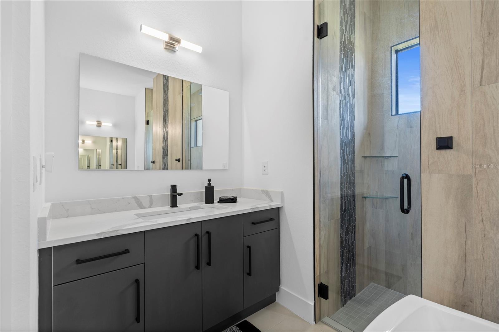 Enjoy luxury Florida living at its finest in this spectacular home featuring a heated, screened saltwater pool and spa, impact windows and doors, and high-end finishes throughout. Built in 2023, this professionally landscaped residence offers 4 bedrooms plus a den, 3 full bathrooms, and a 3-car garage, all thoughtfully designed for comfort, style, and functionality. From the moment you arrive, you’re welcomed by custom double front doors and elegant curb appeal. Inside, the home boasts 10-12' volume ceilings throughout, 18-inch tile flooring throughout, and a light, open layout curated with professionally designed decorative touches that elevate every space. The heart of the home is the custom kitchen, designed to impress with ceiling-height cabinetry, quartz countertops with a waterfall island, tiled backsplash, pantry closet, and modern stainless appliances. The spacious living and dining areas open seamlessly to the outdoors, where a covered paver patio, custom outdoor kitchen with grill, sink, beverage refrigerator, and bar seating, and a sundeck create the perfect backdrop for entertaining or relaxing in the sun. Retreat to the luxurious primary suite, featuring custom blinds, custom closet organizers in both walk-ins, and a spa-like en-suite bath with dual vanities, a free-standing soaking tub, and a walk-in tiled shower with dual rainfall and handheld showerheads. All bedrooms include closet organizers, and the main bathroom offers a full tub with a rainfall showerhead. The third bathroom serves as a cabana bath, complete with a tiled shower and rainfall showerhead for convenient access from the pool. This home is truly smart, with remote-controlled automatic blinds throughout and a security system that can be managed directly from your smartphone. The den provides a versatile space for work or play and includes a foosball table that stays with the home. Additional highlights include a zoned irrigation system, energy-efficient features, and all the thoughtful extras that make this home as practical as it is beautiful. Whether you're searching for your full-time residence, seasonal retreat, or an exceptional investment opportunity, this property delivers luxury and ease at every turn.