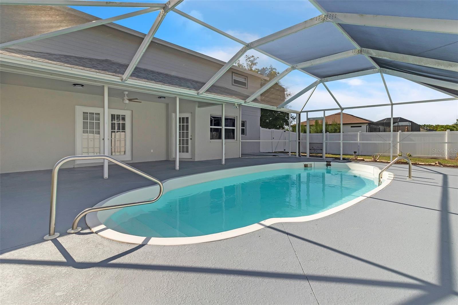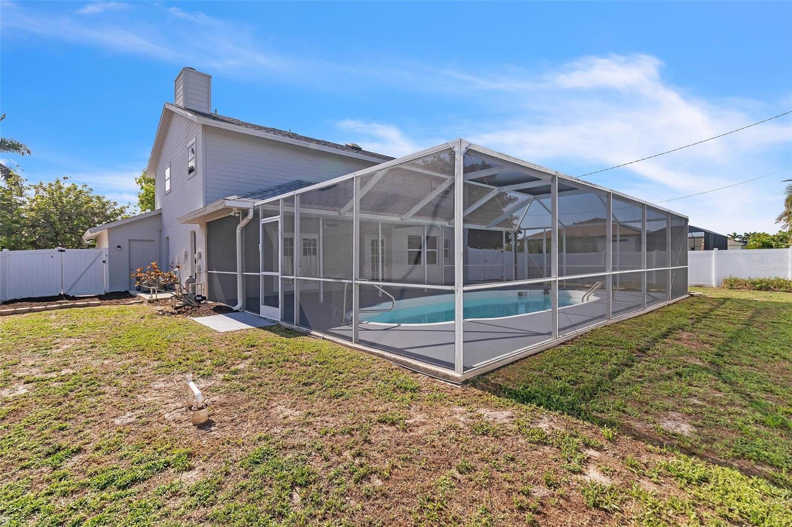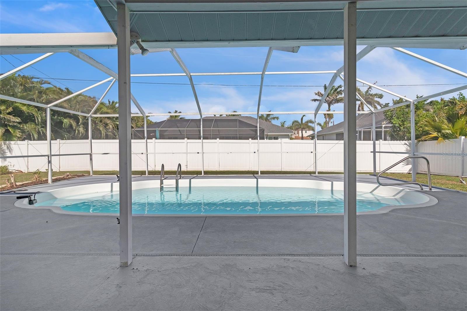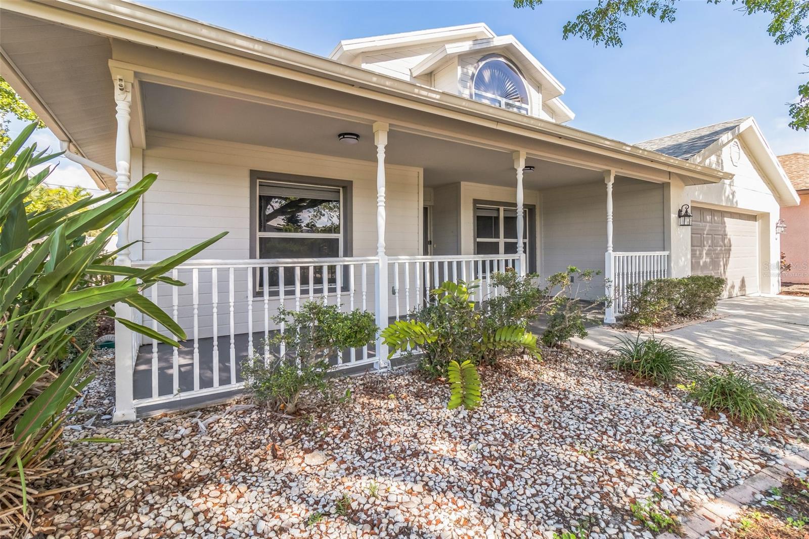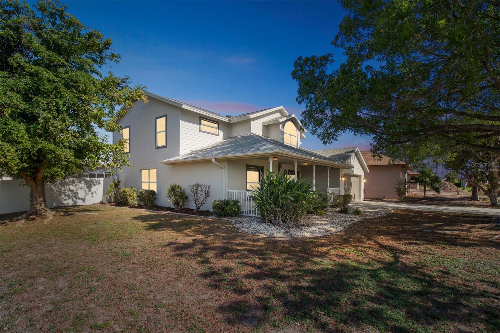 You are going to feel at home the moment you pull up to this inviting 2 story. The covered front porch is meant for long visits and great conversation or quiet time alone. You'll be daydreaming of the perfect chairs or swing to complete the space before you even finish your visit. As you take a walk around the home you'll notice a fully fenced backyard complete with exceptional patio space. The roofline offers plenty of shade in the lanai area and the sparkling swimming pool is perfect for a quick cool down or leisurely day with your family or friends. Now it's time to head inside to a home that truly stands out. A crisp tiled entry, a bright and welcoming appeal, and a main level with a luxurious feel. Enjoy a family room that is both grand and cozy thanks to the fireplace, soaring 2 story ceilings and access to the lanai. The kitchen features a walk-in pantry, stainless appliances and stylish tile backsplash making it an easy place to gather. The main level laundry room has a shower making washing up extra convenient anytime you are active outside or coming in from a swim. This home has 4 bedrooms, walk-in closets and 3 baths. The owners suite has cathedral vaults, a charming window seat just made for relaxing with a good book and well appointed private bath. You can't beat this location with Gulf access, dining and entertainment just minutes away. Head to Cape Harbour Marina for outstanding lunch and dinner options.