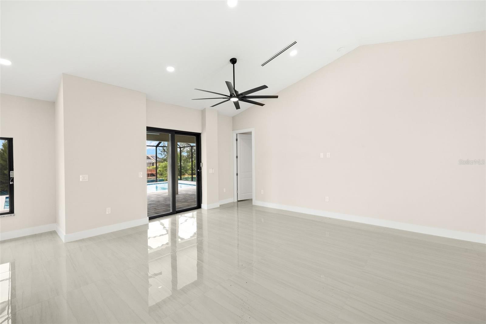 Brand new construction home with a pool! Located on 120 ft wide freshwater canal with access to lakes. Home is on city water, sewer, and irrigation. Step inside and be greeted by high ceilings, open-concept living, and designer finishes throughout. The heart of the home features a gourmet kitchen with granite countertops, large kitchen island, soft-close cabinetry, and stainless steel appliances—perfect for entertaining or relaxing evenings in. The living area includes sliding glass doors opening to the large lanai and panoramic views. The spacious primary suite offers large sliders opening directly to your private screened lanai and sparkling pool, as well as two walk in closets with built in shelving. The ensuite spa-like bathroom has dual sinks and a large walk in tiled shower with a glass door. Whether you're cooling off on a summer day or enjoying the golden hour overlooking the canal, this outdoor space is your personal paradise. Additional highlights include: paved driveway and lanai, hurricane impact windows and doors, 3 car garage, large lanai equipped with pool cage, inside laundry/utility room with cabinetry, beautiful tile throughout the home, plenty of closets all with built in shelving. For added safety, all doors leading to the pool area are equipped with alarm sensors. No HOA. Not in a flood zone. Centrally located just minutes from the Pine Island corridor which offers various shopping, dining, and more. There are many parks in the immediate plus nearby Gator Mikes, Sunsplash, and NW library. Cape Coral is well served by major roads US-41 and I-75 making traveling easy and convenient. Don’t miss this rare opportunity to own brand new construction with direct freshwater access in sunny Florida. Move-in ready and waiting for you!